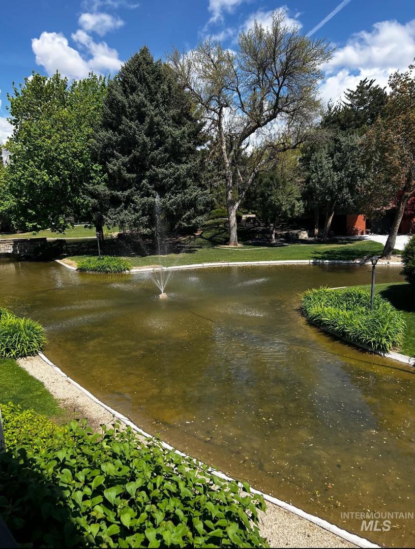 Enjoy peaceful living in this spacious 2-bedroom, 2-bath condo located in the desirable Eldorado community of Boise. Tucked away on the second floor, this home offers relaxing water views and a private lanai—ideal for sipping coffee or unwinding after a long day. Inside, the open layout features a cozy gas fireplace, an eat-in kitchen with breakfast bar, and a separate dining area perfect for gatherings. Both bedrooms are well-sized, each with their own bathroom and private vanity space. Extras include covered parking, an exterior storage shed, and access to the community pool. This gated neighborhood is beautifully maintained with lush landscaping, walking paths, and peaceful water features. Monthly HOA covers roof, exterior upkeep, irrigation, and more—making maintenance a breeze. Located just minutes from shopping, restaurants, and major roads, this home offers comfort, convenience, and serenity in one package.