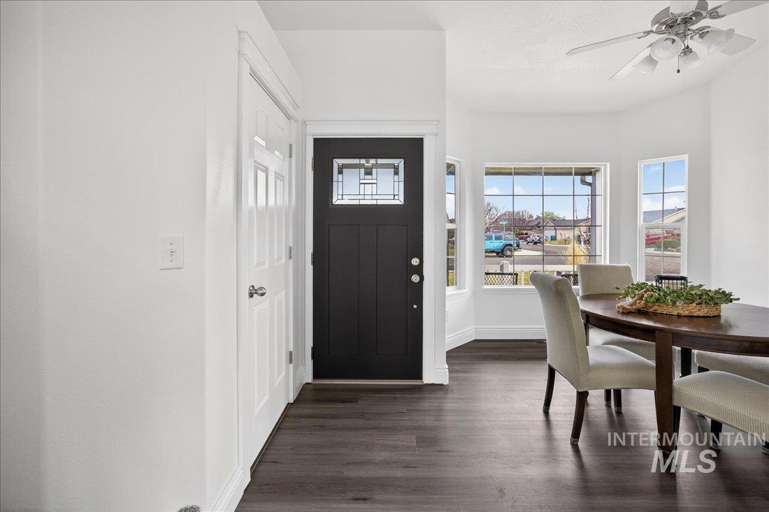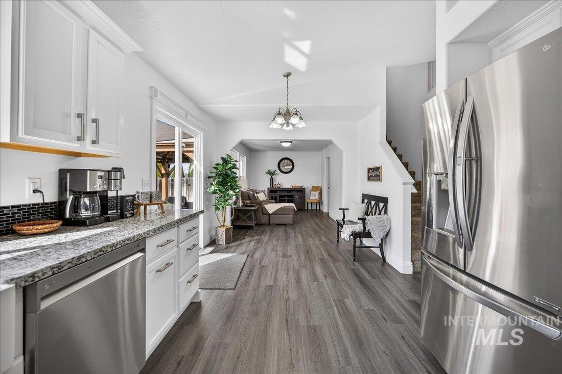 This thoughtfully updated home proves big style doesn’t require a big footprint. Step inside to an open-concept main level filled with natural light, where oversized windows connect the family room, dining area, and kitchen in one seamless flow. The renovated kitchen features white shaker cabinetry, granite countertops with an updated tile backsplash, stainless steel appliances, plus a pantry giving this kitchen a fresh, modern feel. The outdoor amenities set this home apart. There is a beautiful pergola-covered patio, complete with a TV hookup—perfect for year-round entertaining and extending your living space outdoors. Additional updates include newer exterior paint, fresh interior paint, new LVP flooring, and newer HVAC and water heater. This spacious corner lot also offers a 10x12 shed on a concrete slab and RV parking on a 34x14 concrete slab with 30 AMP service. Oh and don’t miss the fun custom “Harry Potter” dog nook. Garage is painted, has epoxy floors and a newly installed garage door opener with belts not chains for a quieter operation plus Wifi. To top it all off, it has a brand new roof.