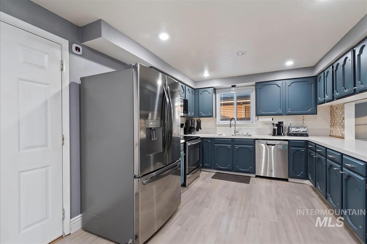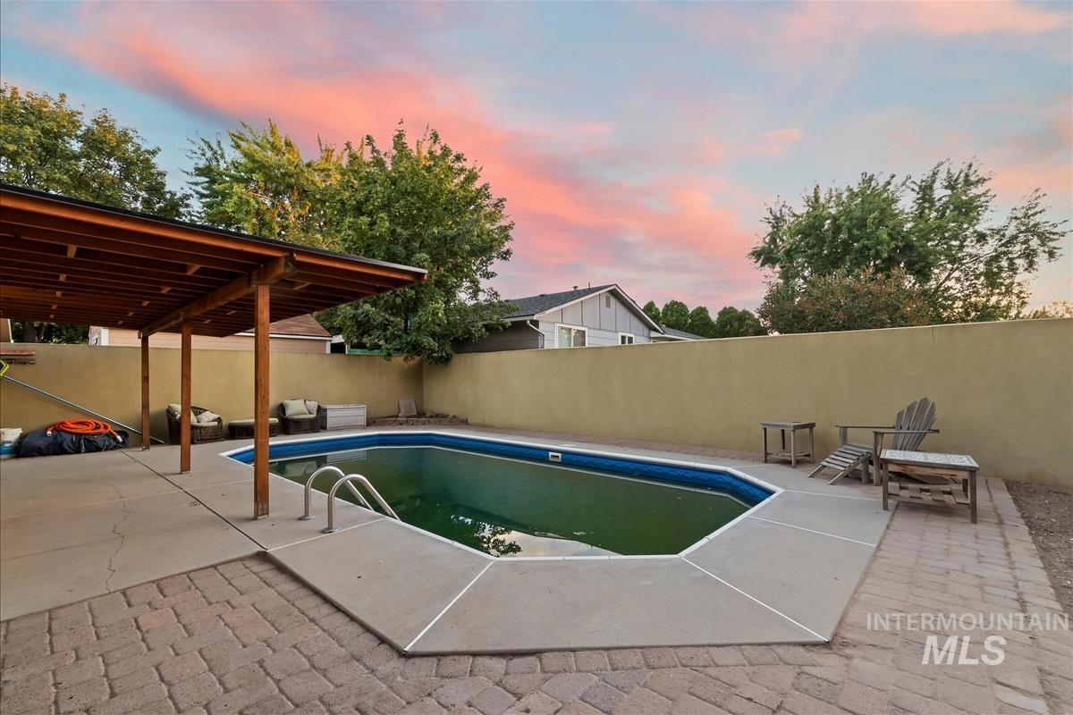 Step into stylish, low-maintenance living! Fresh vinyl flooring flows through the kitchen, dining area, hallway & living area, with a freshly painted interior/exterior and updated kitchen & bath cabinets. The kitchen offers all-new appliances, gas hookups for the washer/dryer, and an updated primary bath. Outside, enjoy a covered patio and private pool. Energy-efficient windows provide comfort and savings. All of this in the heart of Meridian with quick access to shopping, dining, and highways — a perfect blend of style, function, and convenience.