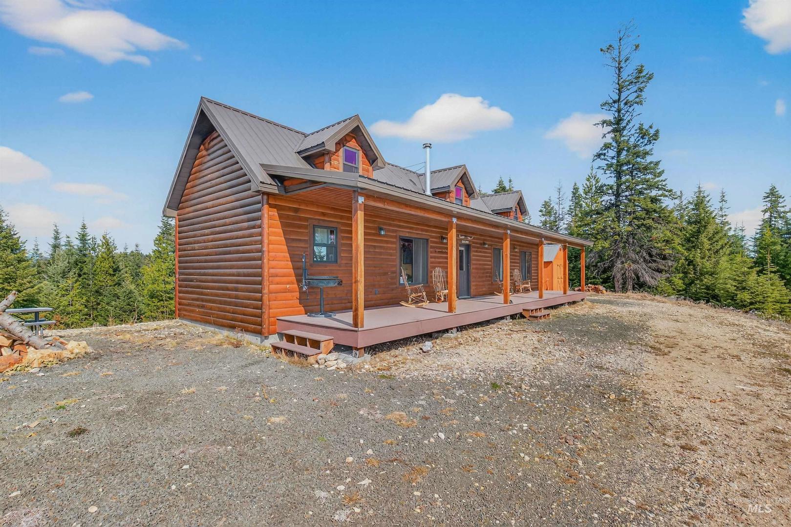 Experience the ultimate mountain retreat on 38 private acres of pristine Idaho wilderness. This extraordinary property features two stunning log cabins, thoughtfully designed and built in 2019 for comfort and efficiency with modern conveniences. Unobstructed panoramic views stretch for miles, capturing sunrises, alpenglow evenings and endless starry skies. Together, the two residences can accommodate up to 20 guests perfect for hosting family, friends or exclusive retreats. Enjoy year-round recreation right from your doorstep: snowmobiling, snowshoeing, hiking, horseback riding, ATV adventures, hunting and fishing. After a day of exploring, unwind by the fire or take in the scenery from expansive decks surrounded by pure tranquility. Complete with private well, septic and underground power, this rare offering is more than a getaway it`s a sanctuary where refined comfort meets the unspoiled beauty of Idaho`s great outdoors.
