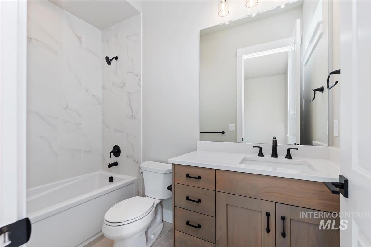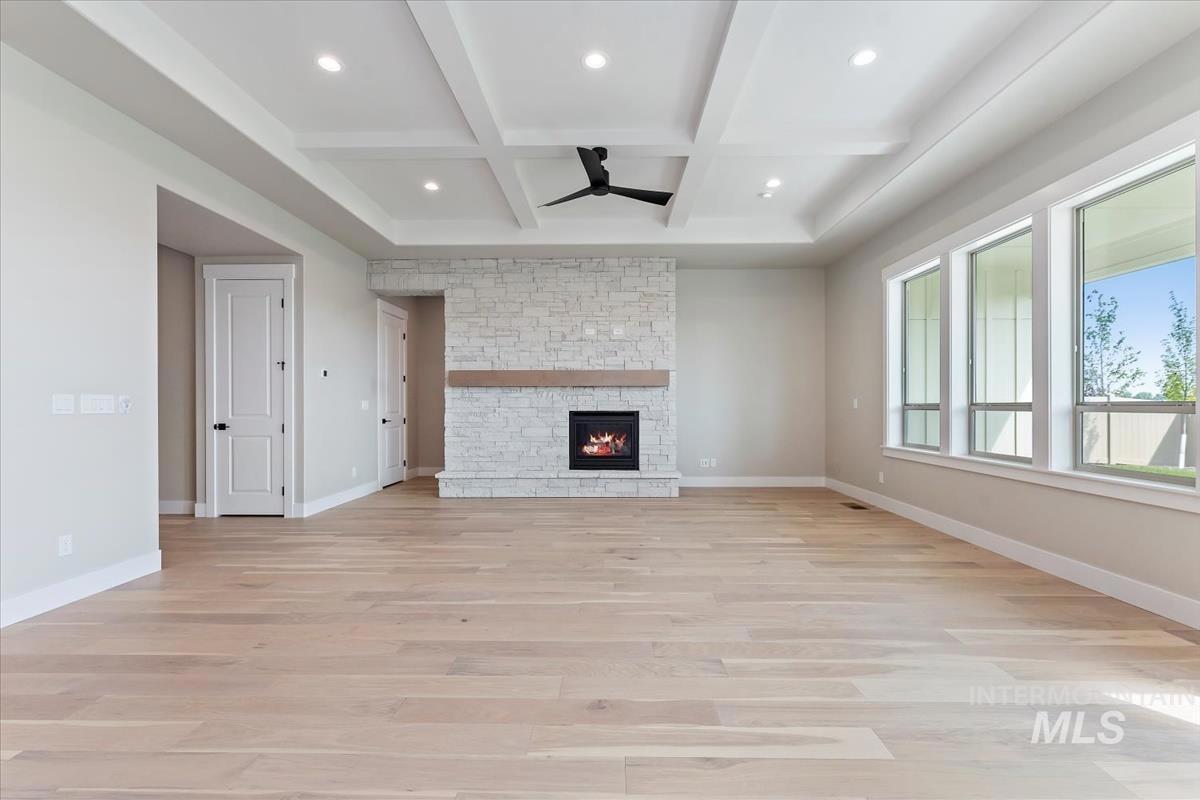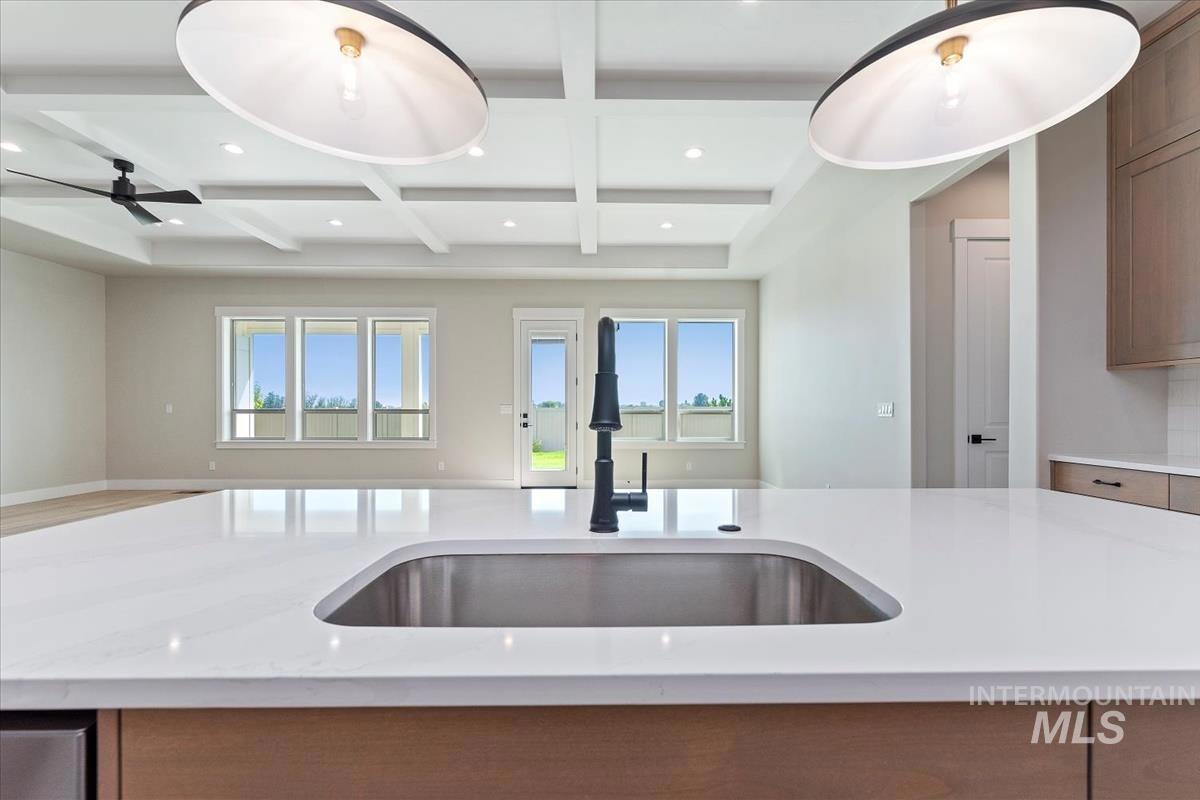 RARE OPPORTUNITY that has come back on market! Blinds, fridge, AND washer and dryer included?! In NEW CONSTRUCTION?! Welcome to the stunning custom Arcadia RV by Tresidio Homes, offering an east facing view with rare privacy & no rear neighbors! This gorgeous single-level home is filled with high-end finishes and thoughtful design. Soaring 10’ ceilings with 8’ doors and an expanded coffered and beamed ceiling in the great room frame a beautiful stone fireplace, creating a grand yet inviting atmosphere. The spacious layout features four bedrooms and three full baths, including a serene master suite with freestanding tub and full tile shower, plus a private guest suite with its own bath. The kitchen showcases ceiling-height cabinetry, quartz countertops, Bosch appliances, and a Bosch refrigerator. A true RV garage with 12’ wide by 14’ tall door accommodates toys up to 39’ long! Lugarno Terra has a clubhouse, pool, and pickle ball courts on the way! Fantastic Kuna location with easy access to shopping, dining, groceries, and I-84. Photos of actual home.
