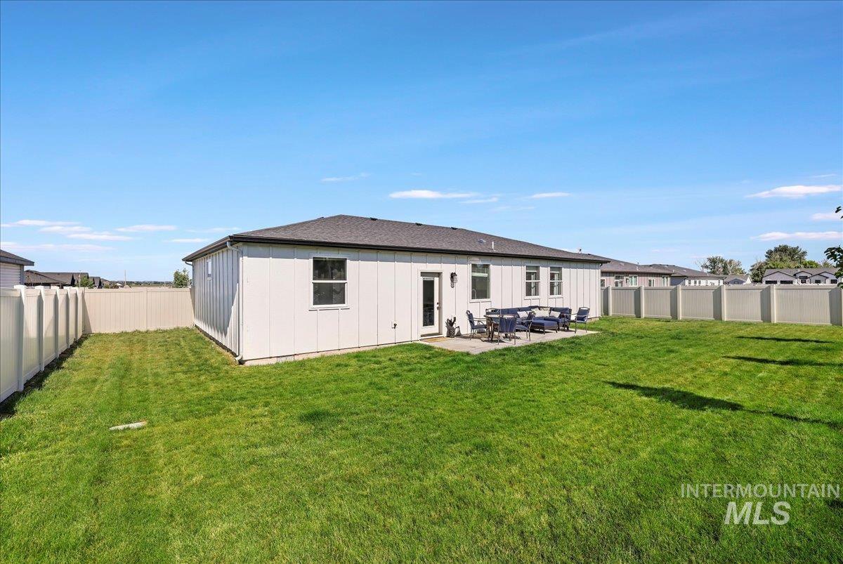 This like new 4-bedroom, 2-bath home was built in 2023 and offers modern living with a fresh, new feel. The open floor plan features LVP flooring throughout, providing durability and style. The kitchen is equipped with stainless, upgraded appliances, quartz counters, Enjoy the fully landscaped front and back lawns that include an automatic sprinkler system, making maintenance a breeze. The spacious, fully fenced, almost 1/4 acre lot, provides plenty of space in the backyard for kids, pets, toys, and more. This home includes everything you need to move right in! Don’t miss the chance to make this beautiful house your new home.