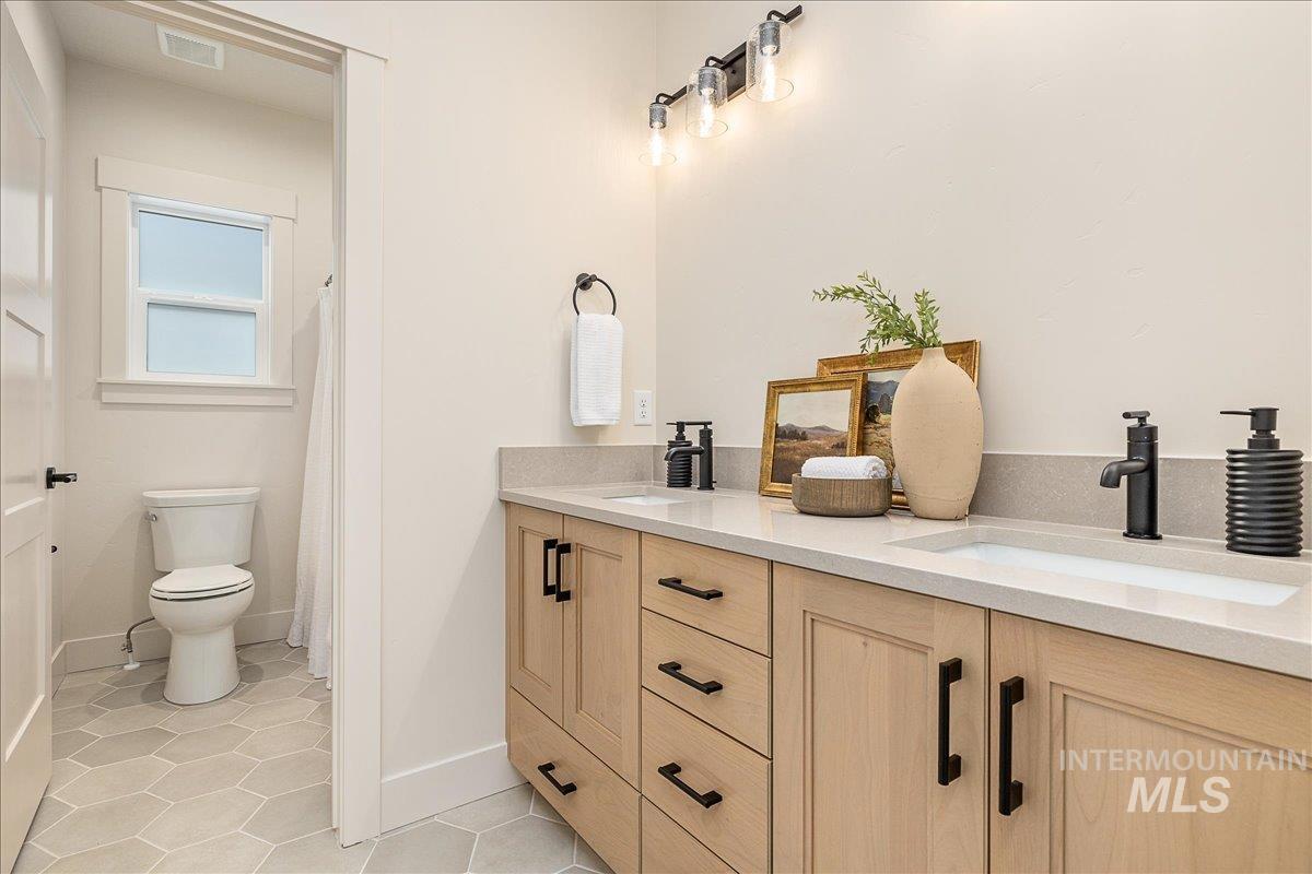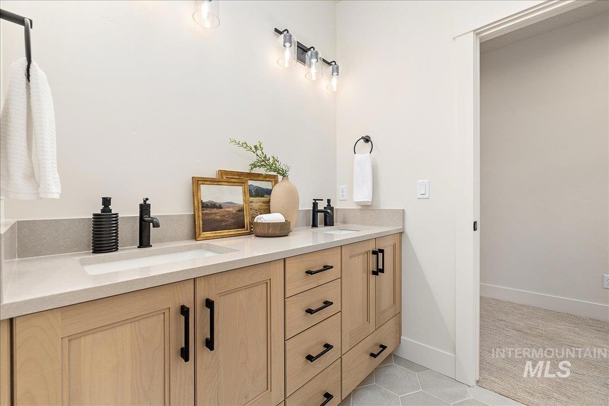 The Hanne by Stylish Homes: Warm, Contemporary & Comfortable. Four bedrooms, recreation room & den. The well-appointed kitchen is equipped with stainless steel appliances including a Bosch oven and speed oven, custom cabinets with quartz countertops and large pantry. The vaulted ceiling in the gathering room adds volume and fills the space with natural light. The open layout of the kitchen, gathering room & eating nook offers the perfect space for entertaining. The main floor master suite is enhanced with a coffered ceiling and the spacious master bathroom is complete with dual vanities, soaking tub & walk-in tile shower. The dual zone HVAC system keeps both floors comfortable, year-round.