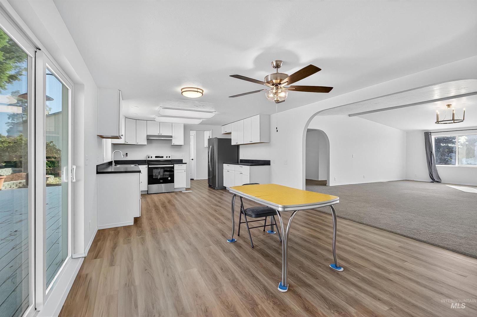 UPDATED SINGLE LEVEL HOME WITH A HUGE SHOP IN GENESEE READY FOR NEW OWNERS! This is the practical home you have been waiting for! Just shy of 2,300 sqft, this single level home will not disappoint. Kitchen with stainless steel appliances and updated cabinets with adjoining dining area and a doorway to the large laundry room/pantry room combo providing plenty of storage and work space. Massive living room with a family room to the side. Primary bedroom boast walk in closet and a large bathroom with a double vanity and separate tub and shower. Property features a 24`x40` 2 door shop fully insulated with plenty of room to park your toys. Plenty of new updates including new deck, hot water tank, gutters, carpet, flooring, bathroom and laundry sinks and cabinets, light fixtures and more! Don`t miss out on this one, schedule a showing today!