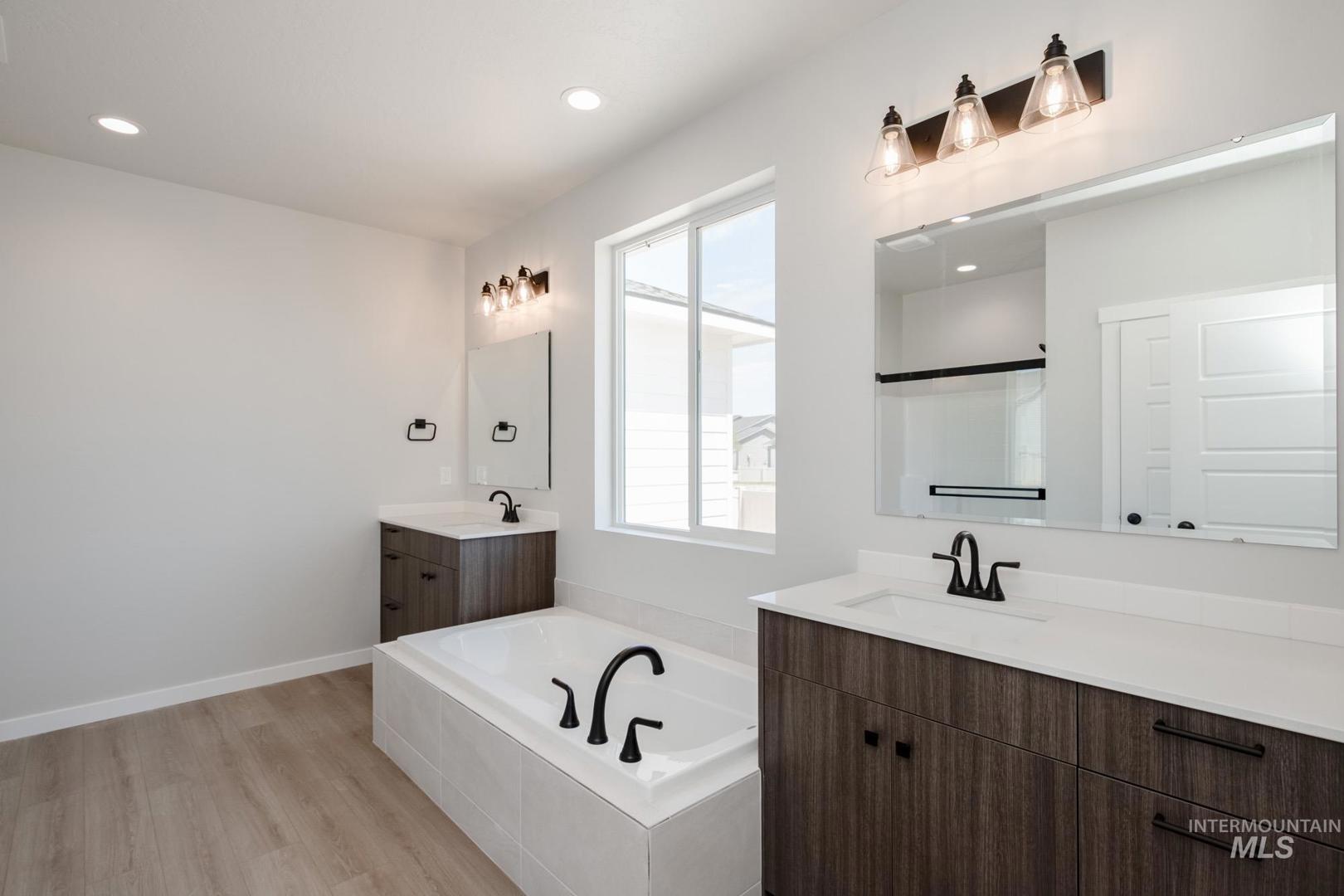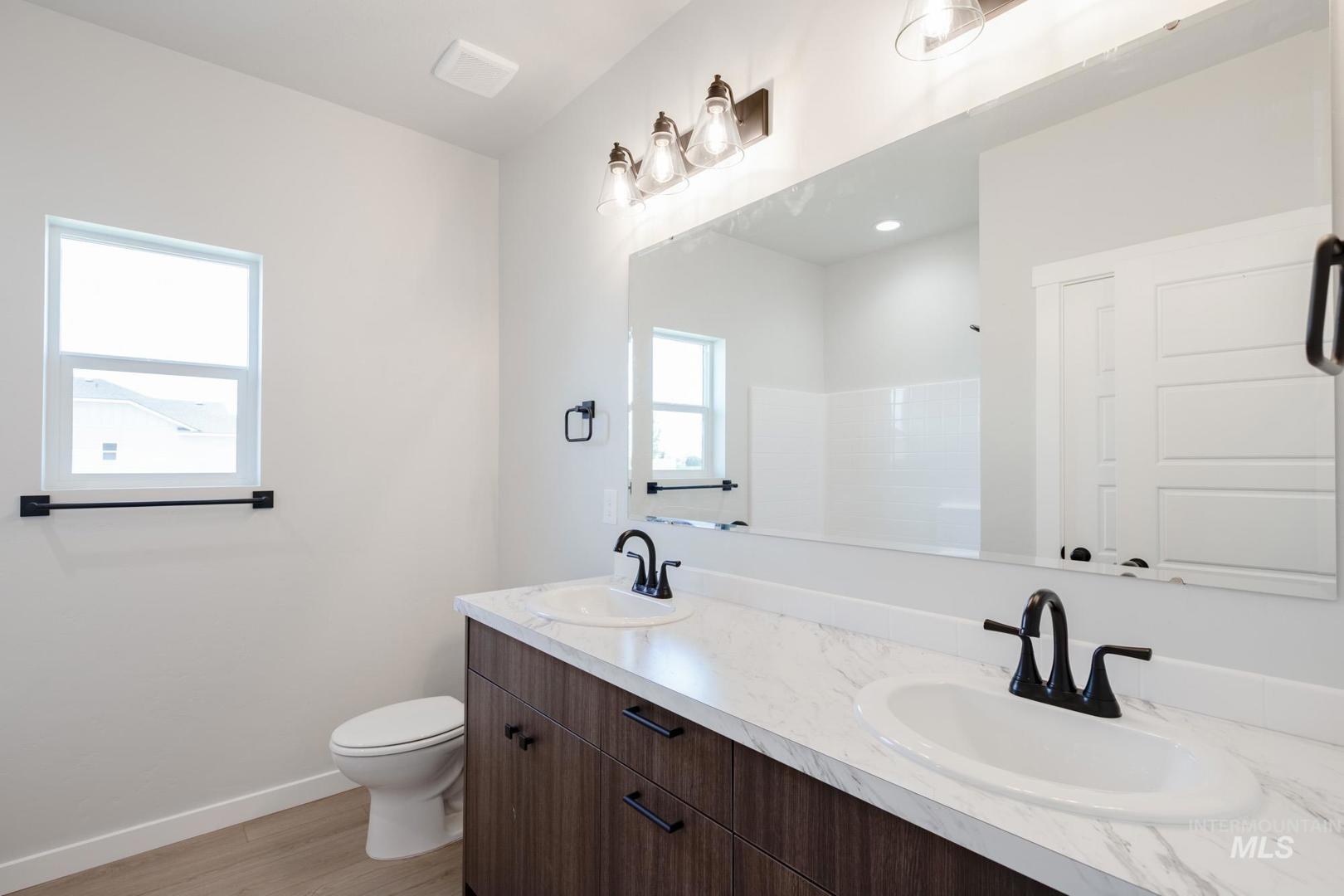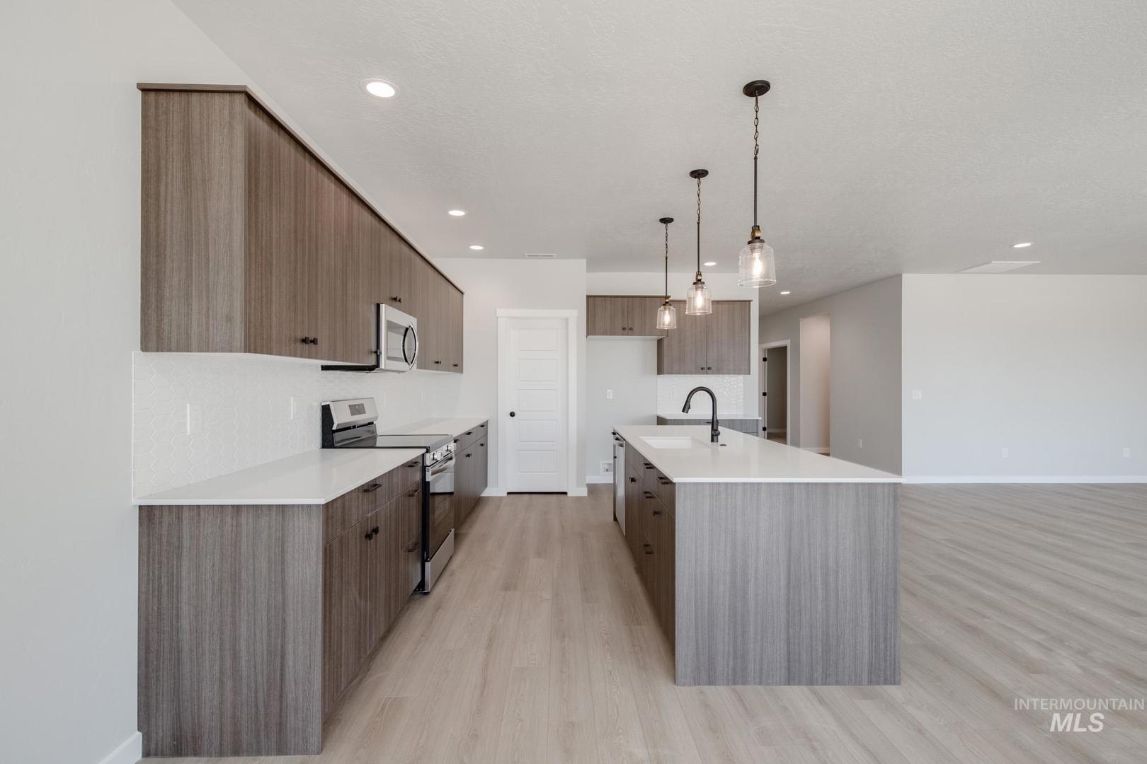 Get up to $30K now thru 11/30/2025 with the Festival of Homes Promo! Embrace the comforts of a brand new home in Mountain Home, Idaho. The Riverbirch 2626 floorplan is thoughtfully designed for both function and comfort. With four bedrooms and a desirable half bath in addition to two full baths, it offers convenience for families and guests alike. A versatile room off the main living space is ideal as a home office, craft area, reading nook, or homework station. The open-concept layout connects the spacious kitchen, dining area, and great room to the back patio, perfect for entertaining or everyday relaxation. The kitchen comes with stainless steel appliances and stylish solid surface countertops, adding both functionality and aesthetics to the kitchen. The primary suite is tucked away for privacy and features a soaker tub, a generous en suite, and closet. A unique front-facing garage bay is separated from the main garage, offering additional storage, parking, or workspace flexibility. With smart use of space and flexible living areas, the Riverbirch supports a lifestyle of ease and adaptability. Photos are similar. All selections are subject to change without notice, please call to verify.