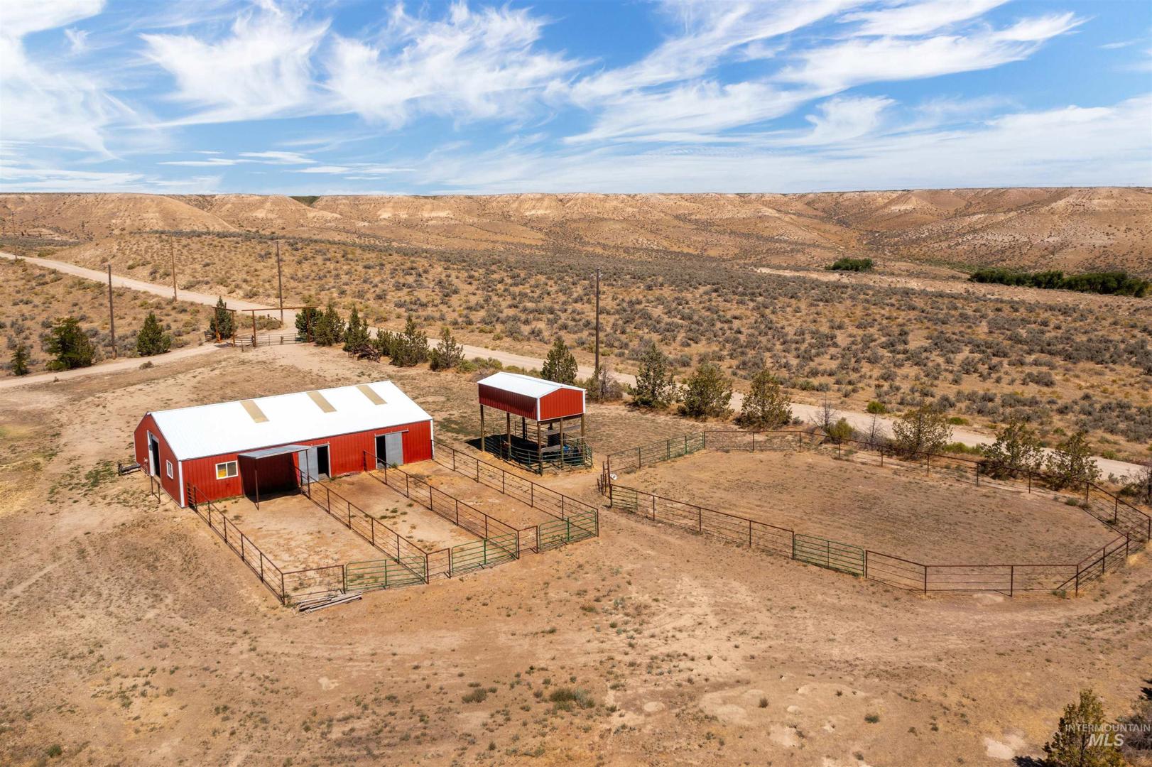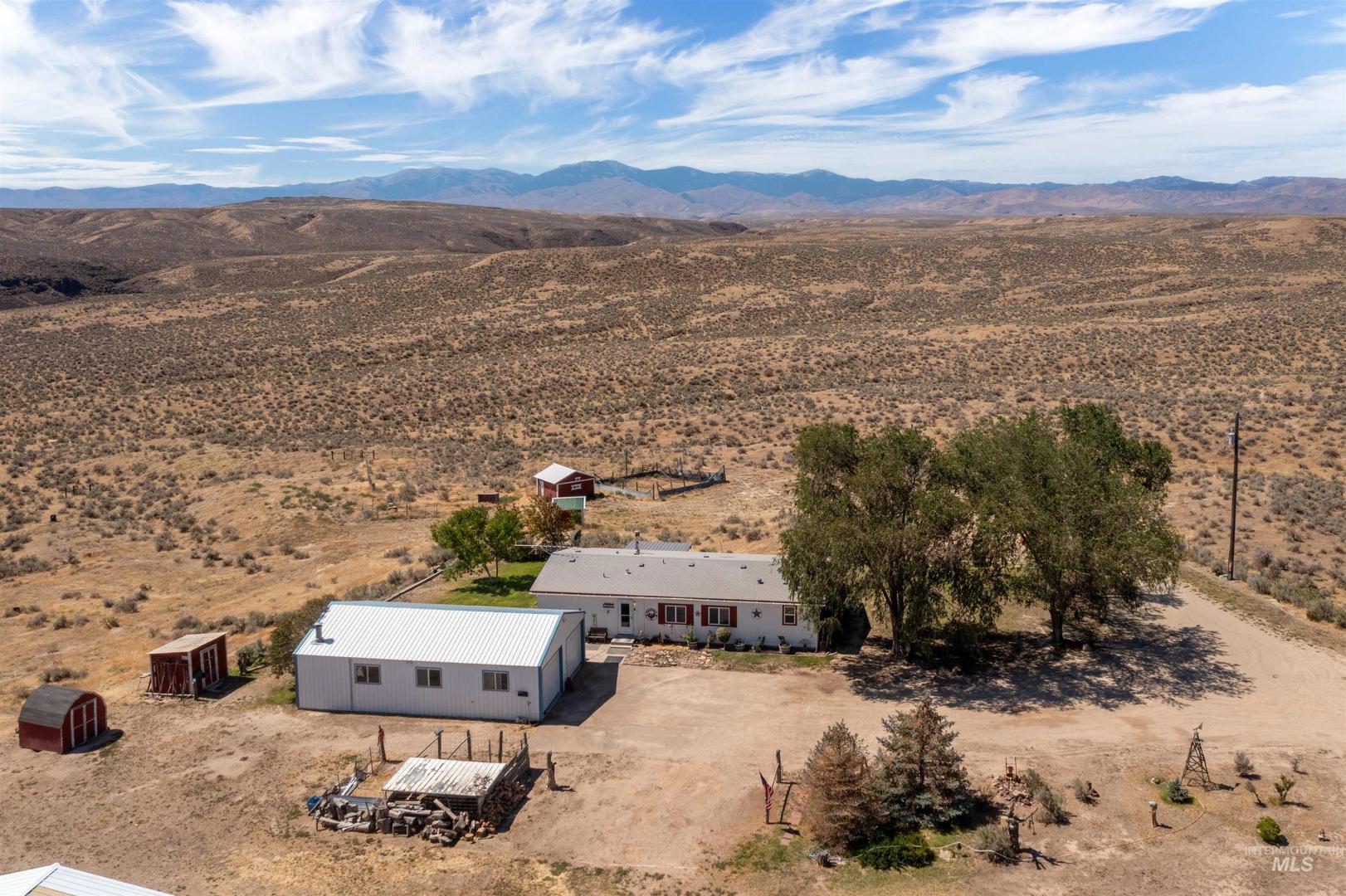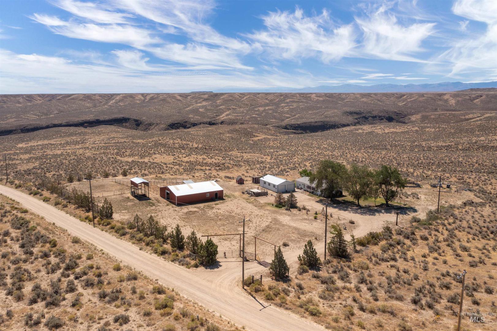 Discover peace and privacy on 5 acres in Murphy, Idaho with sweeping views of the Owyhee Mountains and abundant wildlife all around. Just a 35-minute drive to major amenities, this property blends seclusion with convenience. The oversized stall barn (16x14) is fully set up with 4 stalls, a tack room, and an insulated heated office. You`ll also find a separate hay barn, a riding area, and a heated shop with two garage bays and a workshop. A true country retreat with everything you need for horses, hobbies, and enjoying the quiet Idaho lifestyle.