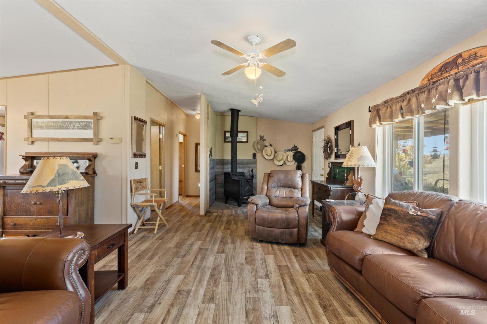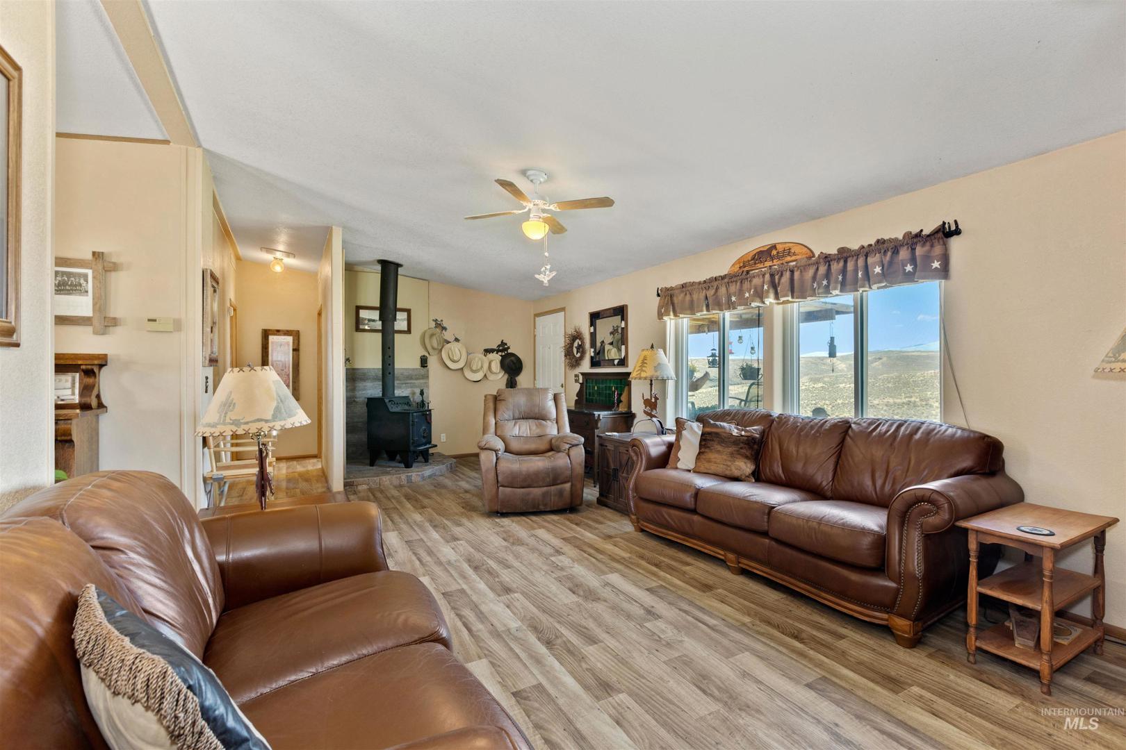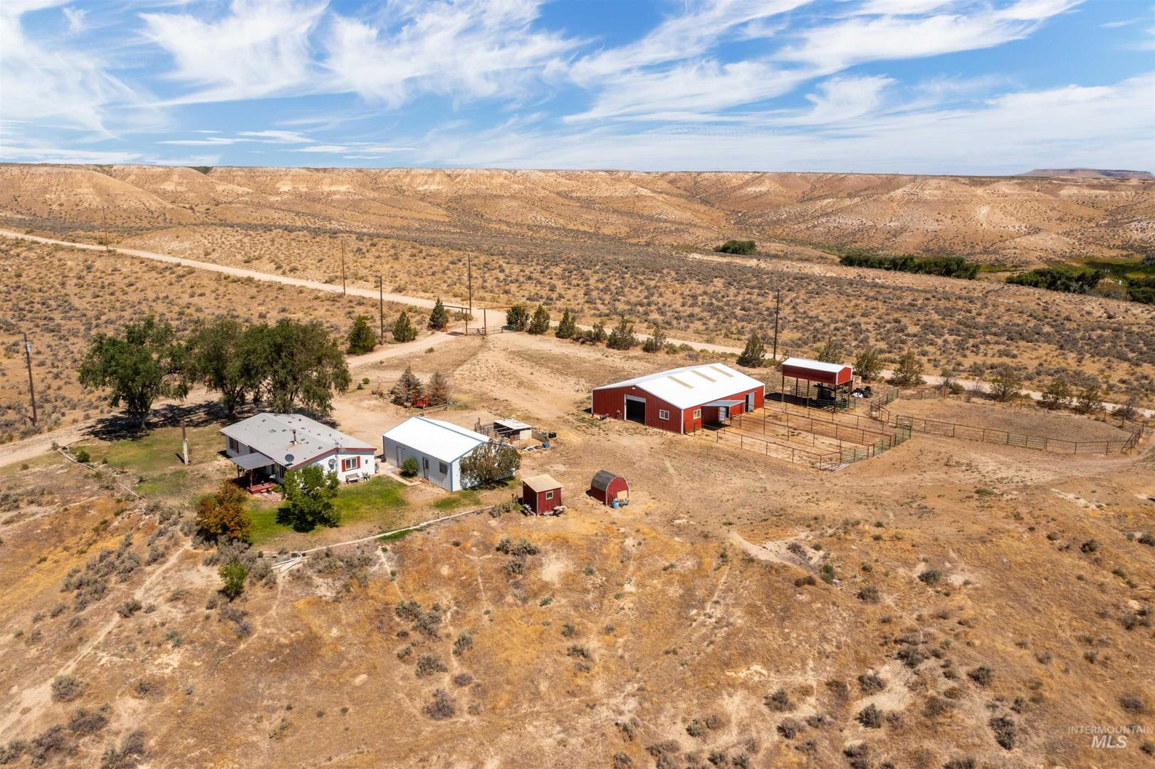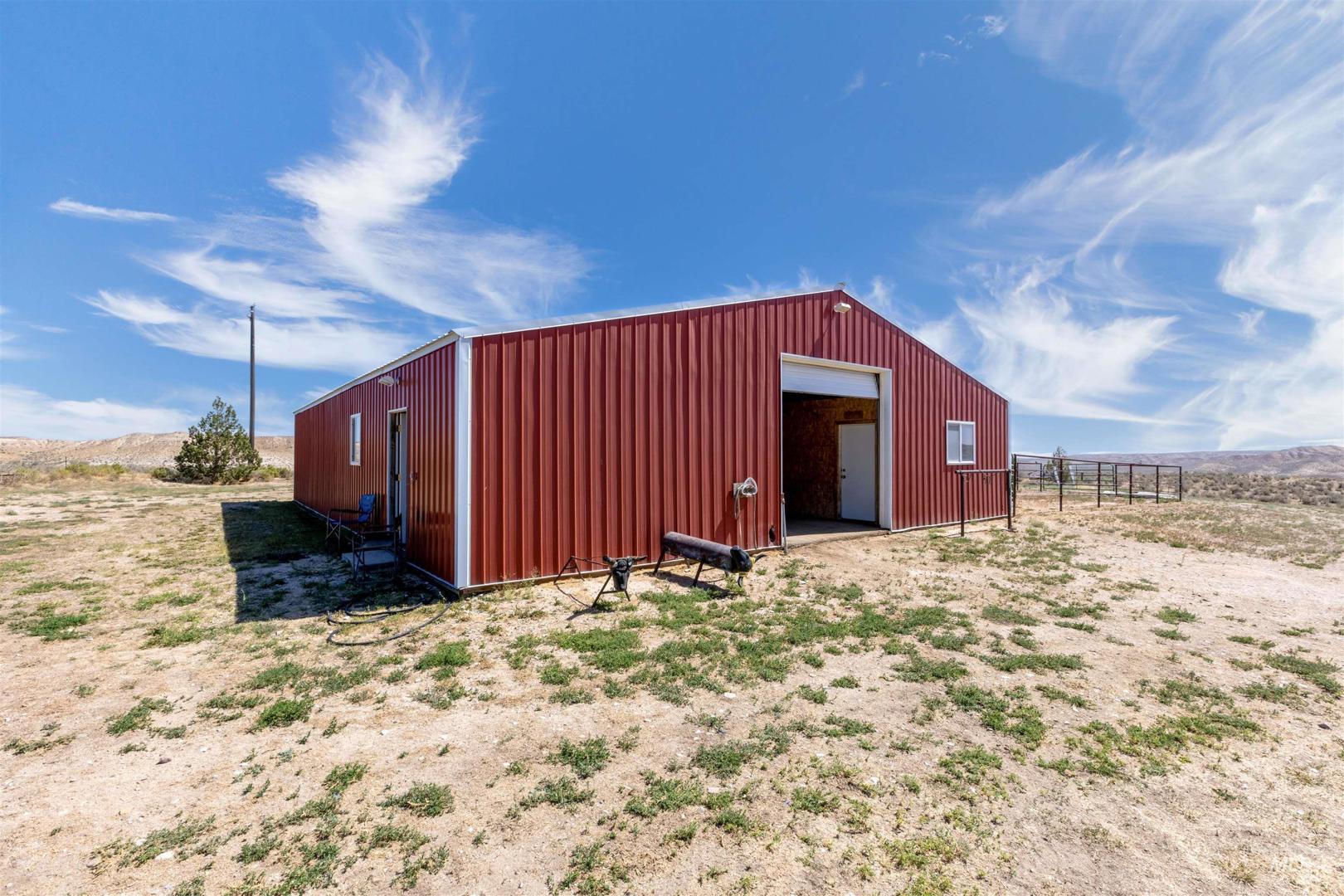 Discover peace and privacy on 5 acres in Murphy, Idaho with sweeping views of the Owyhee Mountains and abundant wildlife all around. Just a 35-minute drive to major amenities, this property blends seclusion with convenience. The oversized stall barn (16x14) is fully set up with 4 stalls, a tack room, and an insulated heated office. You`ll also find a separate hay barn, a riding area, and a heated shop with two garage bays and a workshop. A true country retreat with everything you need for horses, hobbies, and enjoying the quiet Idaho lifestyle.