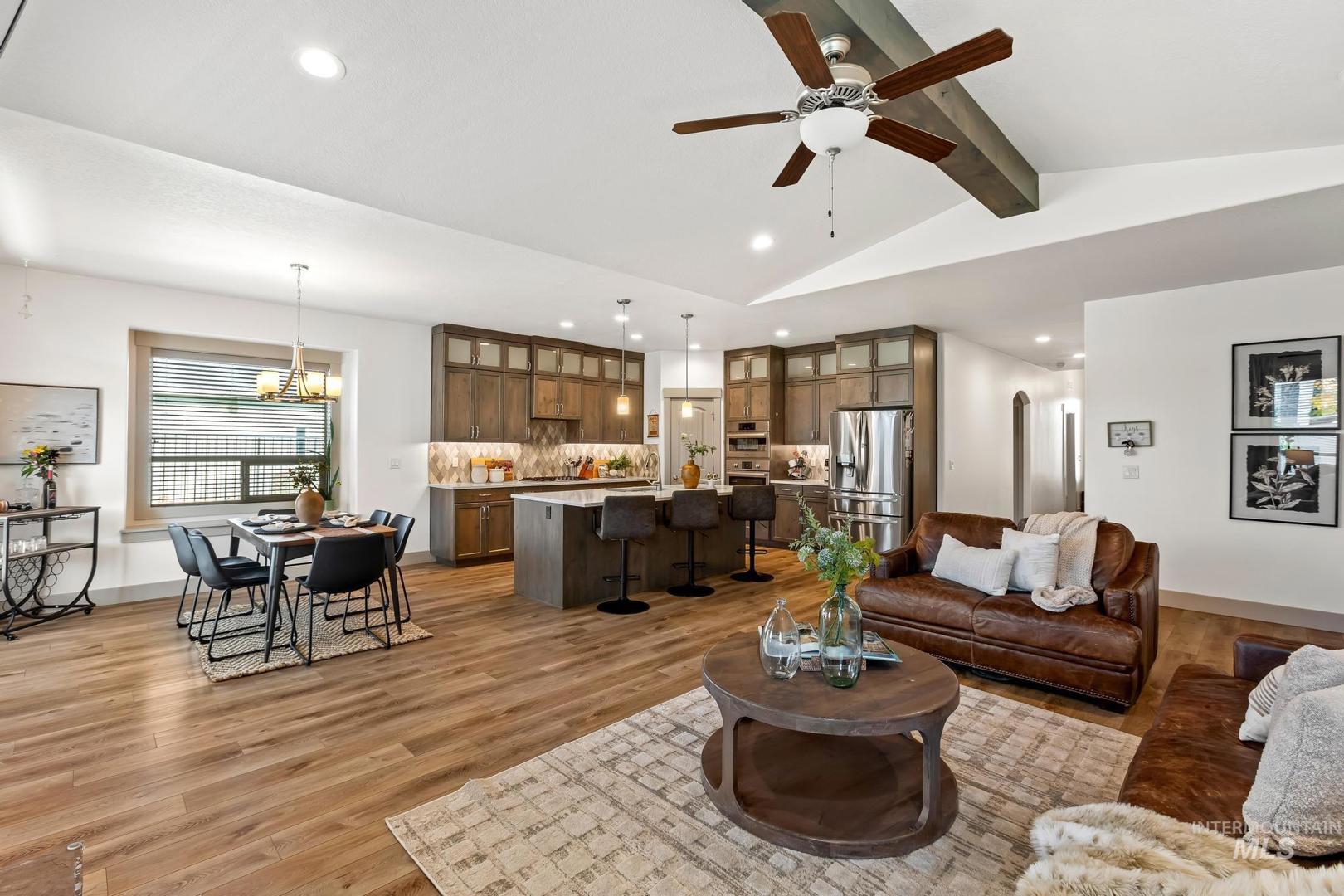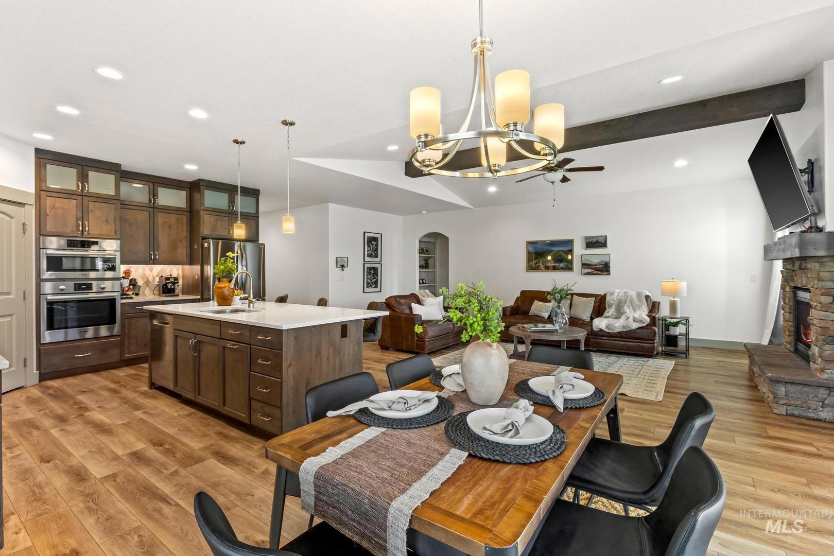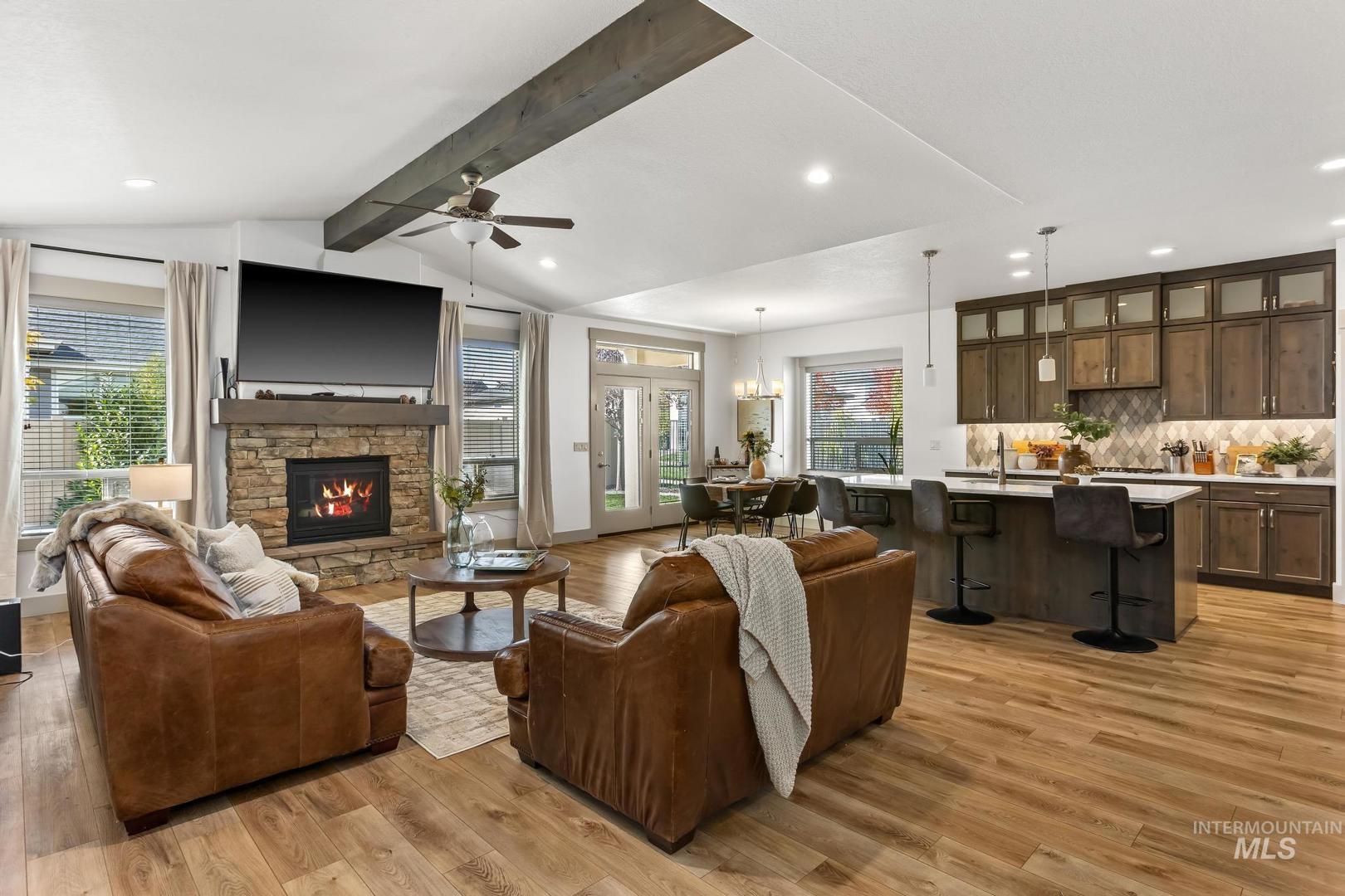 Thoughtfully crafted with high-end finishes and exceptional design, this 3 bed, 2 bath home features an open-concept layout with a warm gas fireplace and a chef’s kitchen complete with Bosch appliances, quartz countertops, and rich stained cabinetry. The owner’s suite offers a spa-like retreat with a zero-entry tiled shower, dual vanities, and a spacious walk-in closet that connects to the laundry room. A large boat bay and expansive yard space add function and flexibility to this beautifully livable home.