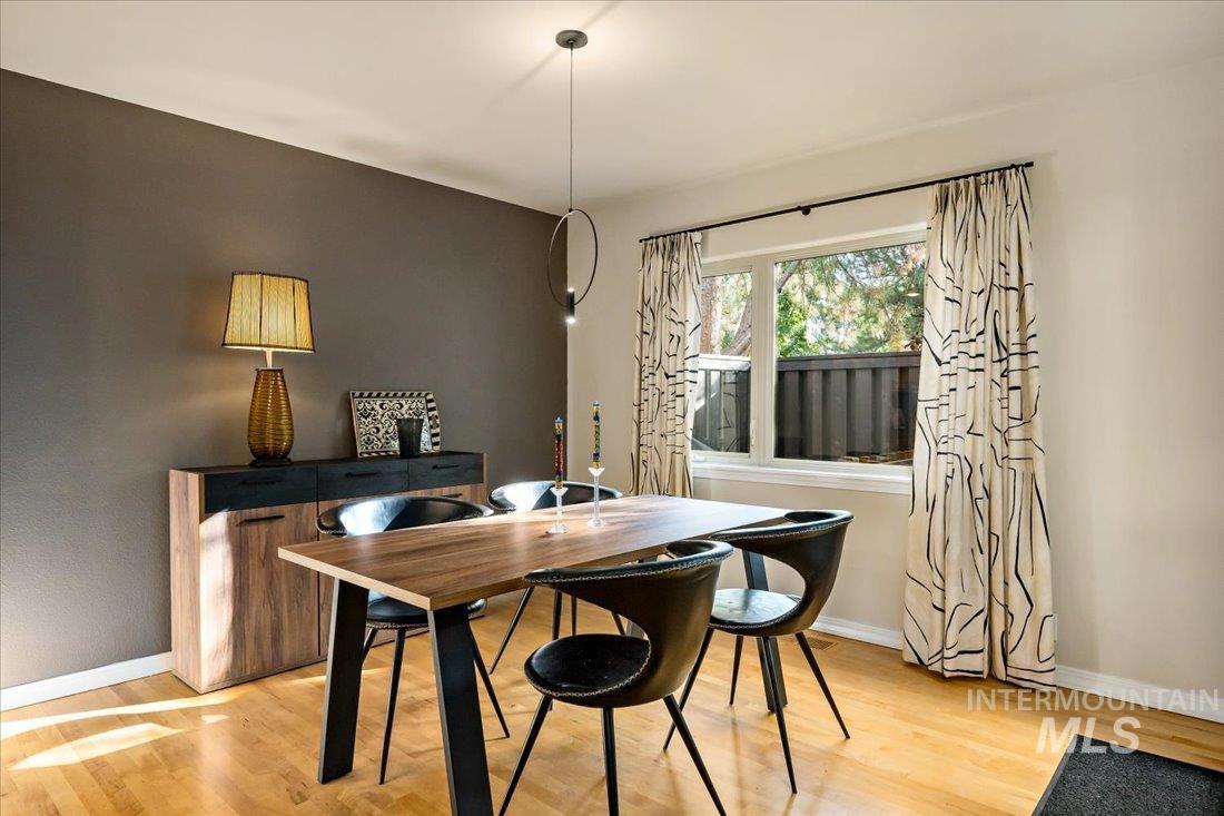 Tucked away in the coveted River Run community of SE Boise, this 2-bedroom condo offers a rare blend of vintage charm and modern updates in a prime location. Vaulted ceilings with skylights enhance the open-concept main level, where living, dining, and kitchen areas flow together with generous space and a breakfast bar. A versatile upper-level loft adds flexible square footage—ideal for a home office, fitness space, or additional sleeping area. Step outside to a private deck surrounded by lush greenery, perfect for quiet mornings or evening relaxation. With easy access to the Boise River, Greenbelt, Downtown, BSU, and Bown Crossing, this property is positioned for both lifestyle and long-term value. Recent upgrades include an epoxied garage floor, remodeled upper-level bathrooms, new carpet and blackout blinds (2025), fresh interior paint, updated window coverings, and a newly built Redwood deck. Previous improvements include refinished hardwood floors, a new HVAC system, gas range, and dishwasher. Whether you`re seeking a stylish rental, a low-maintenance second home, or a long-term investment in one of Boise’s most desirable neighborhoods, this condo delivers elegance, convenience, and strong potential for appreciation—all with the ease of ‘lock & leave’ living.