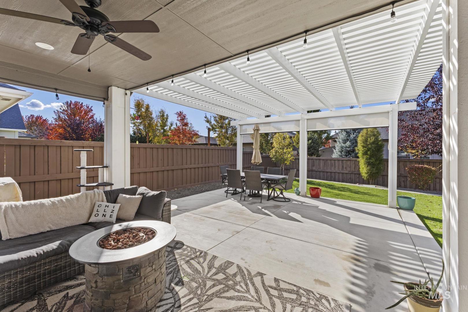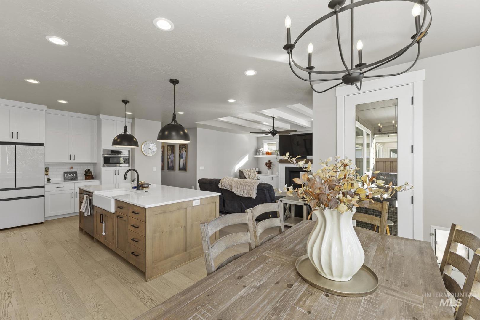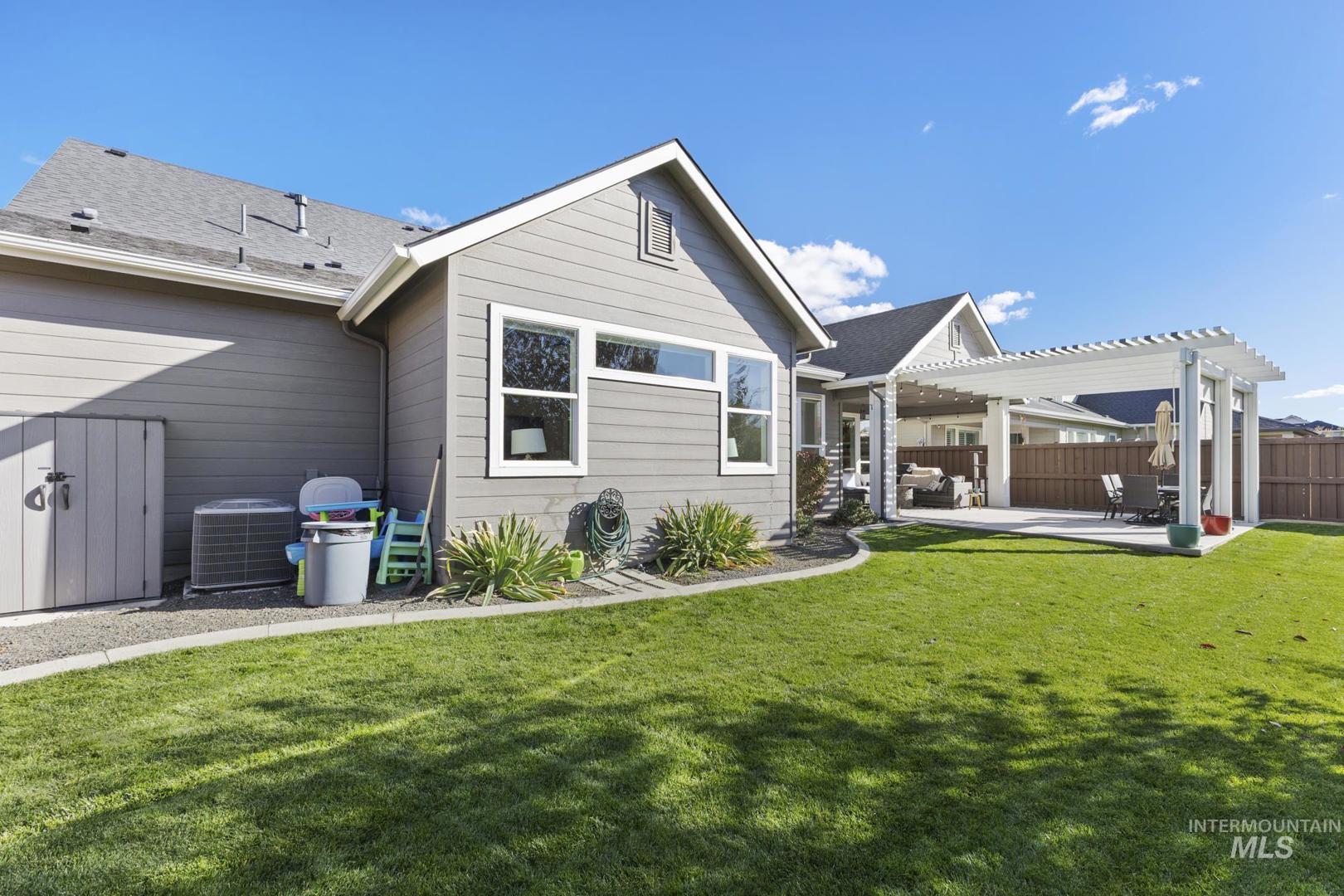 Located in the coveted Bainbridge subdivision, this single level home with an upstairs guest suite is nothing short of stunning. It`s perfect for multi-generational living. The living room is welcoming with its warm fireplace, large picture windows, coffered ceiling and beams. The kitchen will inspire your inner chef to cook and entertain your guests. A welcoming primary retreat and ensuite with its spa like bathroom and walk in closet that connects to the laundry room. The outside door space has been upgraded with an extended patio and pergola with drop down shades. Adding to its amenities this home comes with an extended third bay garage and built in storage/shop on the side of home for garden tools and mowers.