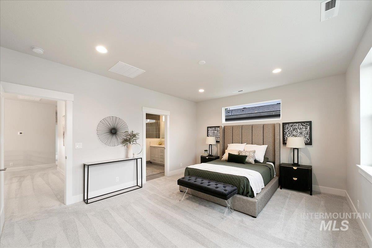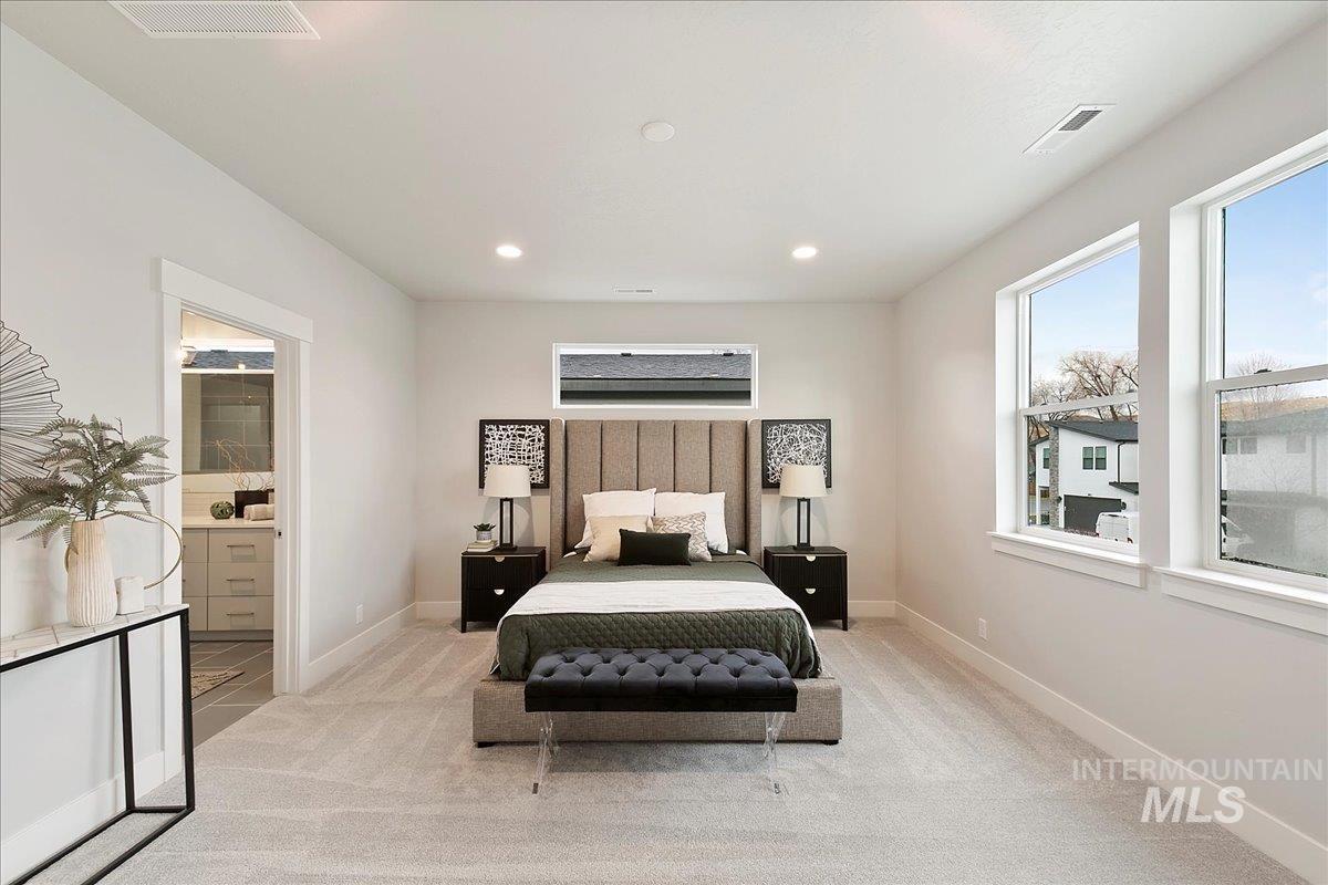 Elegant contemporary new construction in the highly sought-after NW Boise area! Perfectly situated near shopping, HWY 55, downtown Eagle, downtown Boise, the Greenbelt, and endless foothill trails. Step inside to discover an inviting open-concept floor plan designed for effortless living and entertaining. The sleek kitchen features a built-in stove with range cooktop, chic finishes, and an expansive pantry with room for a tech desk—ideal for organization or meal prep. Stylish countertops, modern hardware, and designer lighting flow throughout, creating a cohesive and elevated feel. The primary suite offers a serene retreat with an oversized, beautifully tiled walk-in shower and dual vanity space. Secondary bedrooms are generously sized with abundant closet space, providing comfort and versatility for guests, family, or a home office. A perfect blend of function, elegance, and location—your NW Boise dream home awaits!