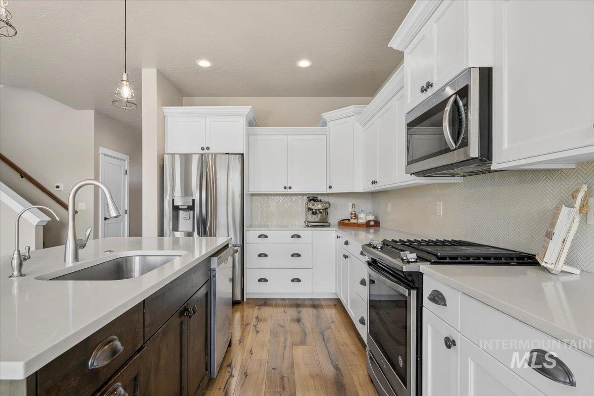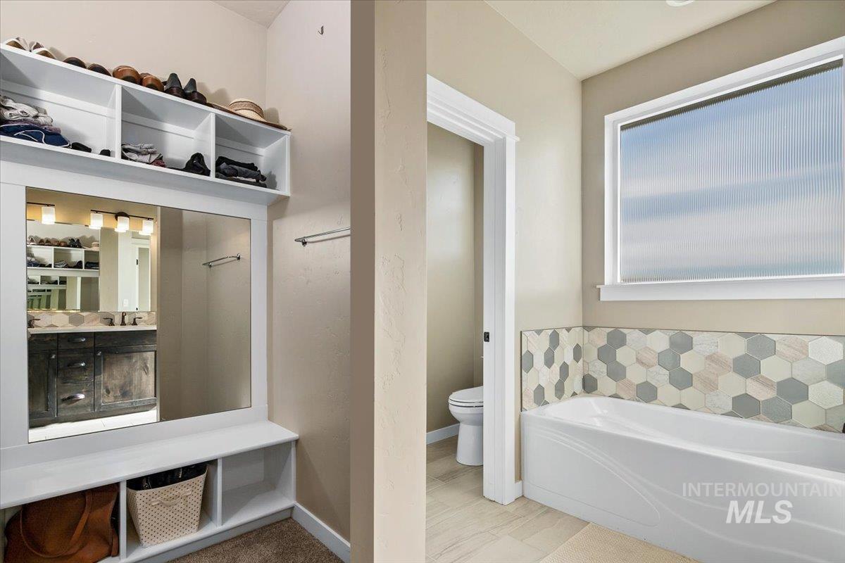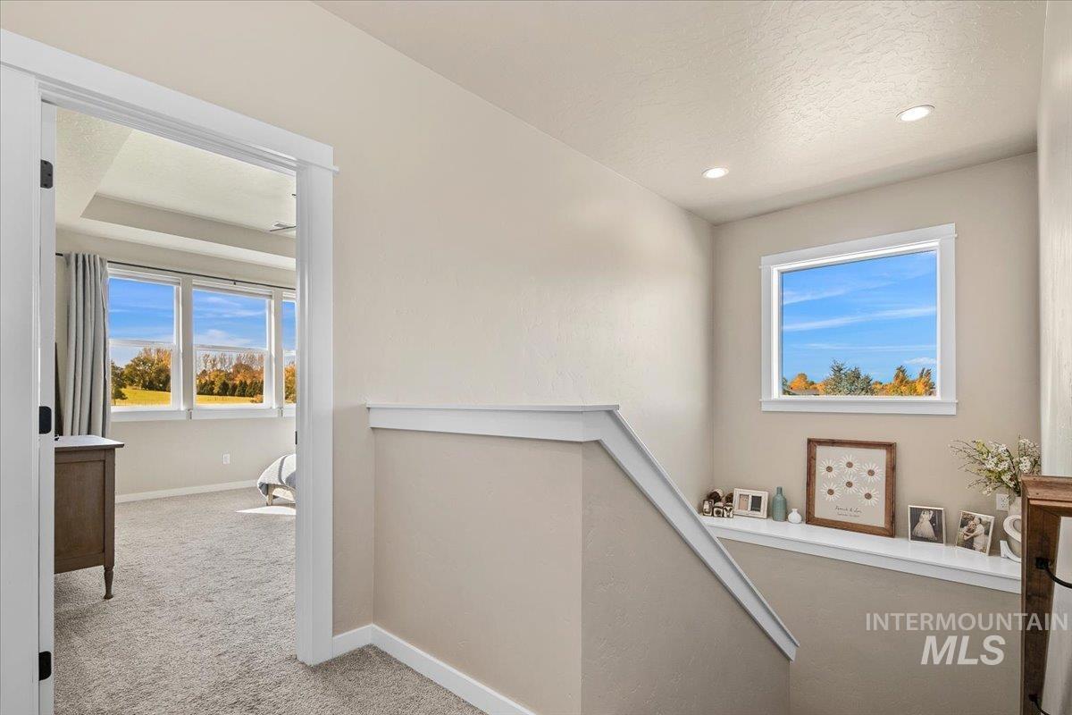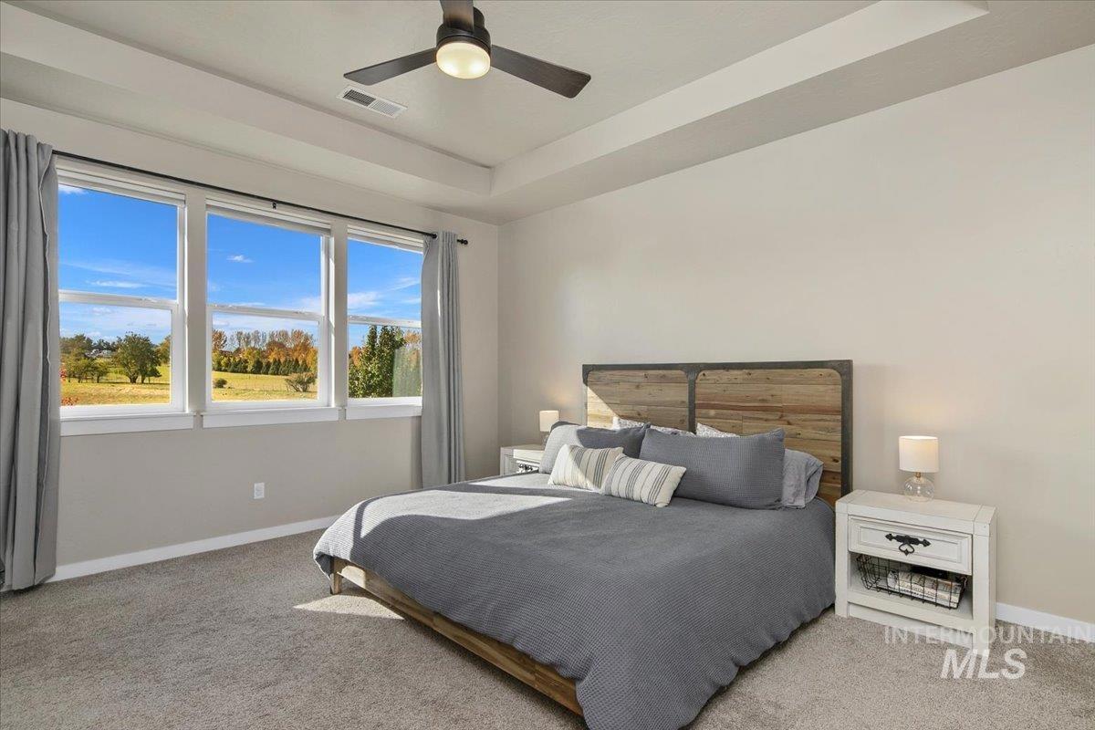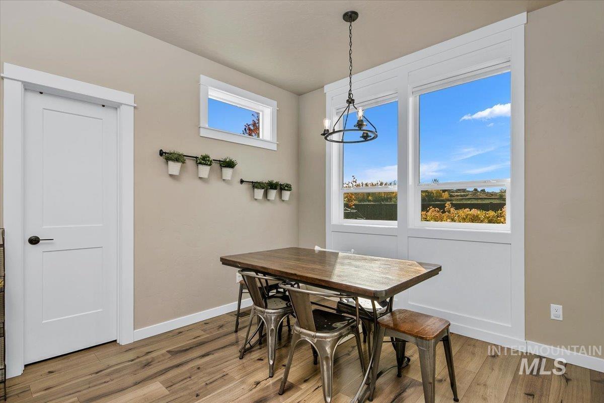 OPEN HOUSE SAT, NOV 8 FROM 12PM-4PM. Assumable VA loan at 4.75% for Veterans! Do you need 4 bedrooms, AND an office, a HUGE backyard with NO rear neighbors, a 3 car tandem garage, all in highly desirable Hazelwood Village with an easy commute to downtown Boise or Micron? This thoughtfully designed home was built by local, high quality builder Solitude homes. The gorgeous kitchen impresses w/ upgraded cabinets, quartz countertops,gas range,full tile backsplash, and a large walk in pantry with an appliance counter. Island overlooks the light-filled great room with a cozy corner fireplace. Upstairs, you’ll find generously sized bedrooms, including a luxurious primary retreat featuring trayed ceilings, a spa-like ensuite with a soaking tub, fully tiled walk-in shower, and a custom walk-in closet that conveniently connects to the laundry room. Set on one of the largest lots in the community, there is room to garden, entertain, or simply unwind on the oversized covered patio while enjoying views over the pastoral countryside.Other bonuses include EV charging, a water softener and filtration, beautiful trimwork throughout, views from every window, and low SW Boise property taxes. Hazelwood Village offers 2 community pools, parks, walking paths, playgrounds, a 4000 sf clubhouse, summer concerts, food trucks, and community holiday events.