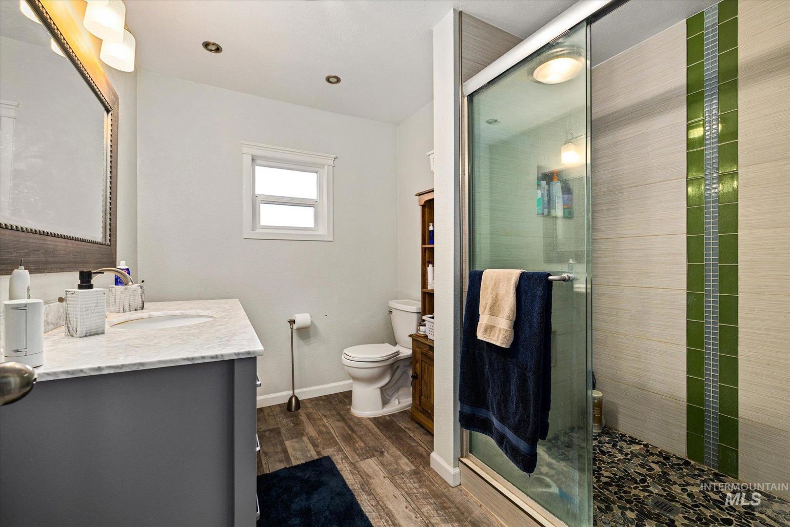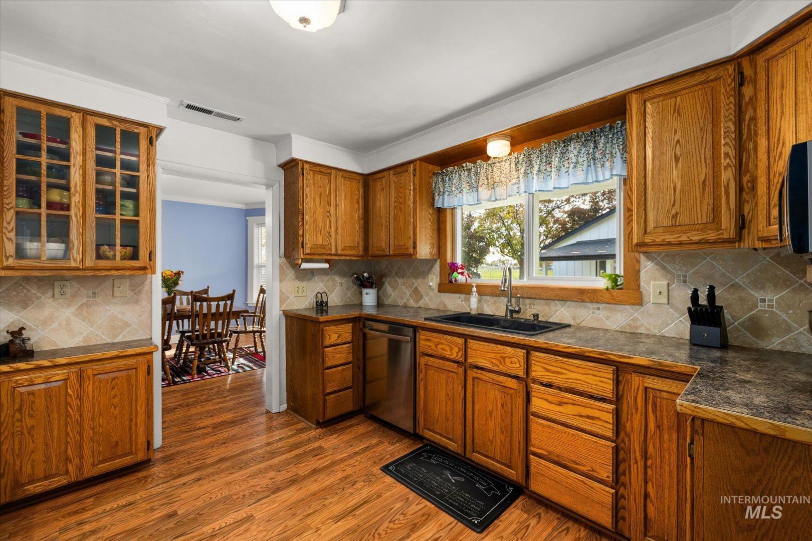 Looking for a home with all of the modern amenities while still offering the character and beauty that a turn of the century home offers? Check out this stunning 4 bedroom 2 bath home, with a split bedroom floorplan on 2.19 acres in the heart of Nampa. The home underwent a major remodel in 2021 that updated the roof, siding, interior and exterior paint, full gutters, new sunroom, new windows & trim, mostly new electrical, PEX plumbing, remodeled baths, newer flooring and a new well pump (2018) among many other updates. The large, mature trees and landscaping ensure summer shade all times of day while adding to the farmhouse charm. The beautiful yard is fully fenced with automatic sprinklers making maintenance a breeze. Outside you will find 2 small pastures in addition to 4 pens with automatic water for your livestock. The shop is fully functional with 2 overhead doors, concrete floor, a sink and an office. Located just 5 miles from Lake Lowell, 7 miles from BLM and close to major shopping with ample room for animals and toys. No HOA or CC&Rs.