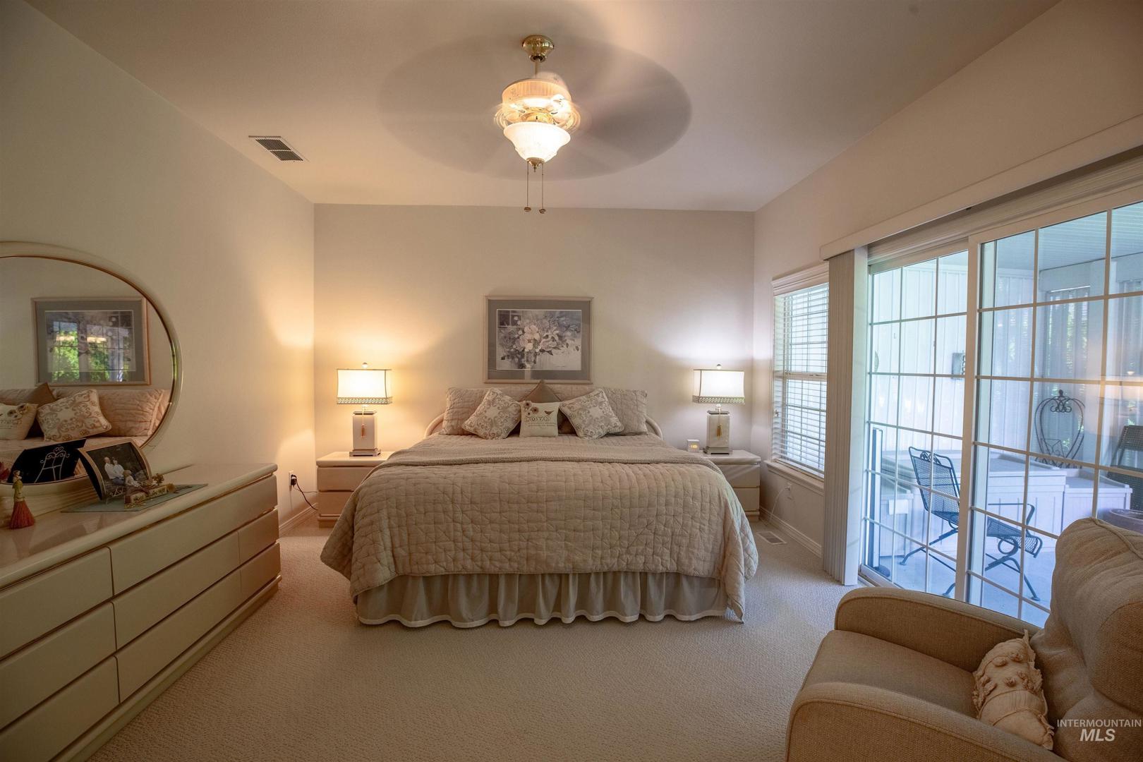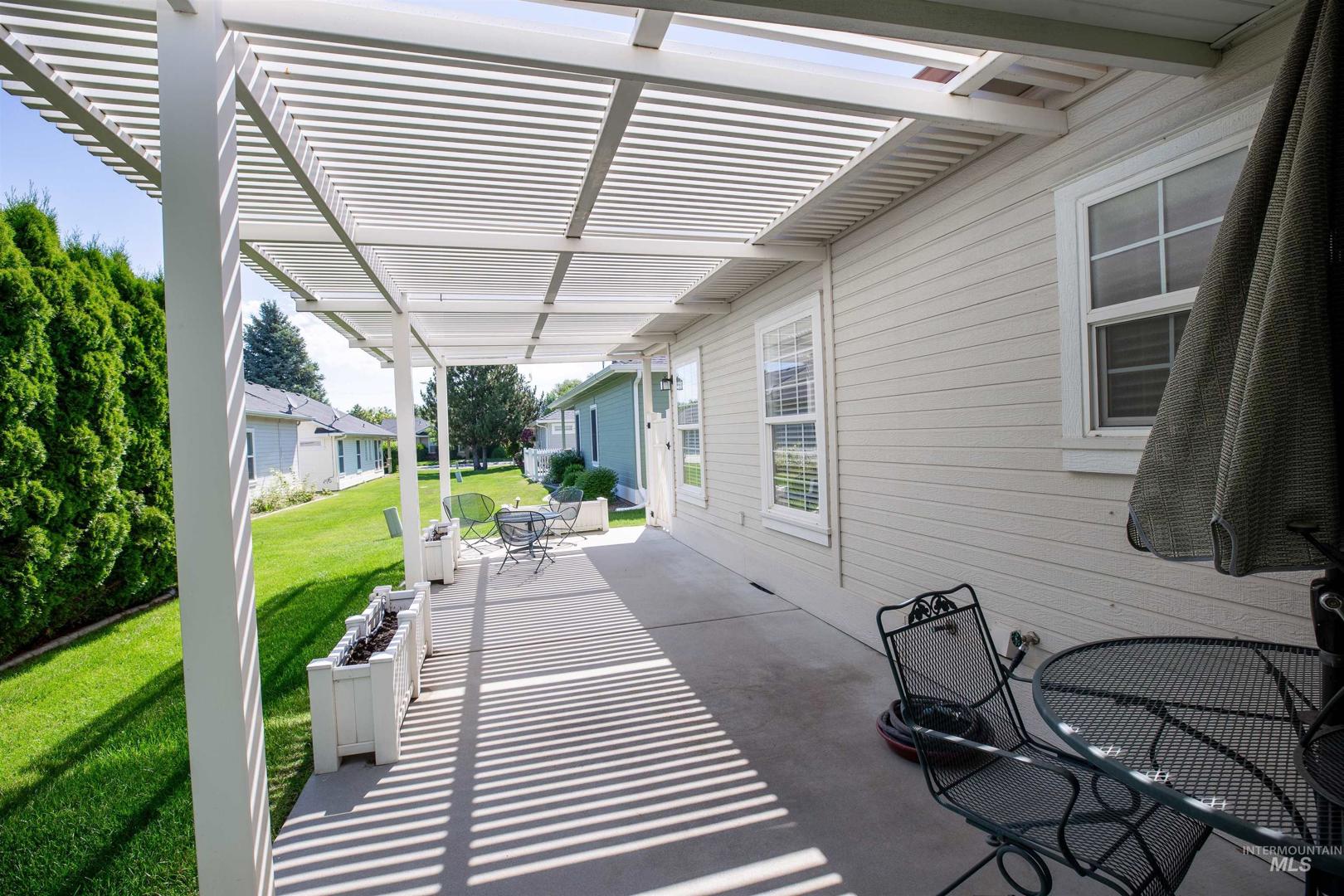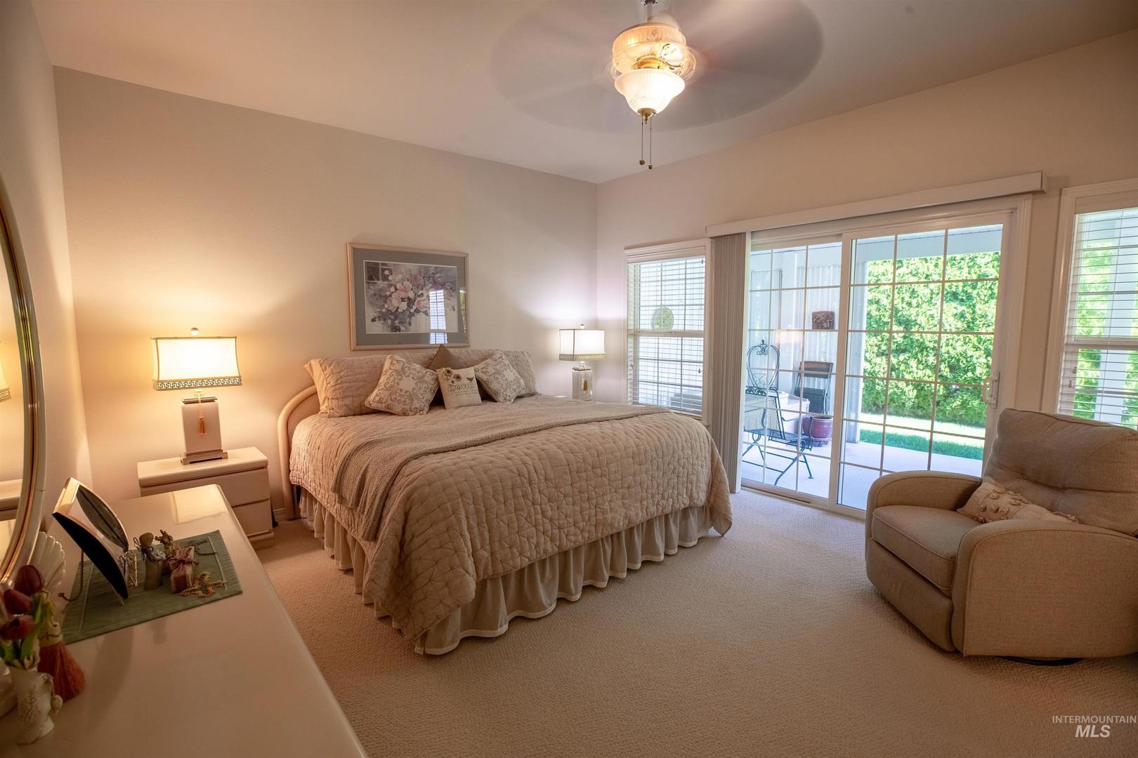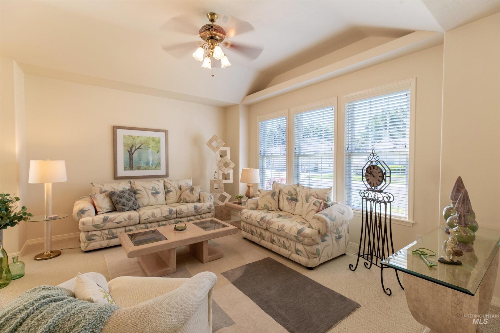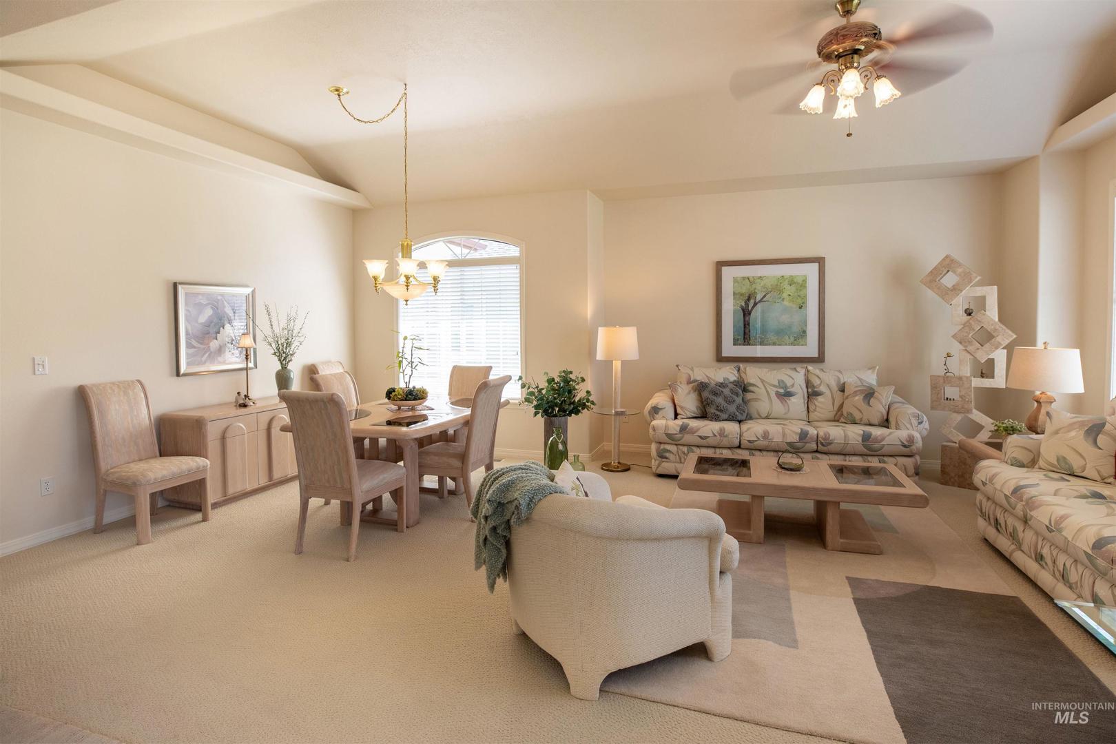 IMPECCABLY maintained & super clean! You`ll feel the differnce: light, bright, clean & refreshing! Coveted 55 & Up, gated neighborhood w/beautiful golf course, club house and community swimming pool just down the street. This 2 bed, 2 bath home lives LARGE! First the HUGE kitchen with corian countertops, newer appliances, tons of cabinetry, breakfast nook & pantry. Primary bedroom adorned w/large walk-in closet, tiled with dual vanity & easy step-in shower. Convenient access to a private patio. Large family & living rooms w/most furniture included if you`d like! Family Rm opens to covered, private patio w/4 raised planters w/sprinklers. Other amenities include 2nd bathrm w/tile, ceiling fans, 2" vinyl blinds & cozy fireplace. Newer HVAC w/service contract, all plumbing pipes replaced 2022, Roof replaced appx 2015. Finished garage w/pull down storage, water softener & did we mention, yard maintenance is included for easy, care-free living?! Pride of ownership for the entire neighborhood-Peaceful & Beautiful!