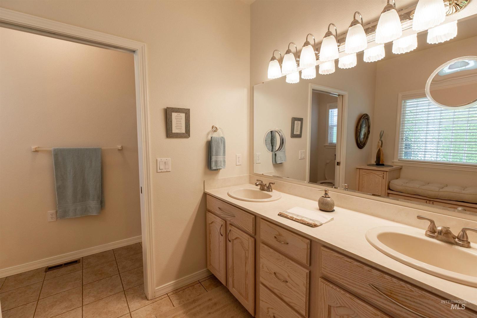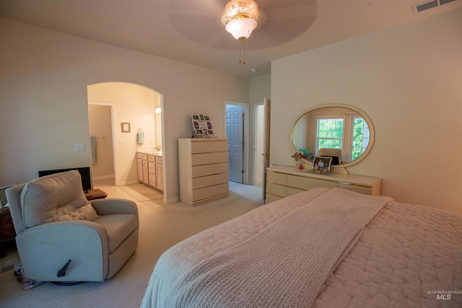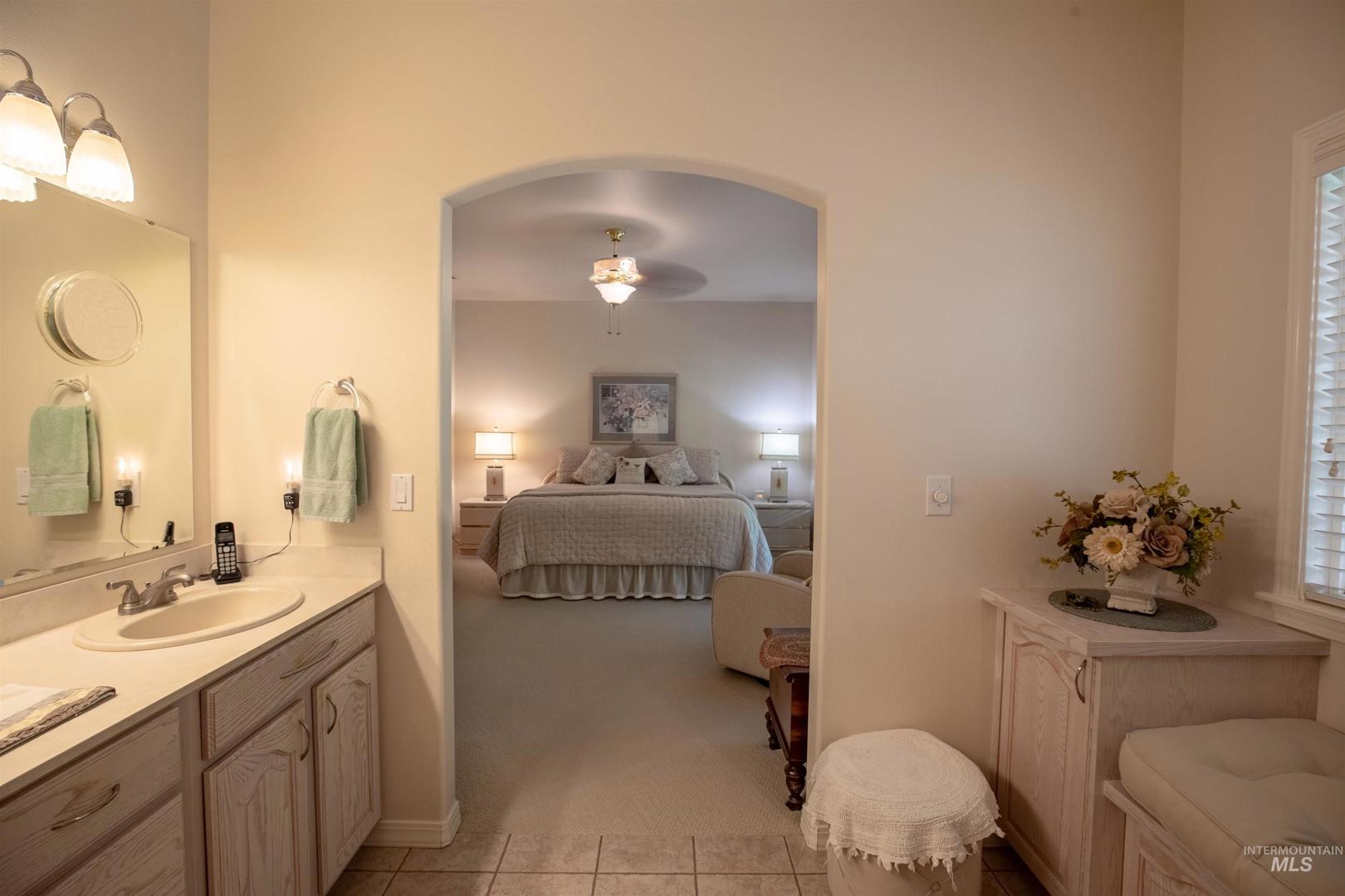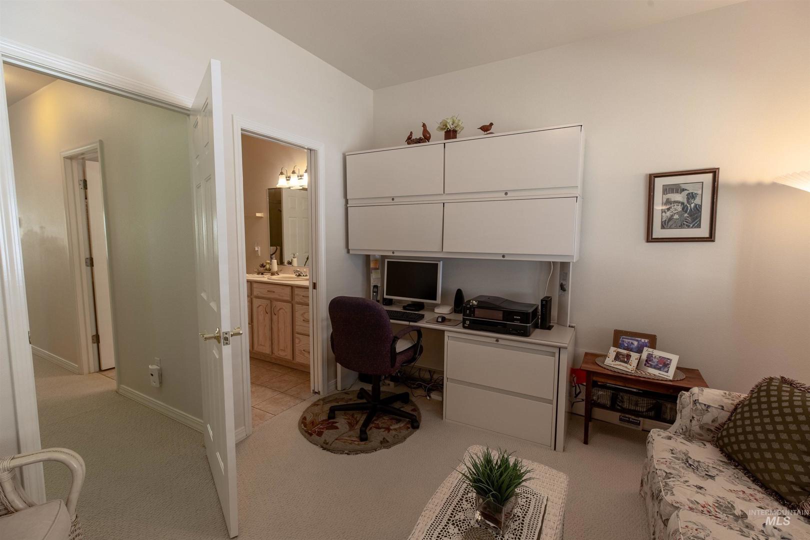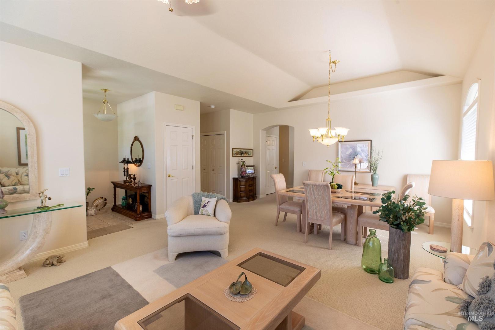 IMPECCABLY maintained & super clean! You`ll feel the differnce: light, bright, clean & refreshing! Coveted 55 & Up, gated neighborhood w/beautiful golf course, club house and community swimming pool just down the street. This 2 bed, 2 bath home lives LARGE! First the HUGE kitchen with corian countertops, newer appliances, tons of cabinetry, breakfast nook & pantry. Primary bedroom adorned w/large walk-in closet, tiled with dual vanity & easy step-in shower. Convenient access to a private patio. Large family & living rooms w/most furniture included if you`d like! Family Rm opens to covered, private patio w/4 raised planters w/sprinklers. Other amenities include 2nd bathrm w/tile, ceiling fans, 2" vinyl blinds & cozy fireplace. Newer HVAC w/service contract, all plumbing pipes replaced 2022, Roof replaced appx 2015. Finished garage w/pull down storage, water softener & did we mention, yard maintenance is included for easy, care-free living?! Pride of ownership for the entire neighborhood-Peaceful & Beautiful!