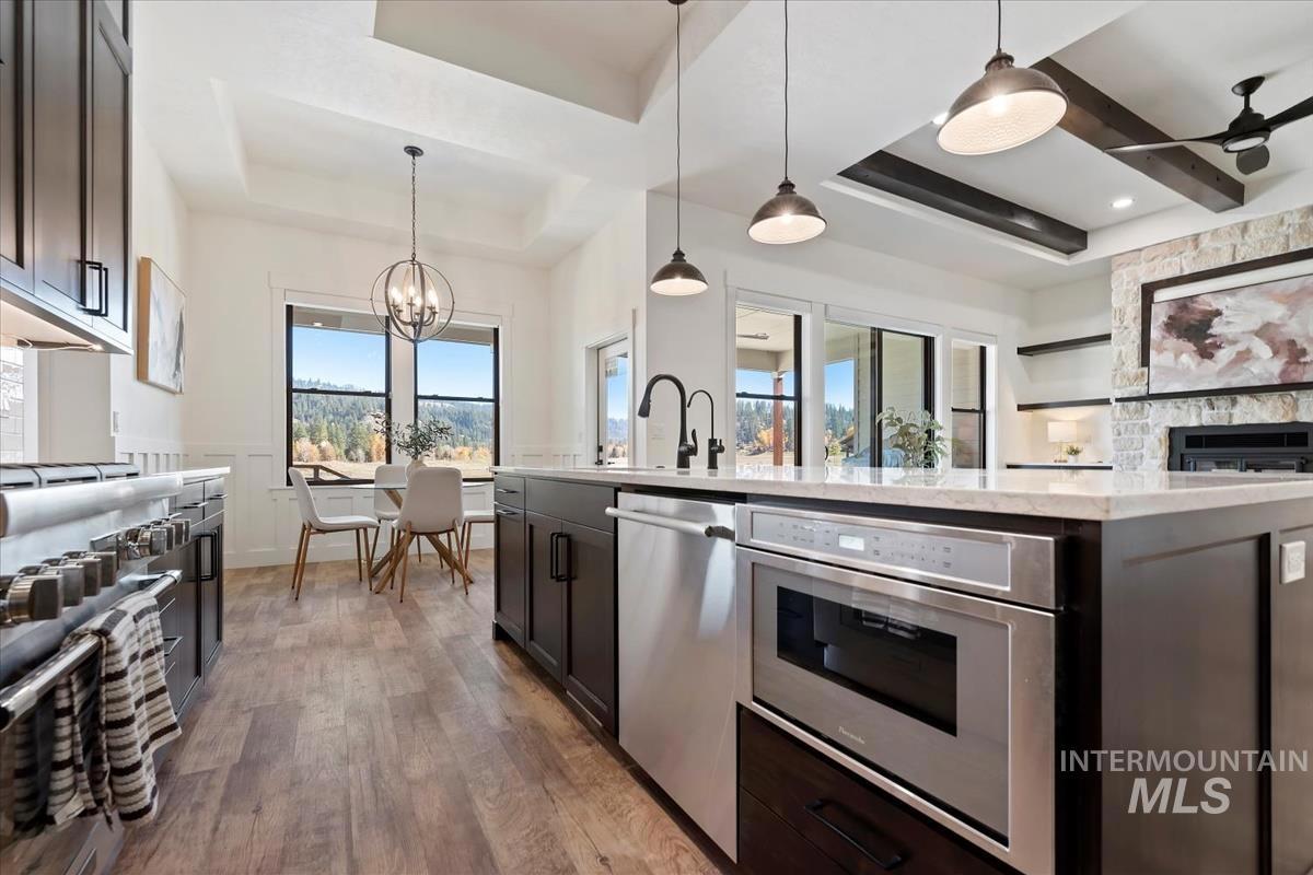 Located in South Fork Landing, this stunning waterfront home offers the perfect blend of luxury, comfort, and natural beauty. Wake up each morning to breathtaking pond and mountain views and unwind in the evenings on the covered patio as the sun sets behind the pines. Step inside to an open-concept layout filled with natural light and warm finishes. The spacious great room features a stone fireplace, wood-beamed ceilings, and expansive sliding doors that seamlessly connect indoor and outdoor living. The gourmet kitchen is a chef’s dream, boasting custom cabinetry, high-end Thermador appliances, dedicated beverage fridge and a large island perfect for entertaining. You’ll enjoy modern convenience in a peaceful mountain setting with a whole house generator, Kinetico water filtration system, road maintenance, community water, irrigation, and a private waste treatment system! Adjacent waterfront parcel included!