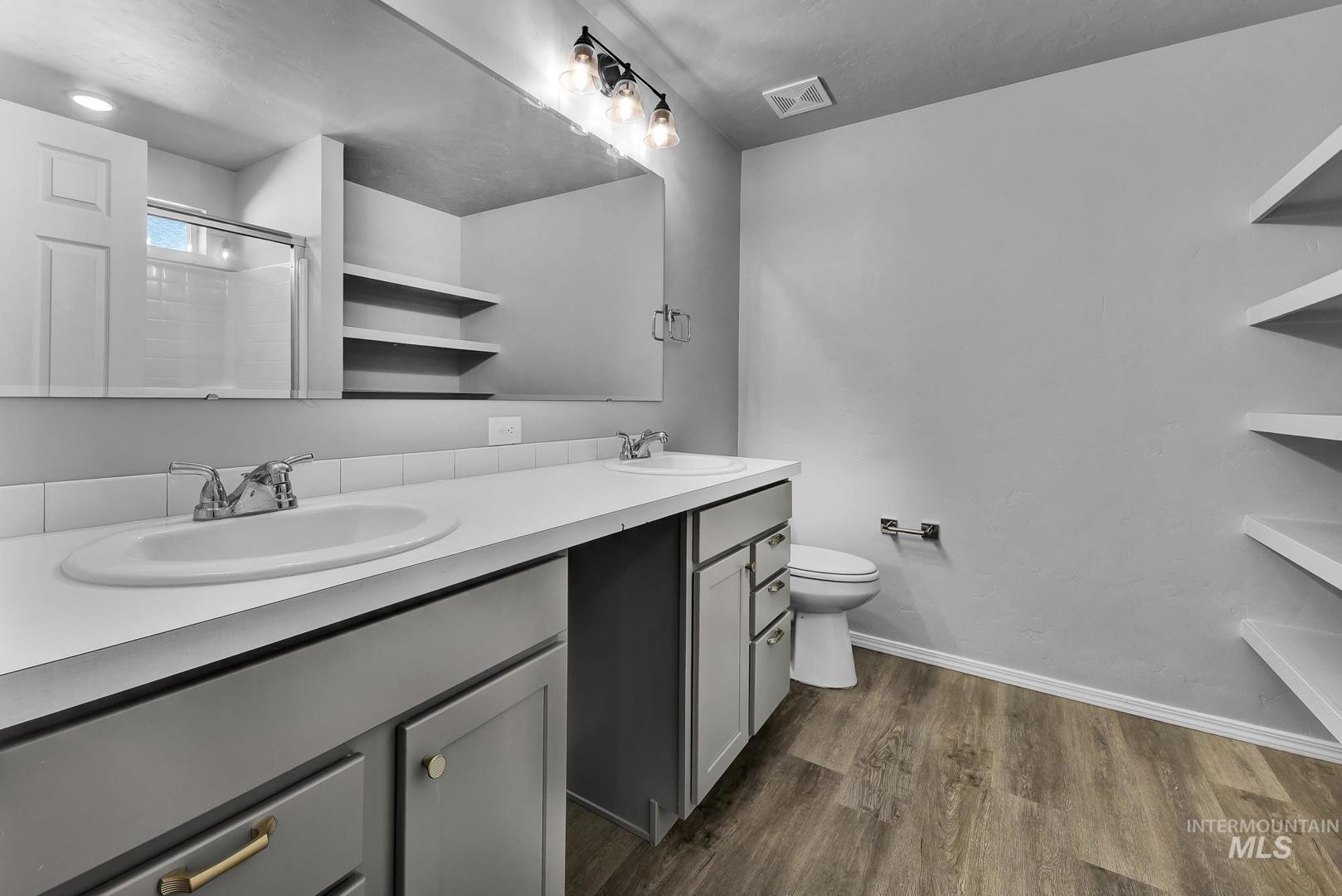 This almost-new four-bedroom home is move-in ready in the Masterson Ranch subdivision, offering convenient access to amenities and the freeway. Enjoy completed outdoor upgrades including rear fencing, sprinklers, landscaping, and a covered patio—no need to add those costly features post-move-in. The home features LVP flooring in the kitchen and primary bathroom, dual vanities, and a thoughtful floor plan with the primary suite located separately from the additional bedrooms. Large windows offer views of the backyard, and the covered patio provides the perfect space for outdoor relaxation and entertaining. All kitchen appliances, plus washer, dryer, and freezer, are included.