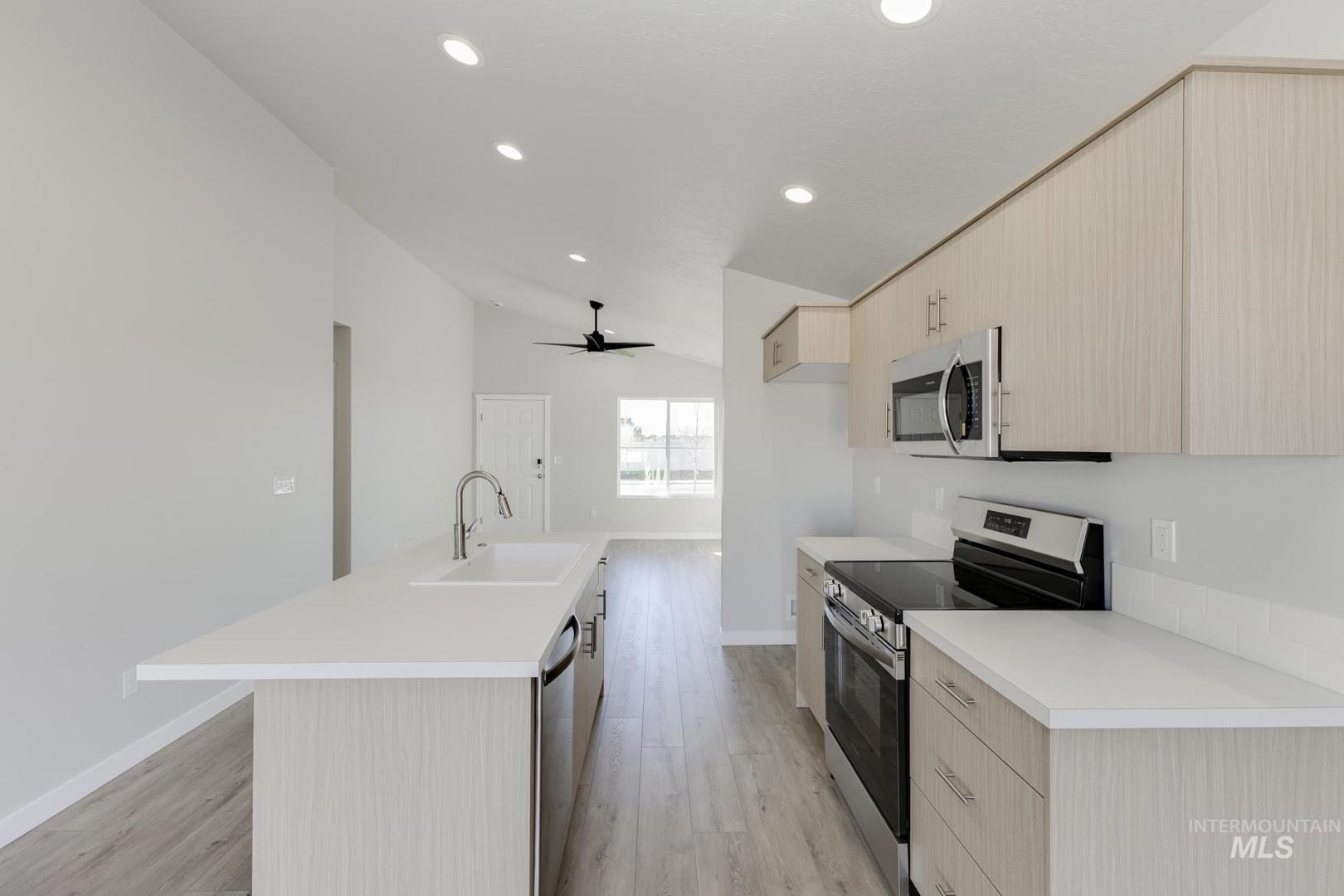 Get up to $20K now thru 11/30/2025 with the Festival of Homes Promo! Enter into a brand new home in Kuna, Idaho and enjoy its benefits and stress free living! The Stella 1207 is adorable and bursting with charm! This thoughtful floor plan flows seamlessly through the home to deliver a cozy living experience. Three bedrooms, all situated on one side of the home, are designed to provide a secluded get-away to everyone. The centrally located living room, kitchen, and dining room are the heart of the home for lounging or entertaining. The kitchen is well-equipped with a spacious island, modern appliances, and plenty of counter space for all your culinary needs. The primary suite provides an en suite bathroom and large closet. Enjoy easy access to the back patio from the dining room and make the most of the pleasant Idaho weather, perfect for outdoor gatherings or quiet relaxation. With its efficient design and inviting atmosphere, the Stella is the ideal place to call home. Photos are of the actual home!