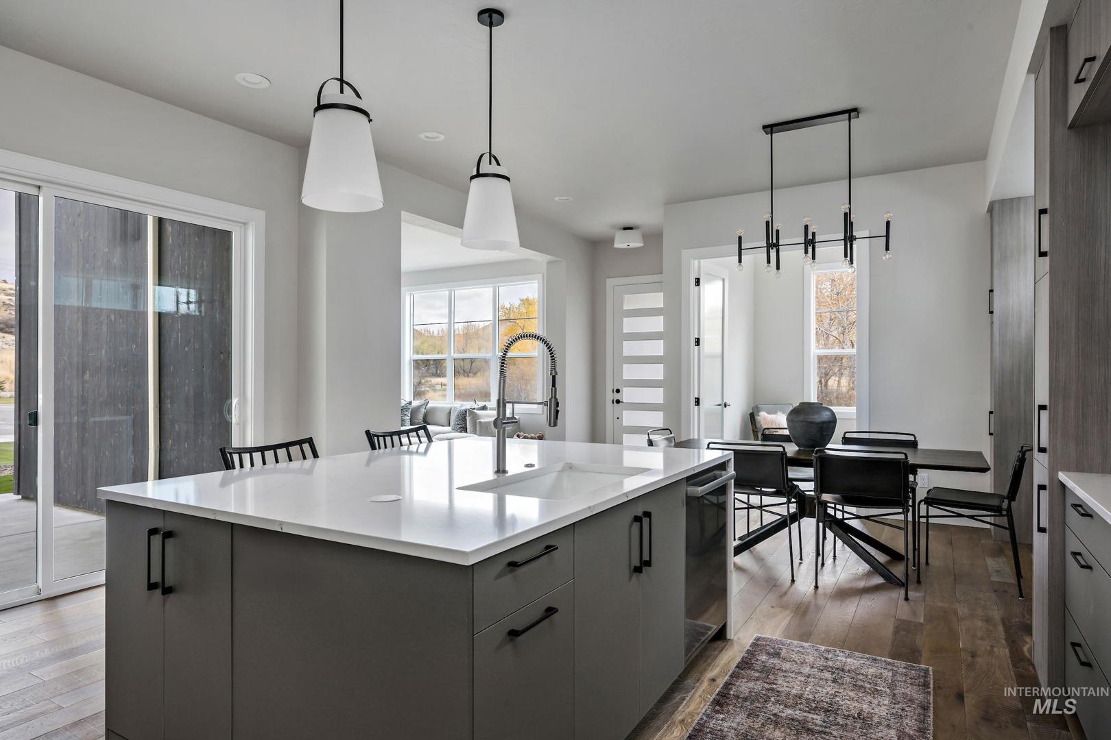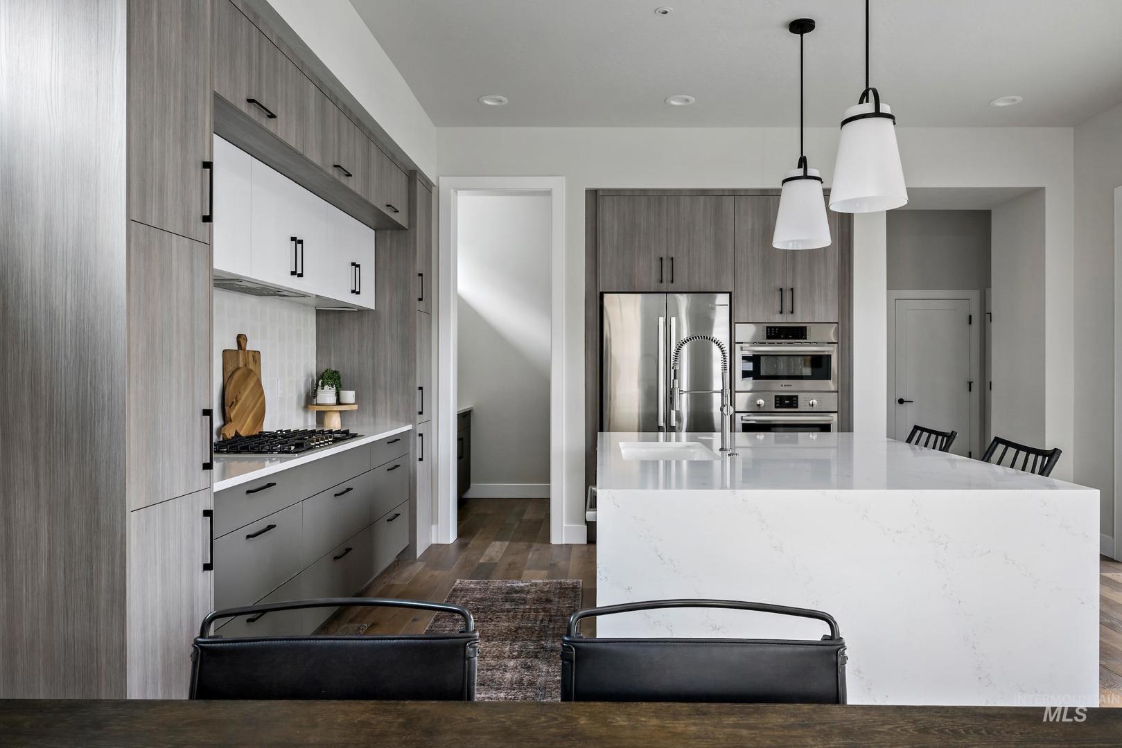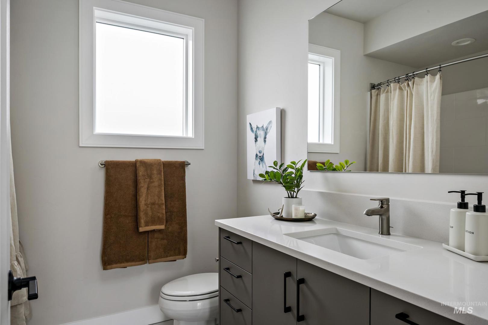 Welcome to the Santa Monica built by Brighton Homes, located in the master-planned Cartwright Ranch community, perfectly positioned across from Dry Creek with incredible views of the Boise Foothills. This home emphasizes open living and outdoor enjoyment. The spacious main floor features an open kitchen, dining, and family room that seamlessly connects to a large patio - perfect for entertaining. A private den offers flexibility for work or hobbies. Upstairs, enjoy a luxurious primary suite with a tray ceiling, a generous walk-in closet, and a spa-like en-suite bath. Two additional bedrooms, a loft, and a second-story outdoor terrace with a perfectly situated beverage center offer ample space for relaxation and gatherings. Thoughtful details like a large pantry with built-in cabinetry and elevated finishes throughout add both function and style. Enjoy access to plenty of walking and hiking trails, parks, a community pool, clubhouse, and gym, all just minutes from downtown Boise and outdoor recreation. This home offers the best of modern living and scenic views, creating a perfect balance of comfort and convenience. *Photos Similar*
