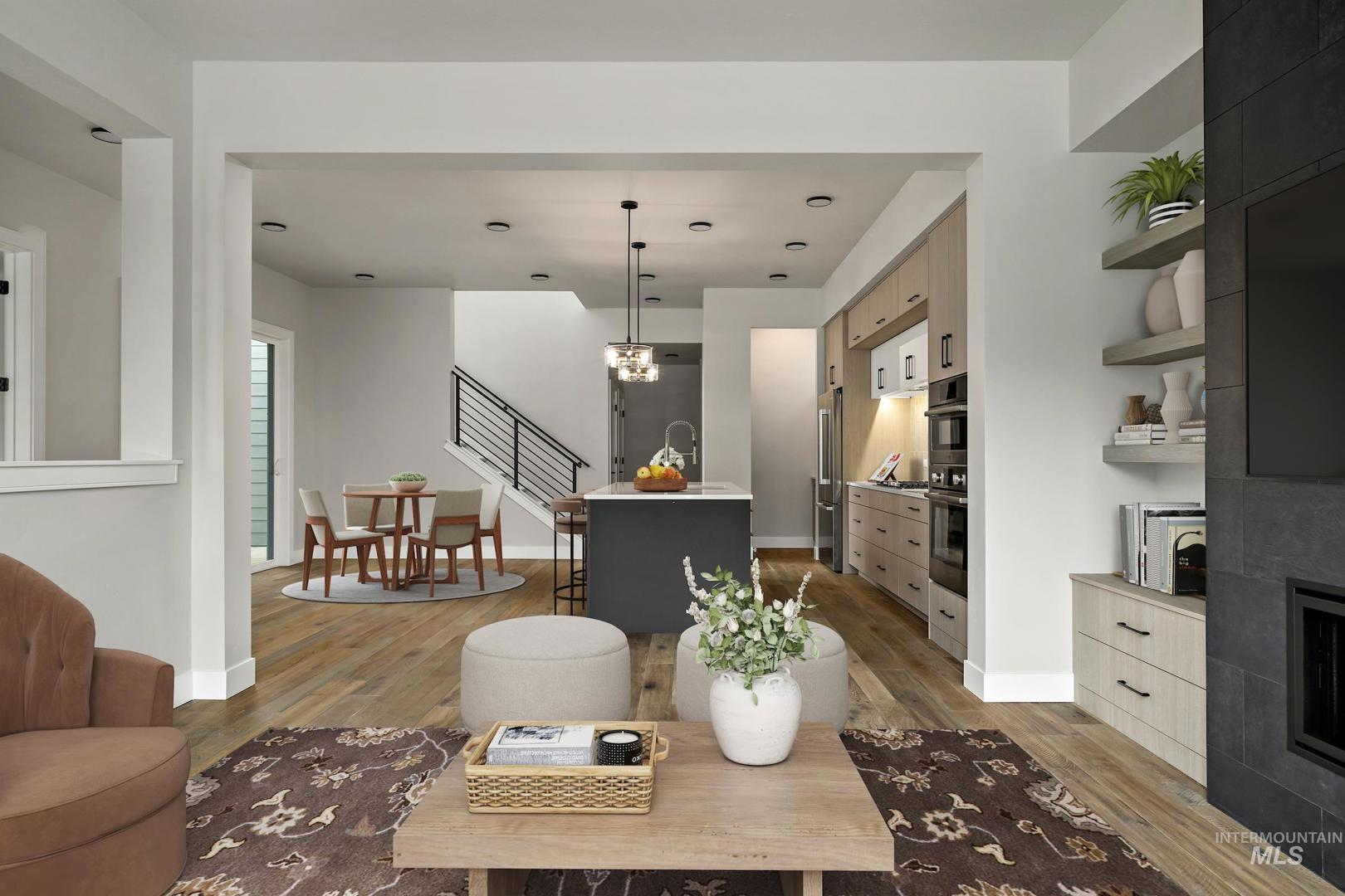 Welcome to The Sunset Blvd by Brighton - a stunning, move-in-ready home that blends modern design with comfortable living. Located in a sought-after Cartwright Ranch community, this home is perfect for those who enjoy seamless indoor and outdoor living. The open-concept main floor features a spacious kitchen, dining, and family room with floor-to-ceiling tiled fireplace and custom shelving. Large windows flood the space with natural light, creating a bright, inviting space ideal for both entertaining and relaxation. Upstairs, a loft leads to an outdoor terrace with a built-in beverage center, perfect for unwinding or hosting guests. The luxurious primary suite is tucked away and offers a spa-inspired bath and generous walk-in closet. Two patios and a charming front porch provide plenty of outdoor living space. With smart storage solutions and thoughtful design throughout, this home offers a perfect blend of style, functionality, and convenience. Whether you`re enjoying the indoor spaces or the inviting outdoor areas, this home is ready to complement your lifestyle. Enjoy access to a high-amenity lifestyle with hiking and walking paths, parks, pool, clubhouse, gym, and Hidden Springs Elementary. Just minutes to downtown Boise, mountain biking trails, shopping, and dining at Hidden Springs Town Square. Perfect low maintenance living for the ultimate active lifestyle!