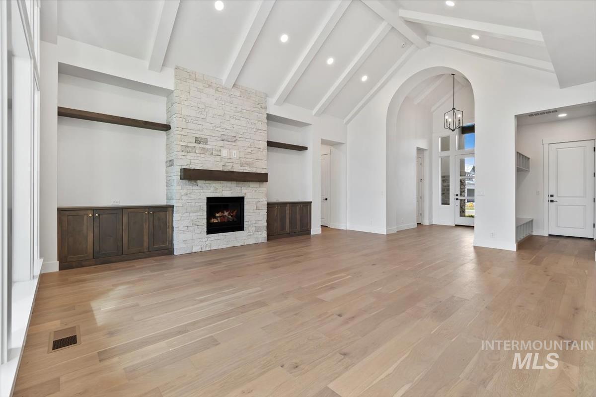 Experience Tresidio Homes’ newest luxury design — The Bandon, your personal golf course sanctuary in the prestigious Valor community. As you step through the arched barrel entry, your eye is drawn immediately to the dramatic reverse-vaulted ceiling that flows from the foyer through the great room, showcasing expansive golf course views and an abundance of natural light. The Great Room features a floor-to-ceiling stone fireplace flanked by custom built-ins, creating a warm and inviting focal point. The gourmet kitchen showcases KitchenAid appliances, a 36” gas rangetop, built-in column refrigerator and freezer, Sensa Dakar quartzite counters, a butler’s pantry, and custom Greywood cabinetry. Retreat to the primary suite with a spa-inspired bath featuring Lagos Sand tile, a freestanding tub, and a walk-in shower. A versatile bonus room offers the flexibility to create the space you need — home office, media retreat, or playroom. Designer lighting, hardwood floors, and black exterior windows complete this Valor masterpiece. Call to schedule your showing!