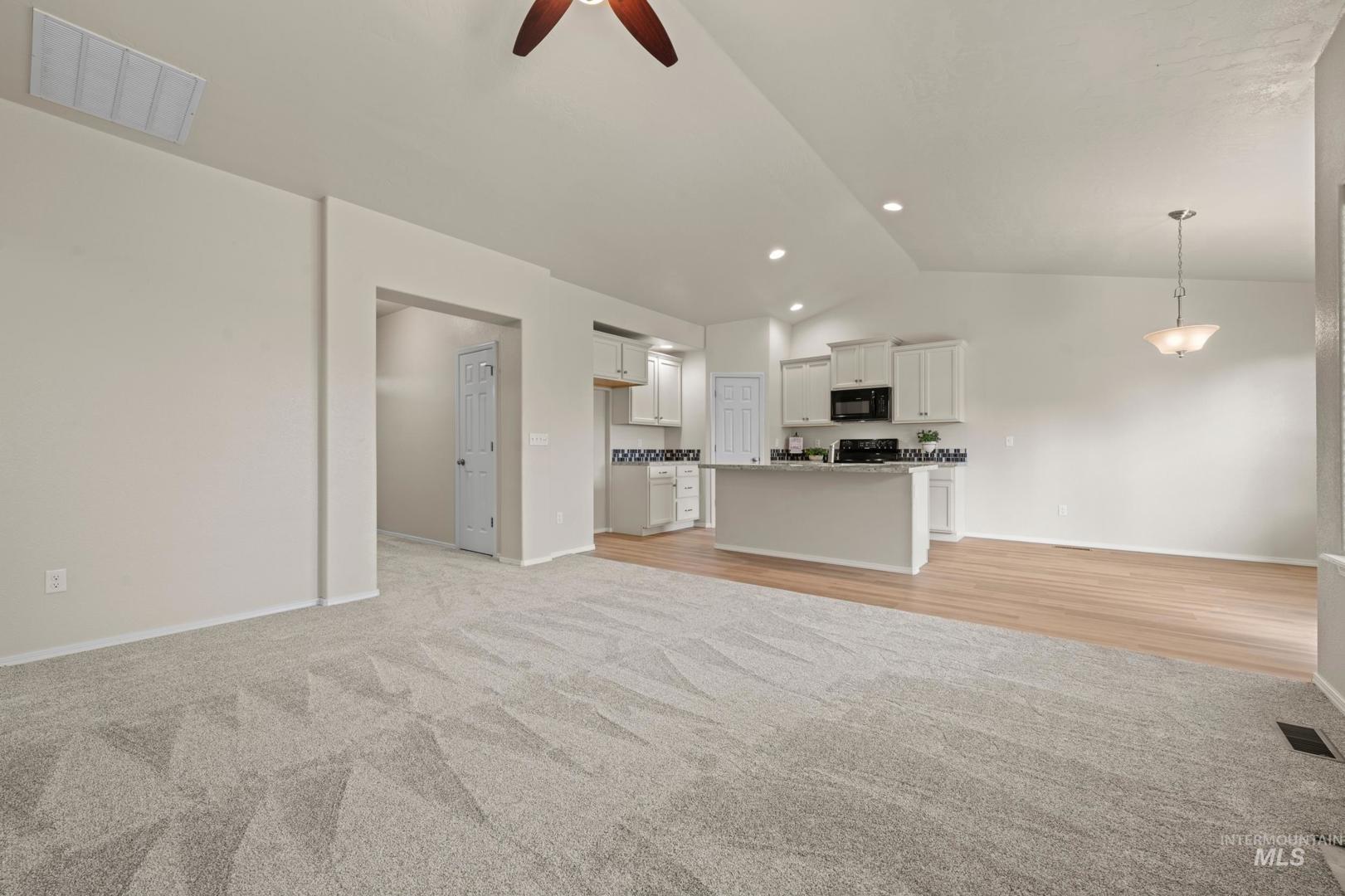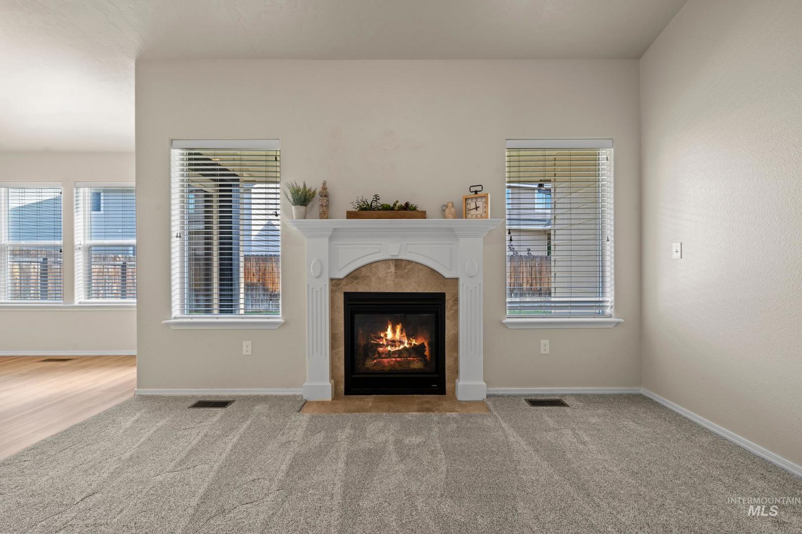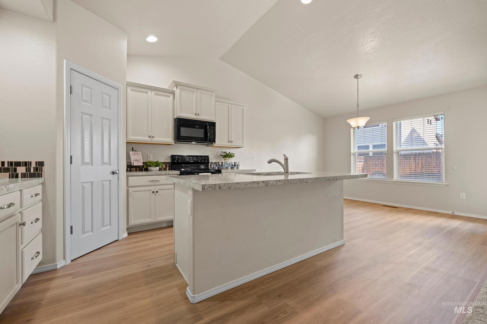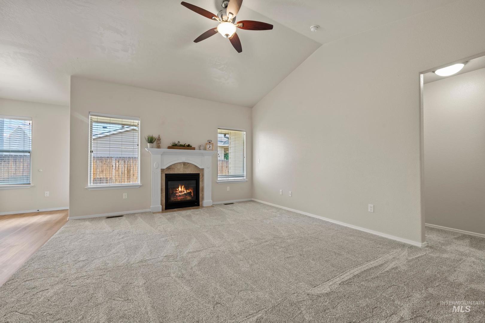 This delightful single-level split design home is even better than new! It boasts fresh carpet and laminate wood flooring in the kitchen, entryway, landscaping, water softener and blinds. Enter this charming residence through a spacious entryway that leads to a large living room with a vaulted ceiling and a cozy gas fireplace. The open kitchen features a pantry and an island, perfect for cooking and entertaining. The private master suite includes dual vanities and a walk-in closet. The laundry room is equipped with a sink and a hanging rod for convenience. Situated in a convenient location, this home is close to all the new amenities that Ten Mile has to offer. Come and explore this lovely home today! It features brand new carpet and kitchen/dining room flooring that has just been installed, along with a newer water heater!
