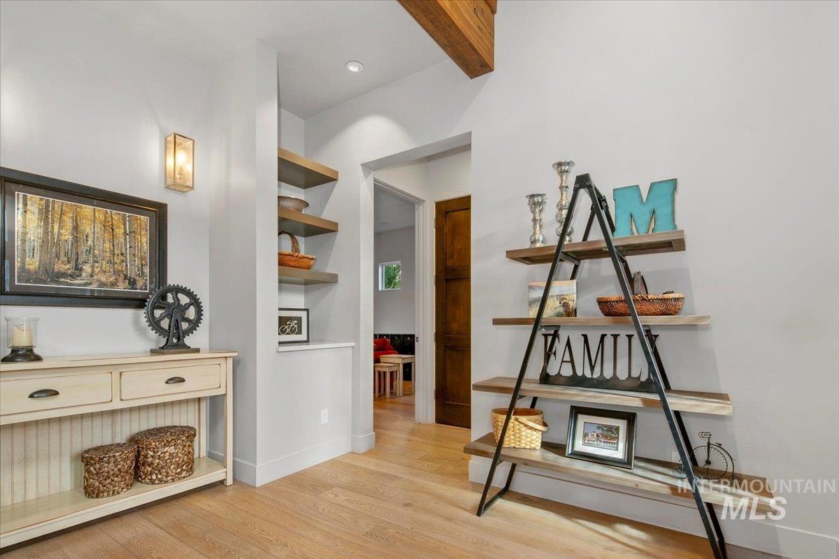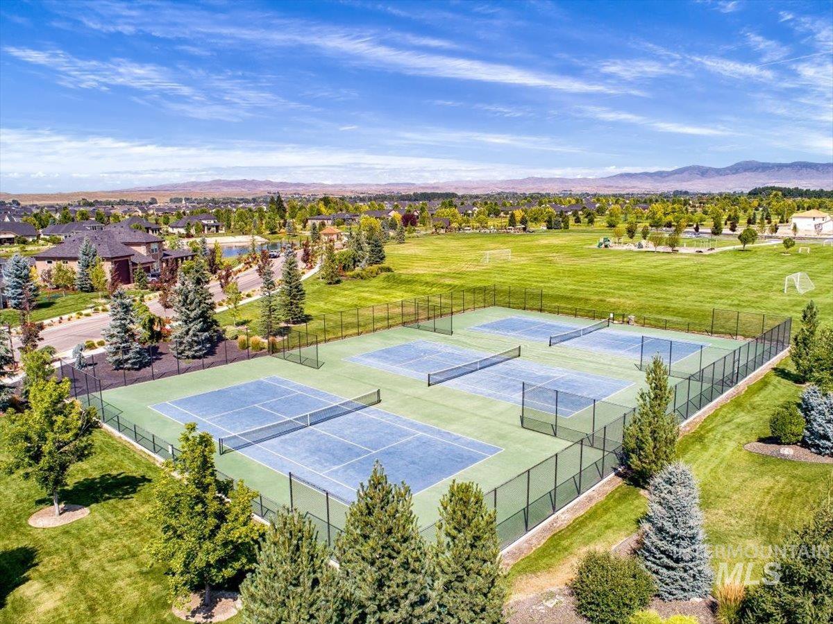 This former award-winning Eagle Parade Home is a true showpiece—crafted with striking design elements & thoughtful details throughout. Step inside to find an open, light-filled floor plan anchored by a stunning kitchen featuring Thermador appliances, a built-in refrigerator, reverse osmosis system, instant hot water, a huge island with quartz counters, & a spacious walk-in pantry. An office just off the kitchen offers a quiet workspace, while the inviting bonus room—with its cozy fireplace, bar, & drink fridge—sets the stage for effortless entertaining. The outdoor living space on this large nearly half-acre private lot is equally impressive, with a wood-burning fireplace that makes gatherings memorable year-round. Hot tub pad is ready to go! Retreat to the luxurious primary suite, where a spa-like bathroom with steam shower create a private sanctuary. Don’t miss the climbing wall leading up to a fun loft space—perfect for hanging out, watching TV, or curling up with a good book. With an 1,800 sq ft garage (including an RV bay), storage is abundant. This home combines innovative design with everyday functionality & and is an absolute must-see! Legacy is a premier Eagle neighborhood offering a 3-hole golf course, tennis courts, swimming pools, ponds, and meticulously maintained grounds. Truly one of a kind—this is a home that inspires at every turn.
