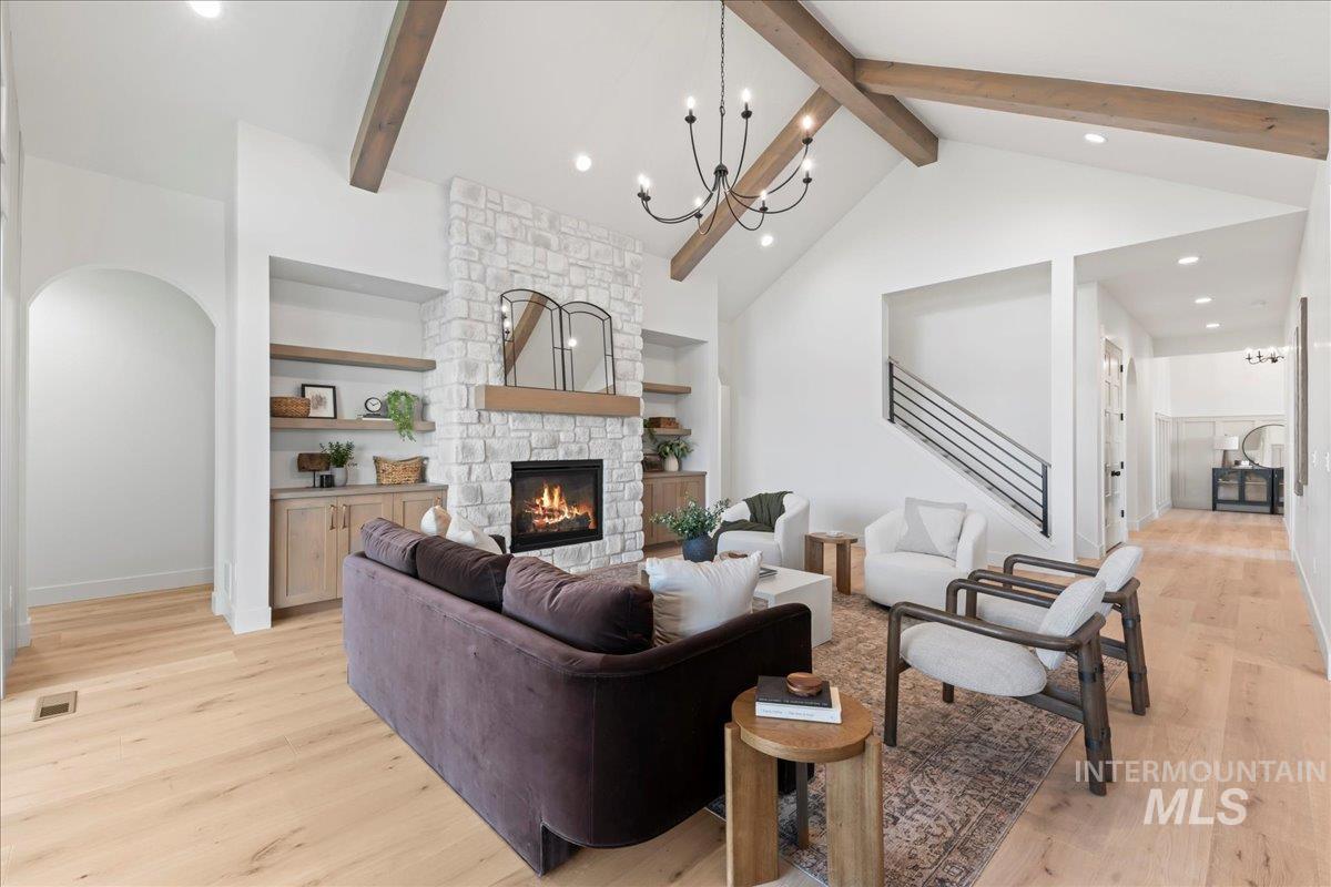 Welcome to The Lisbeth by Elevated Custom Homes, a stunning new floor plan blending modern functionality with timeless elegance. This 4-bedroom, 4.5-bath home includes a tandem 4-car garage. Nestled on an expansive .81-acre, fully fenced, cul de sac in Nampa`s desirable new community, Osprey Estates. Soaring vaulted ceilings, rich LVP floors, and a seamless flow between the great room, dining, and covered patio create the perfect space for entertaining. The gourmet kitchen is a showstopper, featuring a large island, premium appliances, and a butler’s pantry with for extra prep space. The primary suite offers a spa-like retreat with a soaker tub, tile walk-in shower, and a dream closet connected to the laundry room. Each additional bedroom has a walk-in closet, and the 4th suite provides private guest quarters. Upstairs, a spacious bonus room with full bath adds flexible living space. Elegant finishes, custom millwork, and designer touches elevate this home beyond compare. Experience luxury living redefined. **INCENTIVE AVAILABLE TOWARD RATE BUYDOWN OR CLOSING COSTS PLUS $5K BUILDER DONATION TO HELP FIGHT CANCER WITH THE SALE OF THIS HOME** Ask us for details.