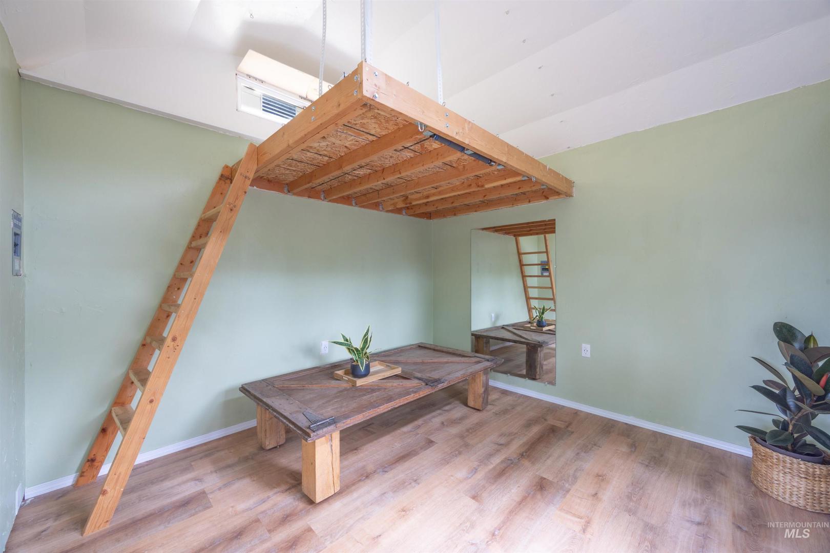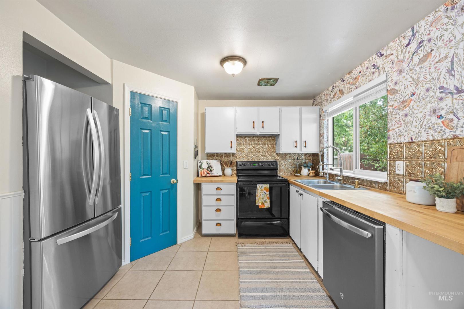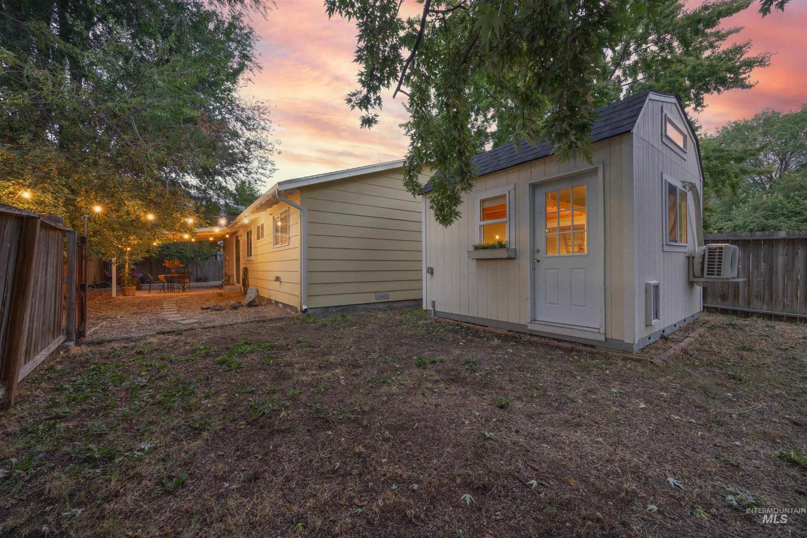 Incredible Value! Set on a lush corner lot in a prime North West Boise location, this 4-bedroom home combines charm, modern updates, and endless versatility. Inside, you’ll find an inviting kitchen with warm butcher block counters and stainless upgraded appliances-- along with a spacious tiled bathroom including dual vanities. With ample room to add a second bathroom, there’s potential to expand and customize as you grow. The oversized 4th bedroom opens with double doors and could also serve as a second living area. A newer HVAC system and updated main water line bring peace of mind, and the included washer and dryer make moving in effortless. Beyond the main home, the property offers unique spaces that set it apart: a finished, heated and cooled shed with a built in loft bed—perfect as a private studio, office, or gym—plus a storage shed and extensive RV parking. The low maintenance xeriscaped front yard, ample shade trees, and a covered back patio make great use of the expansive lot. The location is equally special—enjoy tree-lined streets, easy access to foothills trails and the greenbelt and all the dining, shops, and energy of downtown just minutes away. This is more than a house; it’s a North Boise lifestyle, with character, flexibility, and comfort wrapped into one.