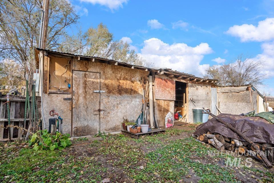 This spacious 5-acre Emmett parcel offers breathtaking views and abundant outdoor space. Great opportunity to create your own country oasis! Property features fenced pasture space, several fruit trees, berry patches, a walnut tree, ample gardening space, & a chicken coop. Mature trees line the property and provide not only great shade but also privacy. Three outbuildings, including one with power. RV hook ups. Property comes with additional power pole. Property includes a 3 bed 2 bath manufactured home on a foundation. Freshly painted exterior. Home being sold as is. Keep the home as an ADU and build your dream home or tear down. Home includes wood burning stove that keeps the place nice and warm in the winter months. New carpet in the Master bedroom and living room. Water shares included. Lots of possibilities!