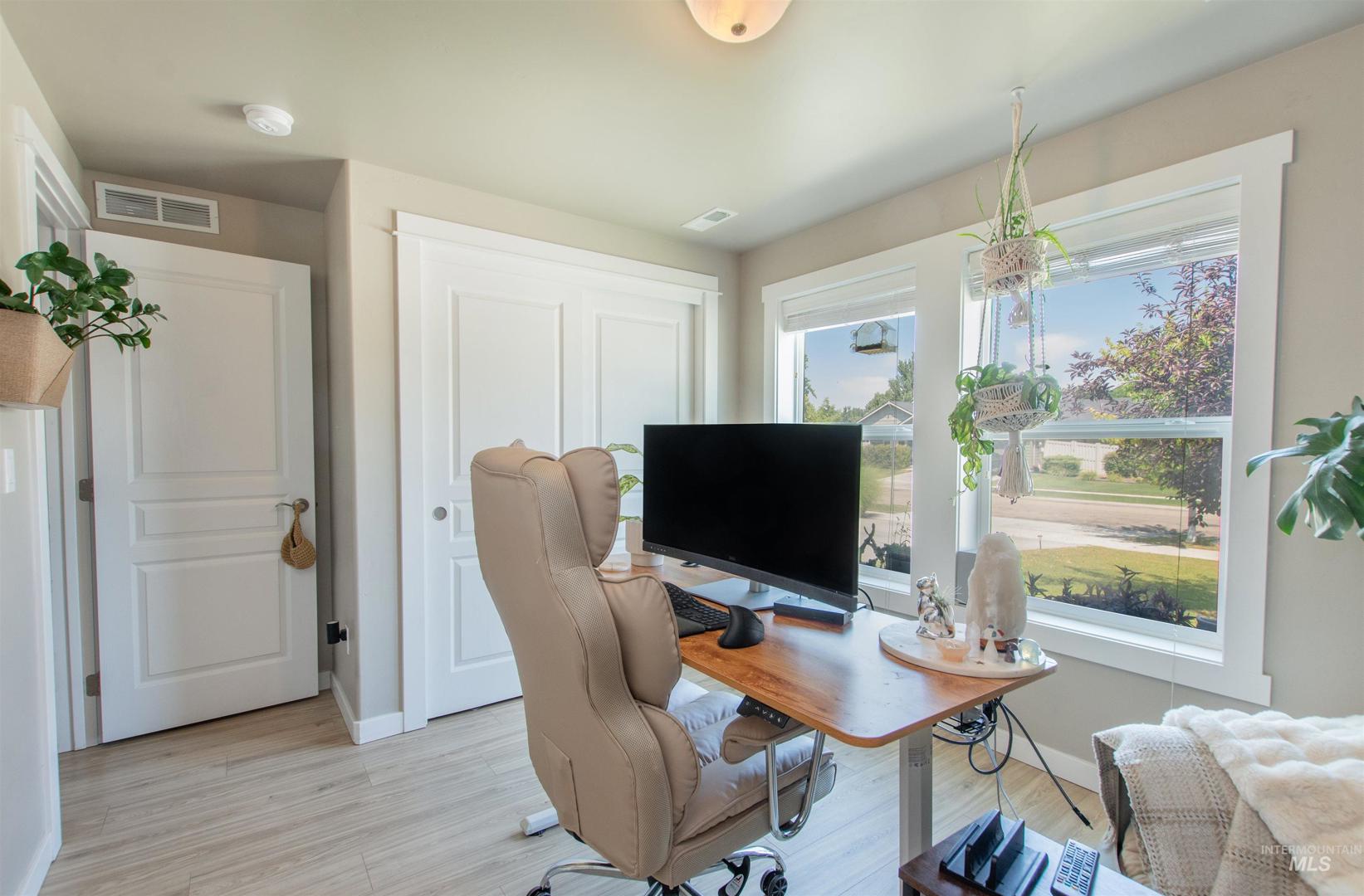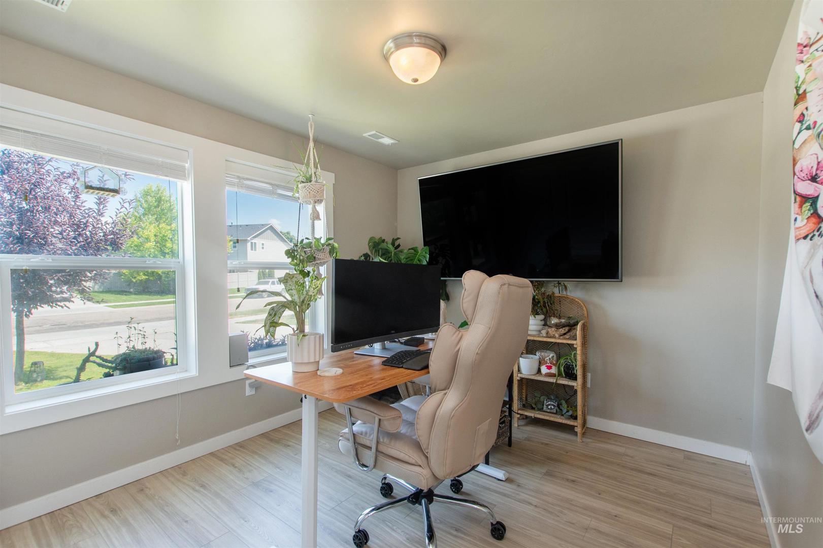Priced to sell!!! Well-Maintained & Move-In Ready! This beautifully designed home offers a bright, open feel with vaulted ceilings and a modern open-concept layout, enhanced by durable LVP flooring throughout. The spacious great room with a cozy fireplace flows effortlessly into the stylish kitchen, featuring crisp white cabinetry, gleaming quartz countertops, and stainless steel appliances. The primary suite serves as a relaxing retreat, complete with dual vanities and ample closet space. Step outside to a large, fully fenced backyard—perfect for entertaining or unwinding. Nestled in a welcoming neighborhood with easy access to shopping, dining, and the interstate, this home has it all!