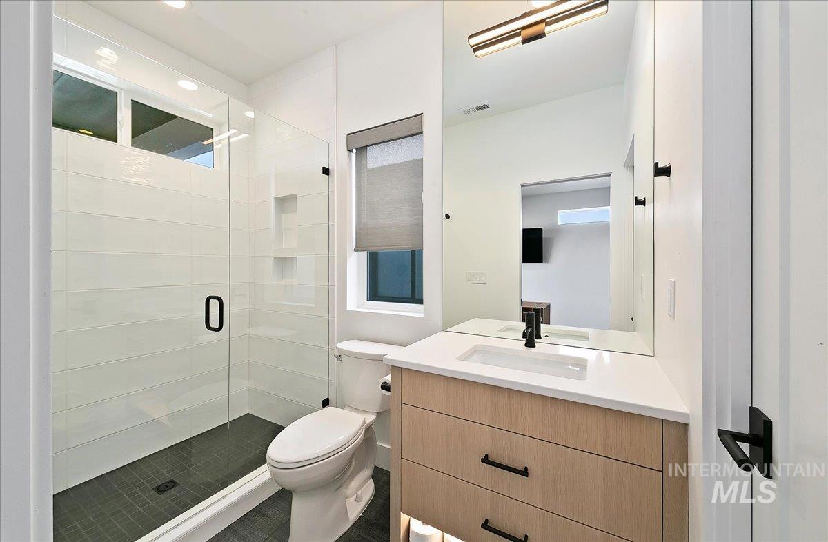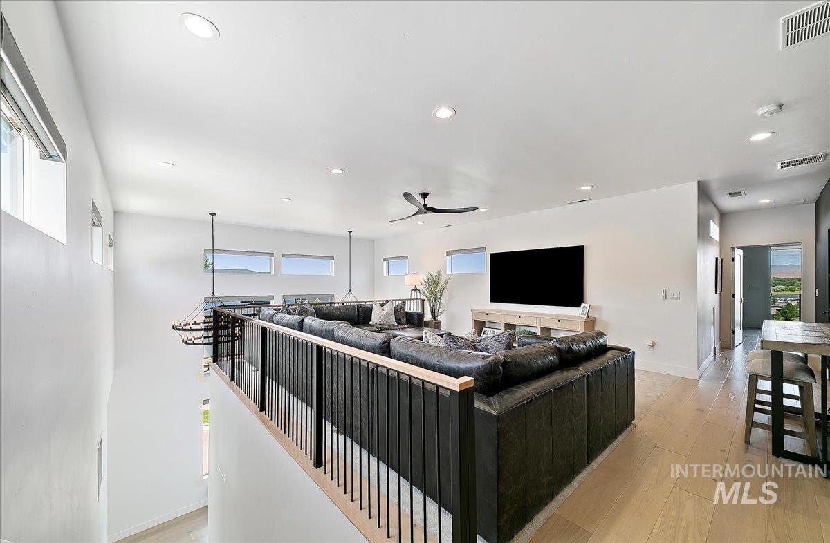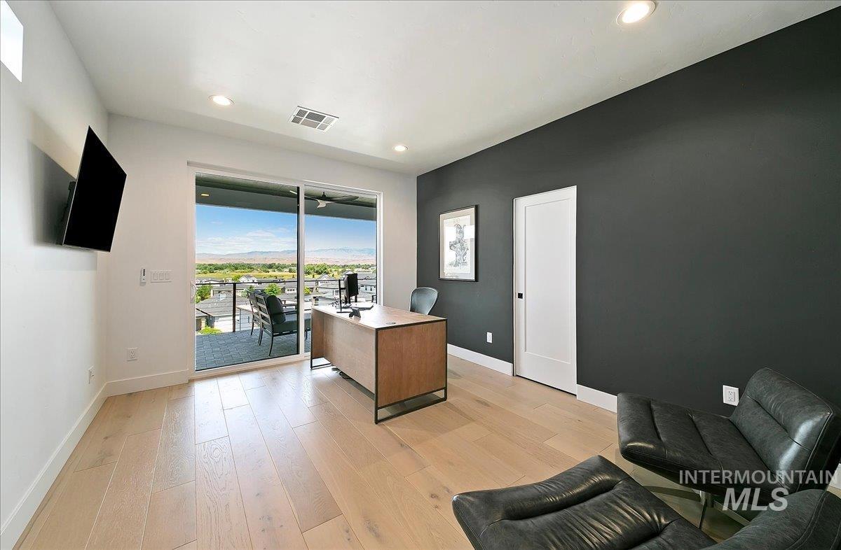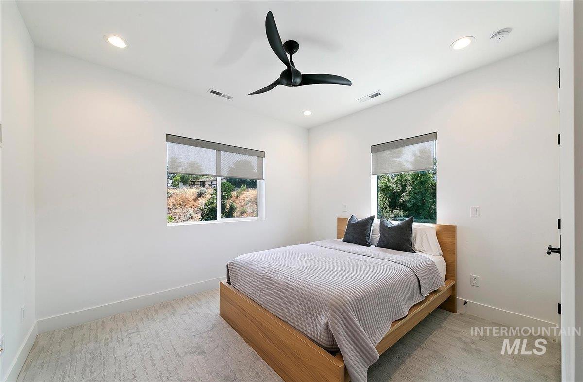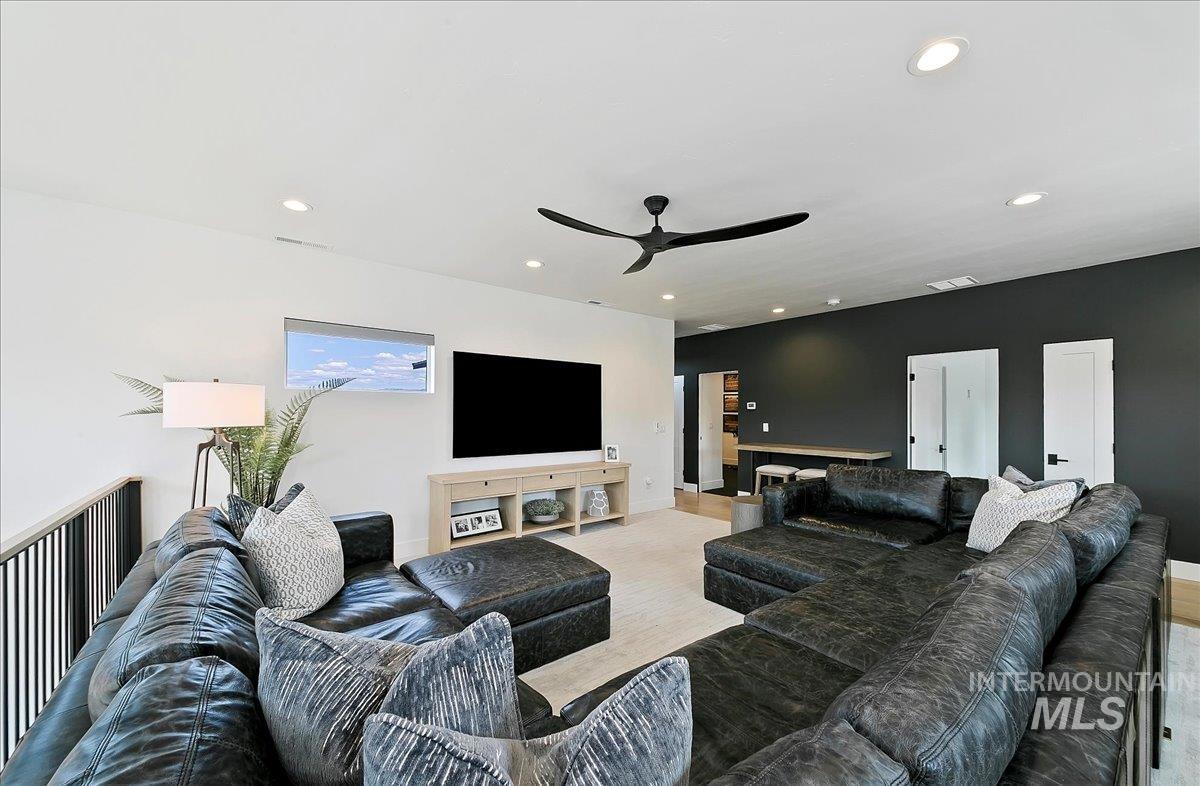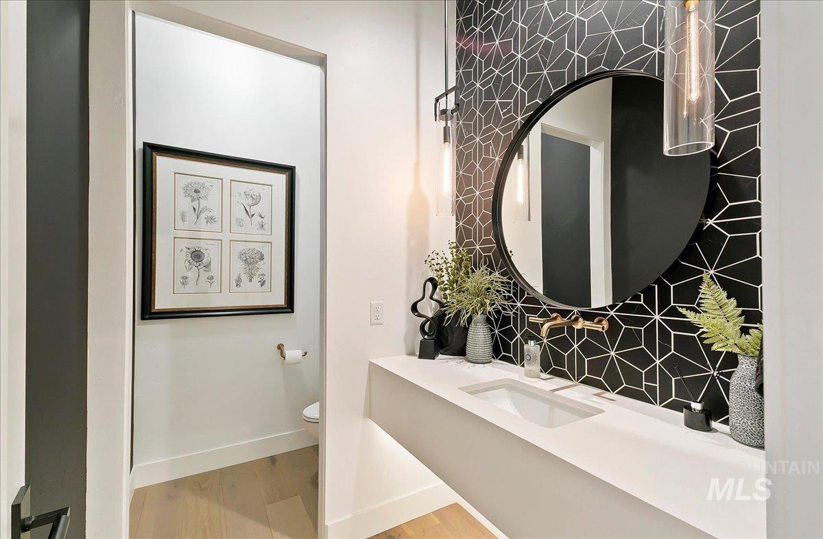Experience elevated living in this striking modern masterpiece, ideally located in the prestigious gated community of Lakemoor. Built for entertaining and a lock and leave lifestyle, every inch of this home has been meticulously curated with high-end finishes and statement design. Soaring ceilings and expansive floor-to-ceiling windows flood the home with natural light while framing panoramic views of Eagle and the Boise Foothills. The gourmet kitchen is a showstopper -- featuring rift sawn white oak custom cabinetry, sleek quartz countertops, two expansive islands, premium appliance package and coffee bar w/ beverage & wine refrigerator. Additional features include wide-plank white oak hardwood flooring, Restoration Hardware lighting, automated window treatments, epoxy garage floors and cabinets and Timber Tech decking. Lakemoor residents enjoy resort-style amenities including pools, sports courts, walking trails and greenbelt access—all just minutes from Downtown Eagle, restaurants & entertainment.