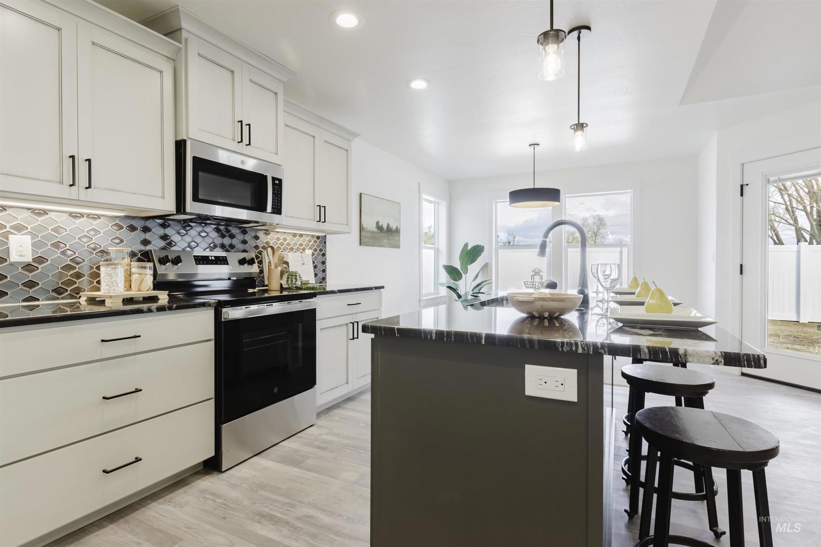This newly completed build delivers a moody, modern exterior with full stucco, rock accents, and clean lines. Built to last, it offers 3 bedrooms, 2 baths, and a spacious 3-car garage. Inside, enjoy carpeted bedrooms, LVP living areas, Arabian night granite countertops, custom cabinets, upgraded lighting, upgraded back splash and high-quality trim work. With thoughtful details throughout, this is a home you will be proud to call your own. Front Landscape Included, Full Fence, Backyard Sprinklers/Fence/Gravel included.