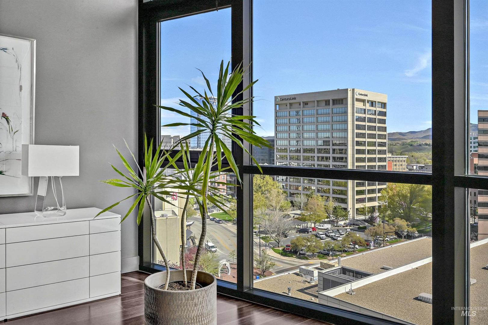 Fall in love with the captivating views from this one-of-a-kind contemporary condo set right in the heart of downtown Boise. With walls of glass showcasing the city skyline and 10’ ceilings, this luxury condo will take your breath away. Modern lines and custom high-end finishes are evident throughout. Every finish has been meticulously selected with quality, style, and comfort in mind. No detail has been overlooked, ensuring a luxurious living experience. The 2nd bedroom is a perfect office with a ¾ bath adjacent. Unwind on the covered balcony, a peaceful get-a-way to enjoy your morning coffee or an evening glass of wine. This condo is perched in the heart of Boise’s hustle and bustle where you are mere steps to everything downtown Boise has to offer: restaurants, bars, shopping, theater, cultural and sporting events. In addition, the Boise River and Greenbelt, BSU, museums, hospital and beautiful parks are just blocks away. Live the ultimate, lock and leave urban lifestyle!