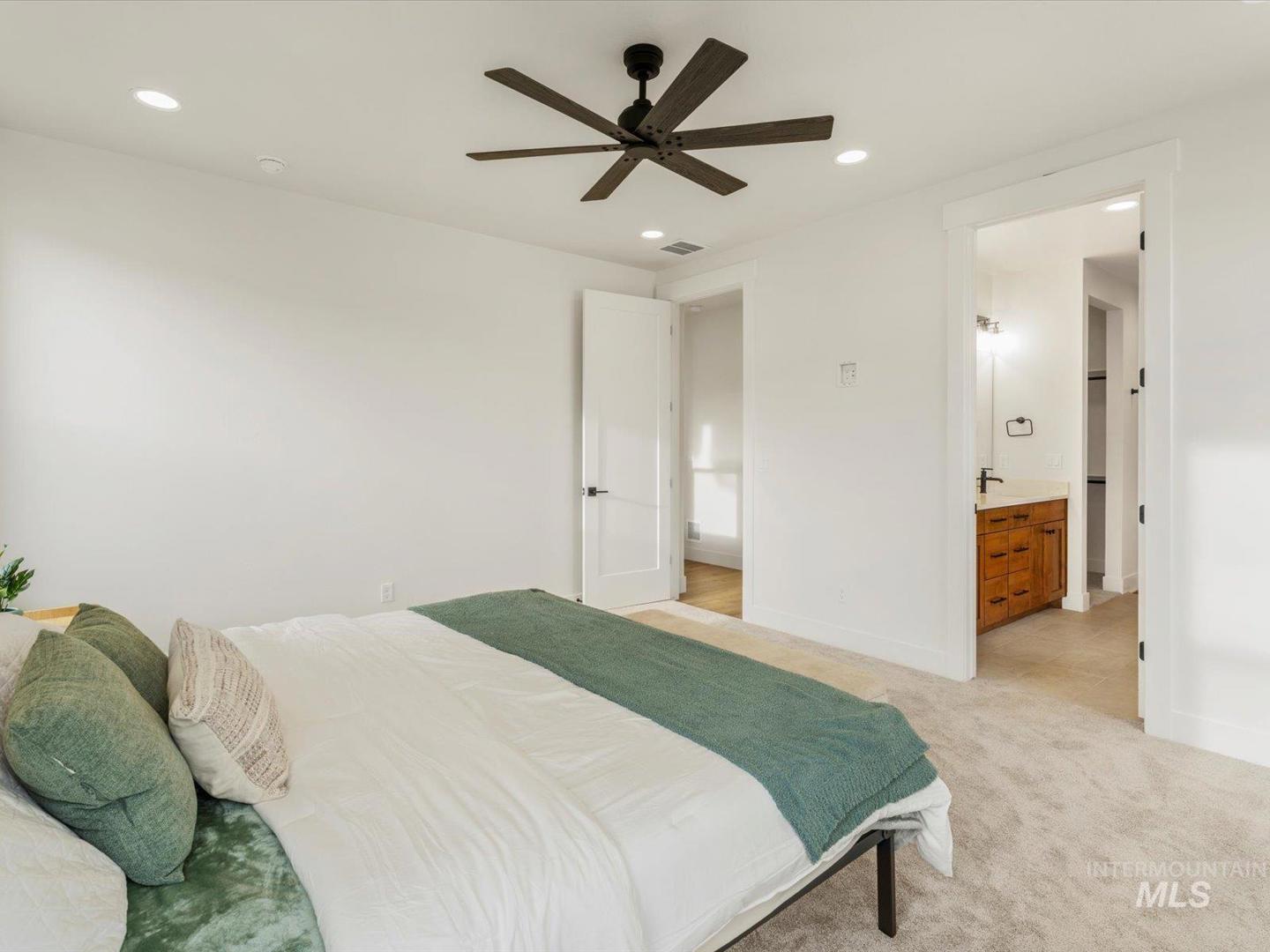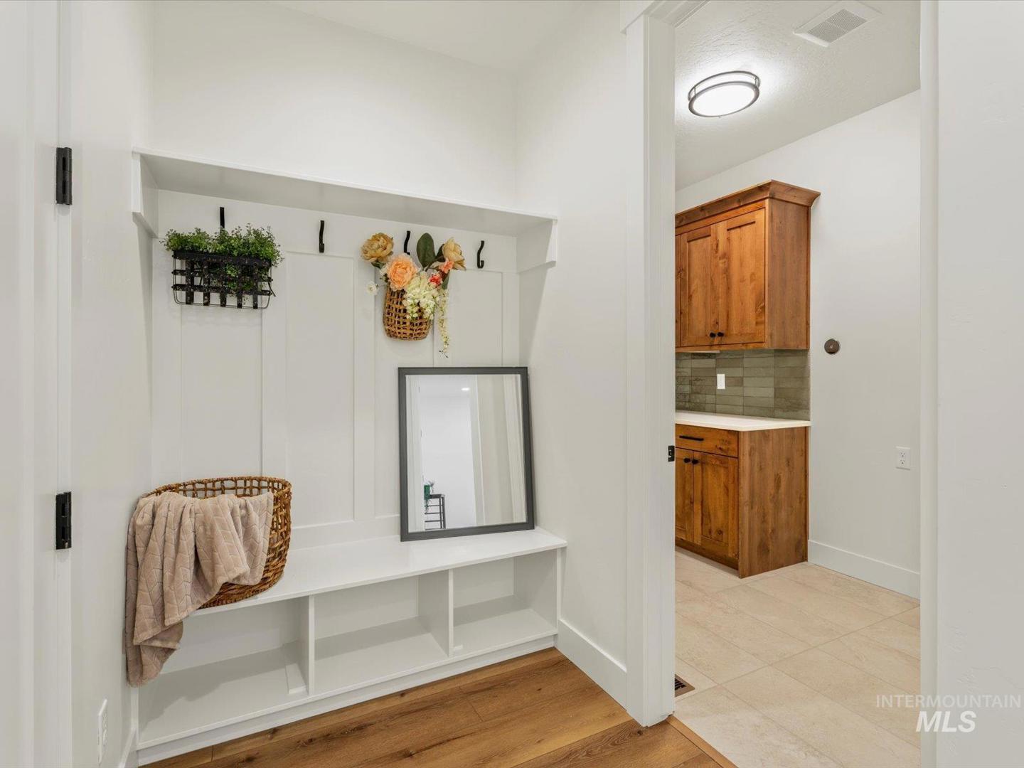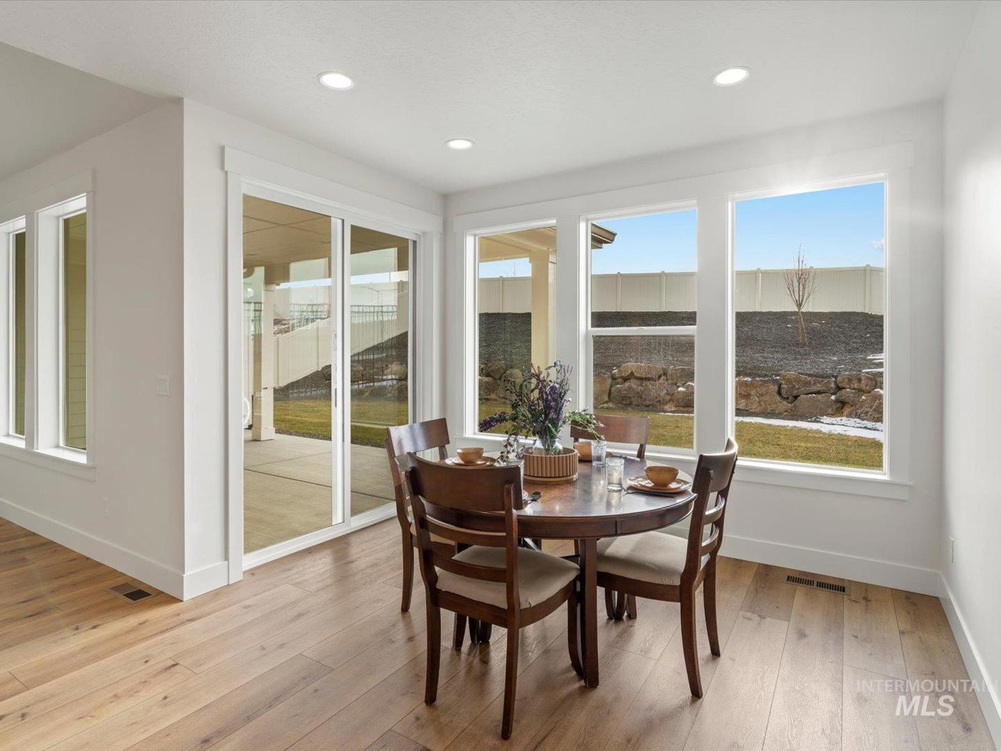 The stunning single-level "Hawthorn" floor plan by KJ Custom Builders, located in The Ridges within the new Mayfield Springs planned community. This home sits on a .21-acre corner lot with beautiful mountain views and borders a peaceful community walking path. Offering 2,164 sq ft, the layout includes 3 bedrooms, 2.5 baths, a true dedicated office, and a spacious 3-car garage. Interior features include 9` ceilings throughout, 8` doors, and a vaulted great room centered around a stylish fireplace insert. The open-concept living, kitchen, and dining areas create an ideal setting for gatherings and everyday living. The upgraded 400-amp electrical service offers enhanced capacity for reliable whole-home power, specialty equipment, and modern energy needs. A well-designed blend of function, comfort, and quality in one of the Treasure Valley’s most exciting new communities.