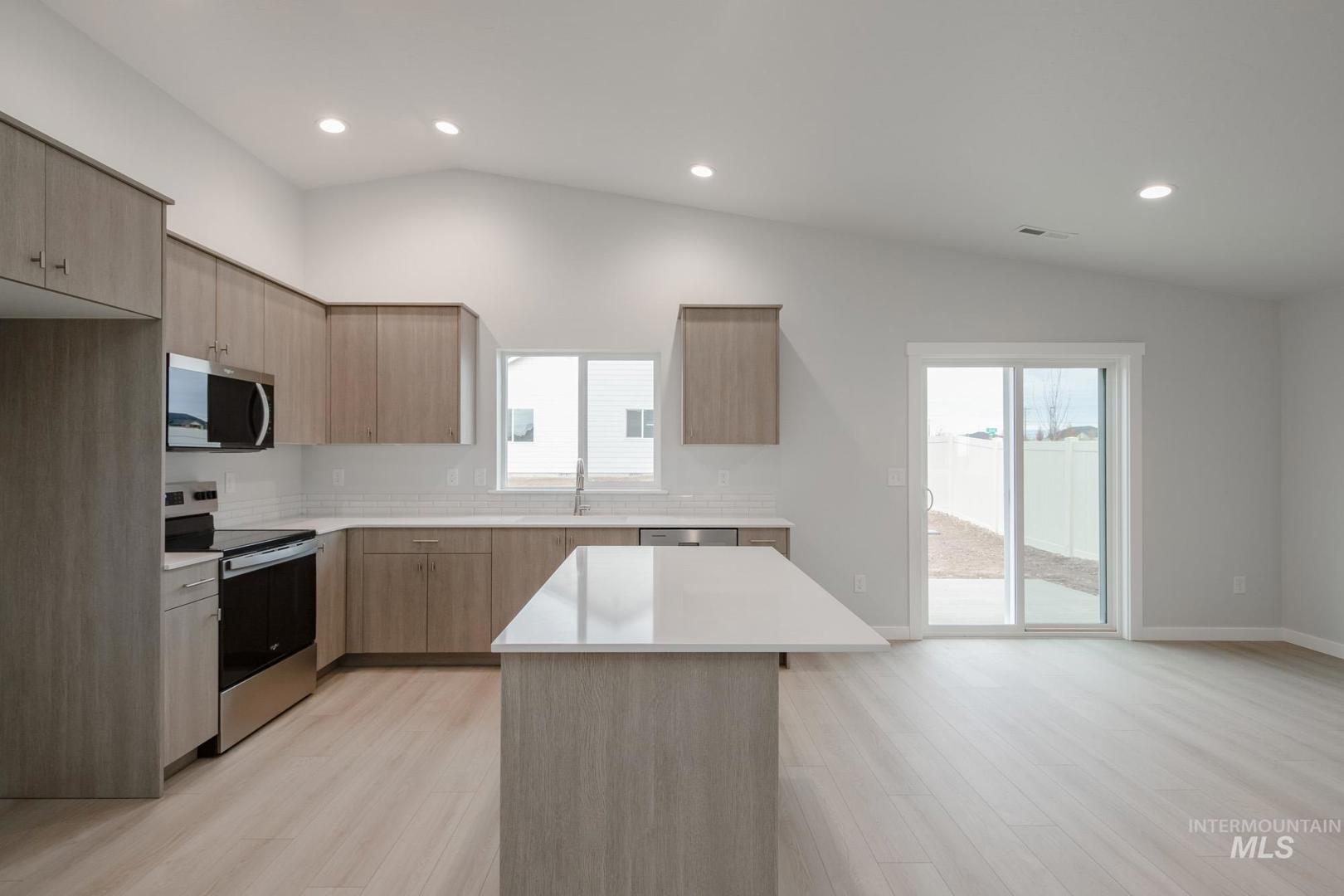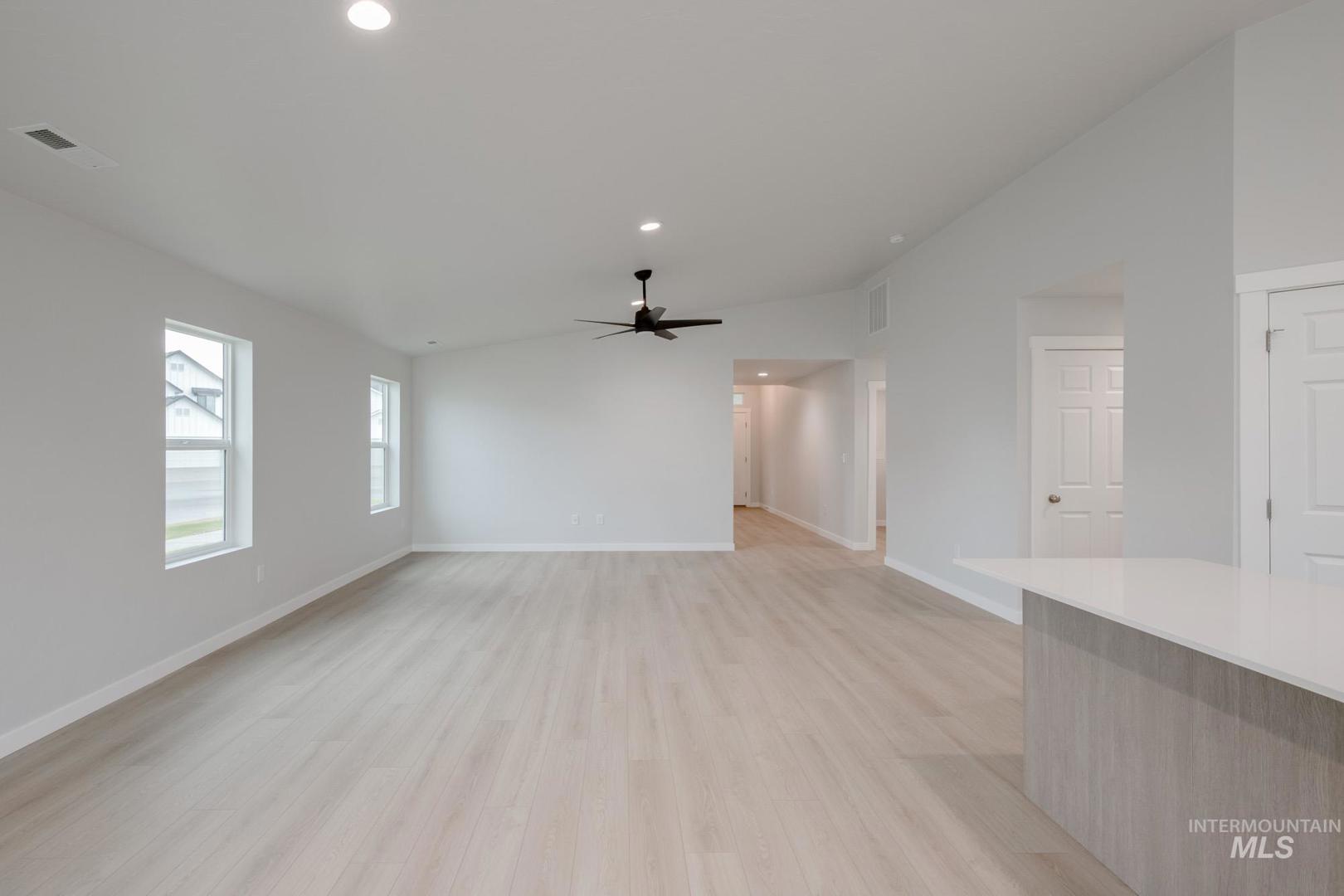 Be Mine at 3.99% – promotional rate available! Ask a Sales Specialist for details. This new home located in beautiful Nampa, Idaho has all the comforts you need & more! The Willow 1860`s single level space is smartly laid out, boasting two bedrooms situated at the front of the home. To entertain or for personal relaxation, escape into the spacious vaulted great room and dining room that open onto a back patio. Natural light cascades through the windows, adding an illuminated touch to the vaulted ceiling. The kitchen comes with stainless steel appliances and stylish solid surface countertops, adding both functionality and aesthetics to the kitchen. Retreat to the primary suite for restful nights, complete with a roomy en suite bathroom, dual vanities, a stand-up shower, and a walk-in closet. With its open design and ample storage, the Willow 1860 offers everything you need in a beautiful, functional space. Photos are of the actual home!