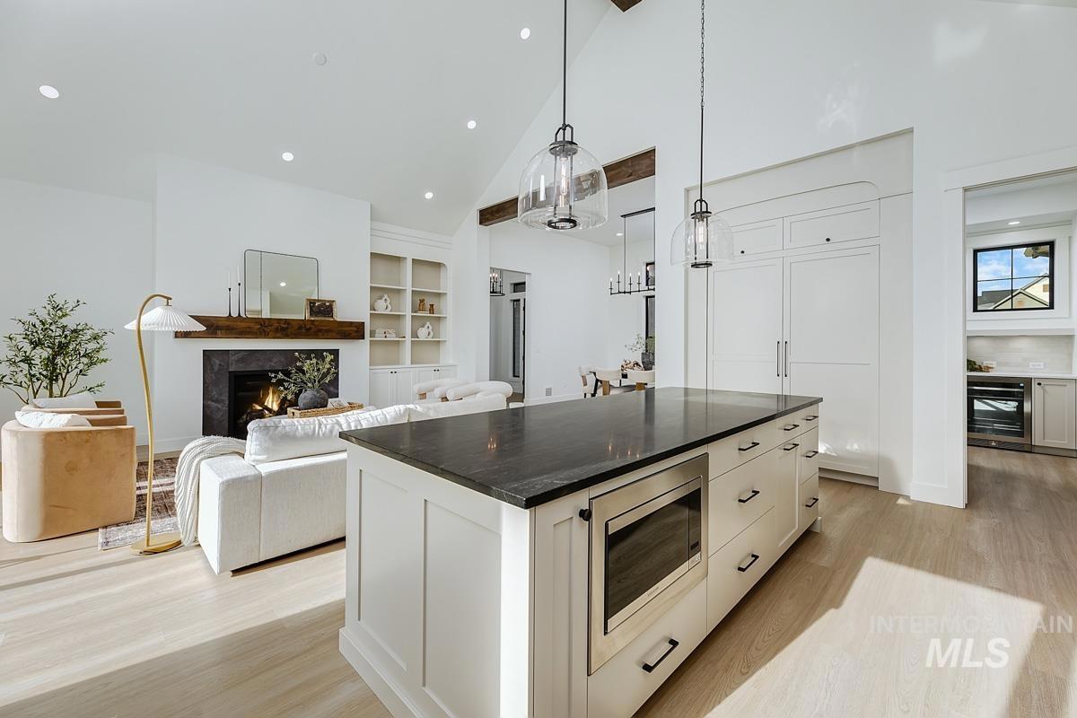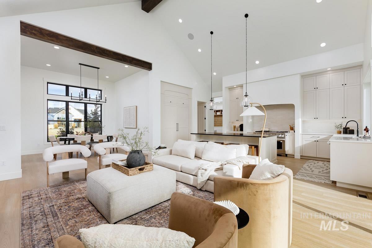 Beautiful modern farmhouse by Mendiola Custom Homes. The finest of materials and design have been used in this lovely single level home. Custom, well-placed lighting. Beamed, high ceilings. Double refrigerator/freezer in Kitchen. Large industrial size double oven/range. Designer fireplace surrounded with custom built-ins. Lots of natural light. Custom cabinetry throughout. Spa like Master bathroom retreat with double sinks and shower heads. 4-car garage includes an RV bay and a boat bay! Located between Star, Middleton, in Middleton`s up-scale subdivision, Cascade Hills all on just under an acre.