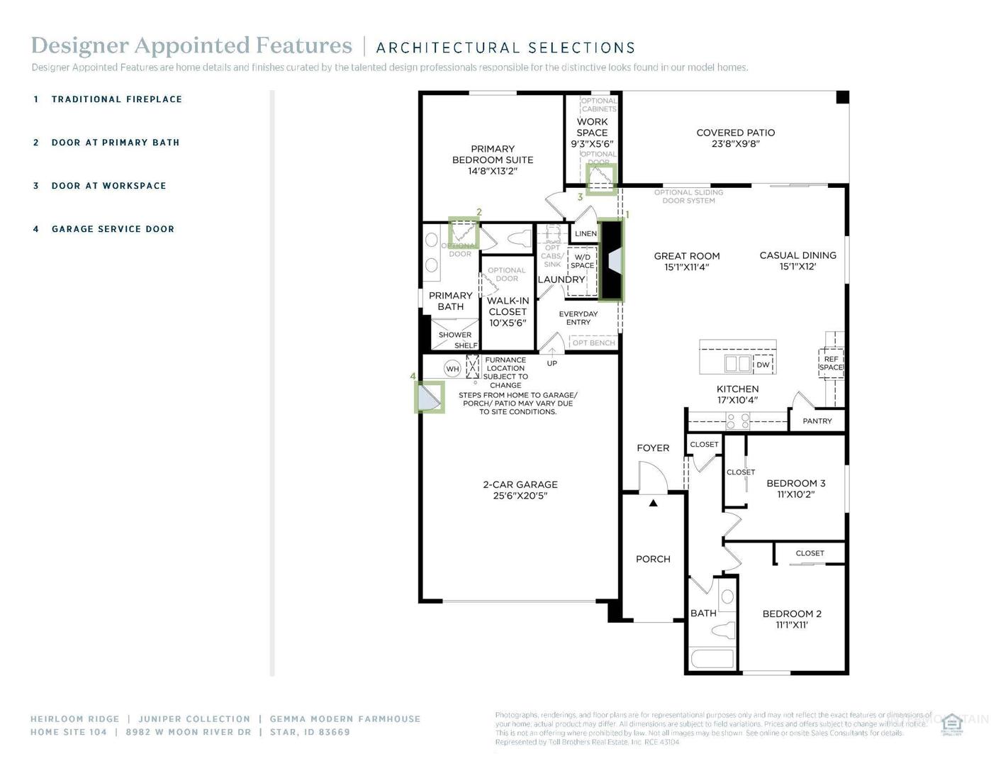 Discover the exquisite Gemma home design, offering a perfect blend of luxury and functionality. This single-family residence boasts an open floor plan that creates a seamless flow throughout. As soon as guests enter through the welcoming foyer, they are greeted by the spacious great room with cozy fireplace. Entertaining is made easy with the adjacent casual dining area that opens up to a covered patio, ideal for indoor-outdoor living. As well as a well-appointed kitchen. Retreat to the private primary suite, complete with a luxurious shower in the primary bath and a separate private water closet. Two additional bedrooms provide ample space for family or guests, while the laundry room and work space add practicality to everyday life. Front and rear landscape is included. Home is under construction and photos are similar. BTVAI