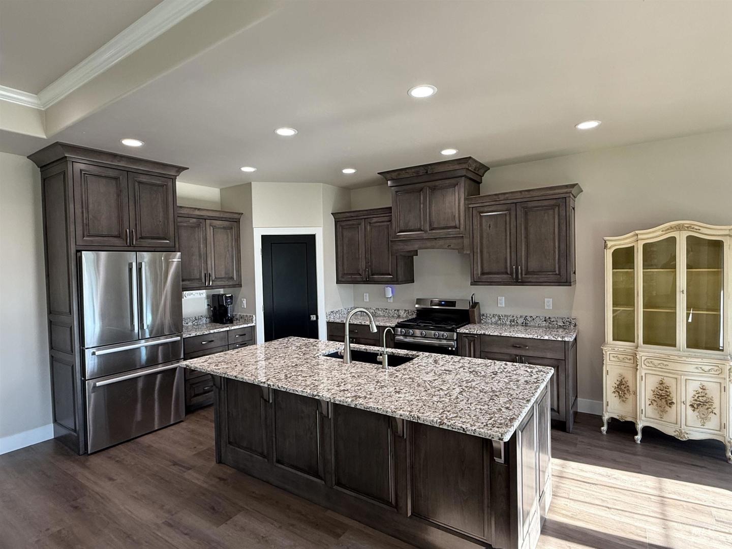 In the prestigious, Mary Alice Lake at the preserve subdivision, built by James Ray construction close to the Canyon rim Trail, the stunning home has all the upgrades! Maintenance free landscape In the front yard, party lighting outlets, HOA required fencing already installed, boat or RV Bay garage with 15 foot ceiling, 14 x 10 Garage Door, 991 ft.², 2-220 Outlets, smart, remote, openers, storage in the ceiling and completely finished. Walk into wide open, living spaces, the biggest granite kitchen island you’ve ever seen equipped with sliding out drawers and spice rack among all the cabinets, a reverse osmosis, filtration system, Bosch appliances, pantry shelves that go all the way up. Huge picture windows, 9 foot tray ceiling, a TV mount above an electric fireplace that heats and changes colors, surround sound with the subwoofer included. The master features a trace ceiling with LED lighting and an exquisite bathroom with dual showerheads in the tiled shower, doubled granite, vanities, a vanity chair, a pocket door closes the commode, freestanding tub with an attached showerhead, large walk-in closet with shelves all the way to the top. All bedrooms have fans, there’s a tankless water heater, a mudroom with bench, Ching, shelves and hooks. All protected by security system with four cameras and viewing screen