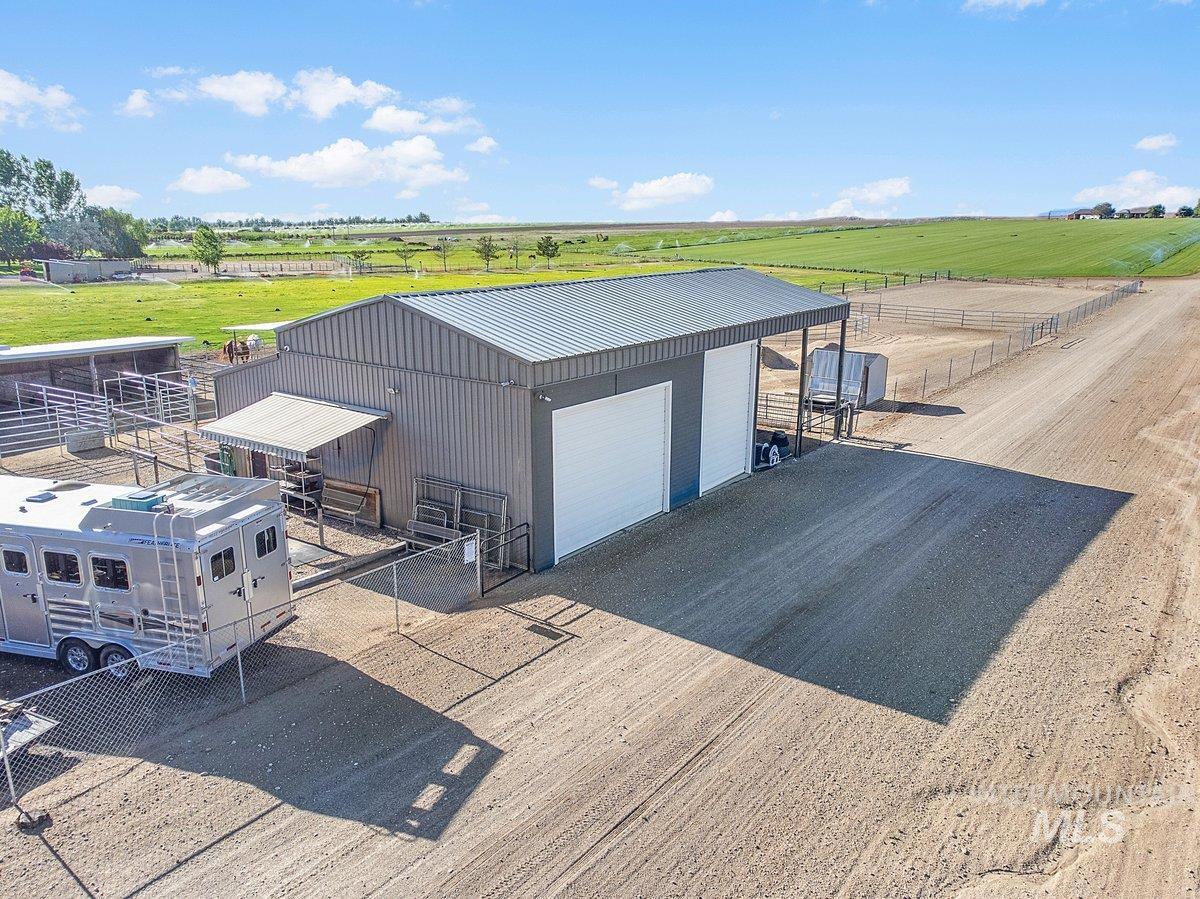 Live in the county with no CC&R`s or HOA. Hobby Farm or exceptional, move-in-ready equestrian property located at 12195 S Hawk Haven Ave in Kuna. Completely rebuilt in 2002, this beautifully updated 4-bedroom, 3-bath home offers 2,835 sq ft of comfortable, modern living. The main-level primary suite provides convenience and privacy, while recent improvements—including newer flooring, interior paint, stove,—create a fresh, inviting atmosphere throughout. Perfect for horse enthusiasts, the property features a 4-stall shedrow barn, Noble brand shelter, a generous 100x200 riding arena, & 4 acres of irrigated pasture. 40x60 shop with 20X40 of that covered hay storage area, provides ample space for equipment, vehicles, or workshop needs. This rare offering combines quality craftsmanship, thoughtful updates, & premium equestrian amenities—all set in a peaceful, rural Kuna location. New pressure tank installed 5-2025. The 30 acres to the east of the barn is "Castello Sub" which is 5 acre horse properties. Copy of the plat under the "D" tab.