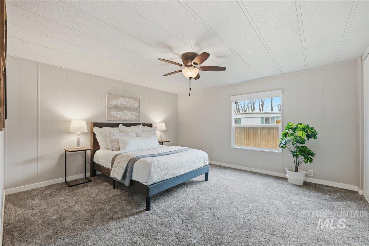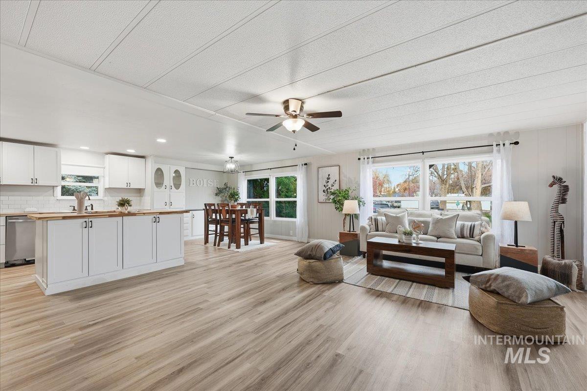 Fantastic opportunity for affordable living in a prime Boise location. This beautifully updated 4 bed, 2 bath home offers over 1600 SF! Walk into a warm and inviting open concept layout featuring an updated kitchen with butcher block counters, stainless steel appliances, and a nice kitchen island ideal for cooking and entertaining. Plenty of room for storage. The home has a newer roof, windows, and brand-new carpet throughout. Spacious layout with modern finishes and great natural lighting. Conveniently located near many shopping places, restaurants, everyday amenities, freeway access, and minutes to downtown Boise. Lot rent is $690 and not on a foundation. Move-in ready and a must-see! Seller is offering credit toward flooring. Lenders are available for this type of home. Buyer and Buyers Agent to verify all.