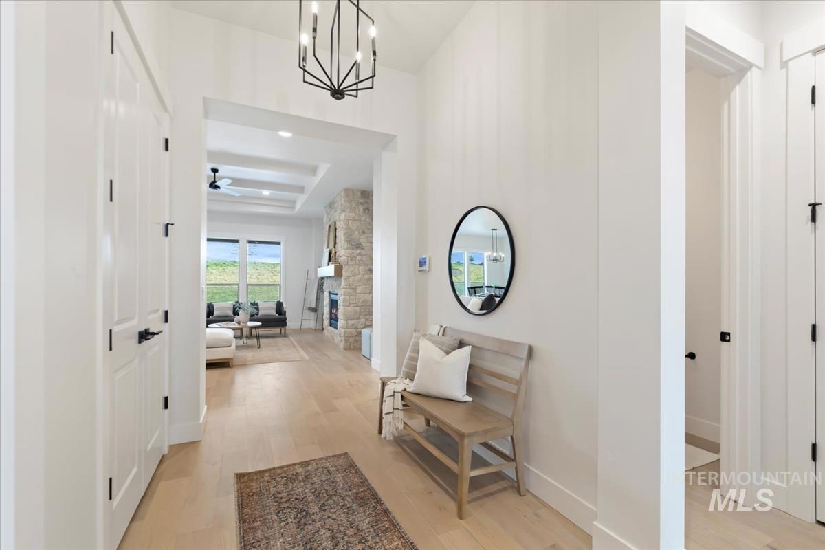 Welcome home to Tresidio`s Riviera Bonus plus 5th bedroom plan! This expansive home features 4 bedrooms downstairs, & a massive bonus, full bath and bedroom upstairs perfect for a media room, pool table, play room, gym - the possibilities are endless! On the main level, you`ll enjoy entertaining in your chef`s kitchen, complete with built in appliances, rich wood cabinetry up to the ceiling, & beautiful marbled quartz countertops. Open to the kitchen, the great room is big enough for everyone, & features a striking center fireplace with built in cabinetry, & Tresidio`s signature tray ceiling with beams. Your primary retreat is tucked behind the great room, & boasts a spa-like ensuite drenched in cream tile & black hardware for a modern, resort vibe. This beautiful home features fine finishes all throughout, mixed-metal lighting & quartz in all bathrooms and laundry, you`ll be so impressed! Nestled in peaceful Indian Creek Ranch in Kuna..