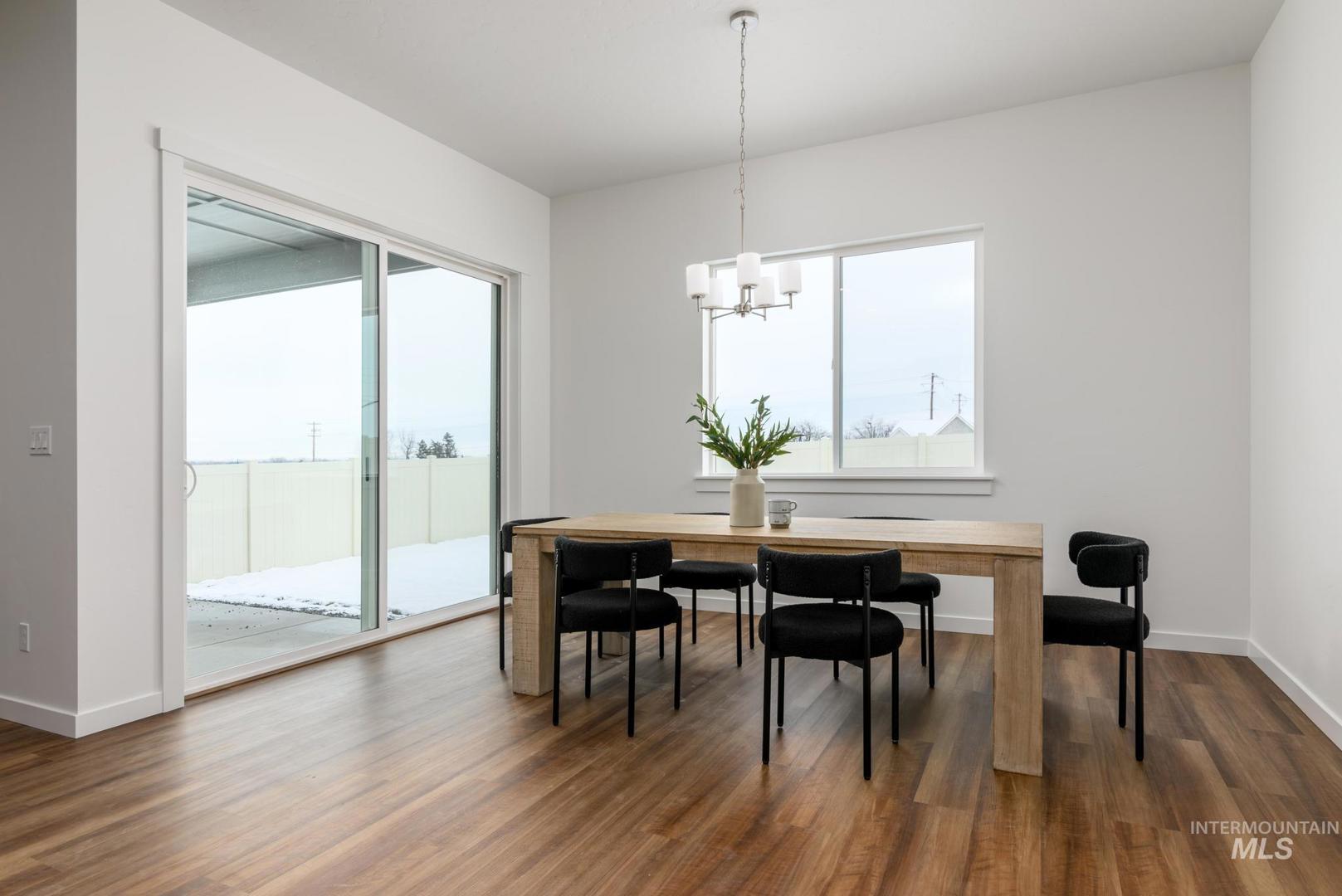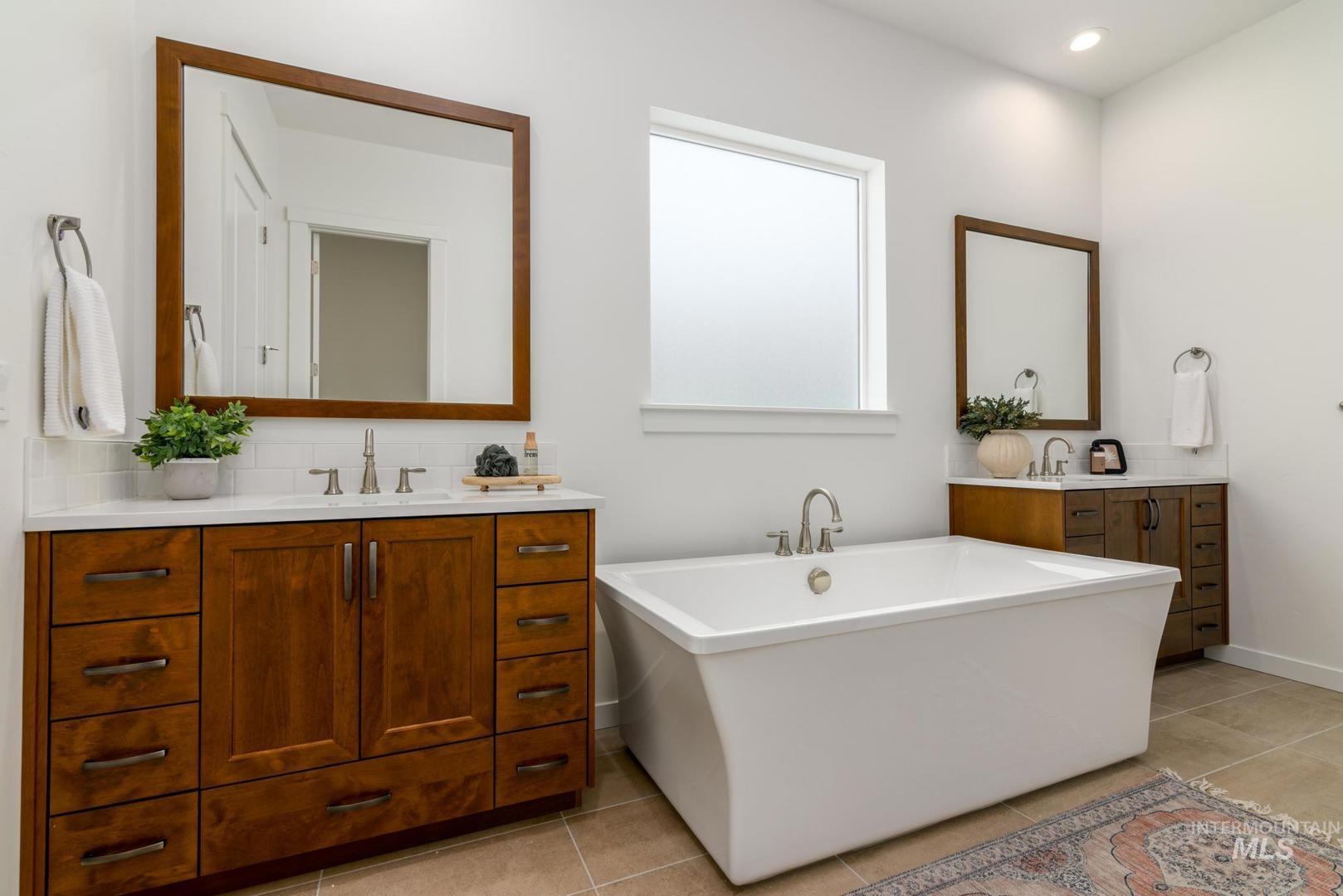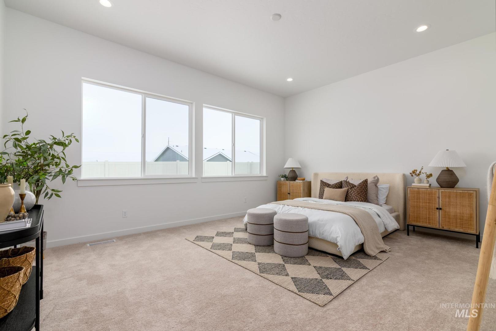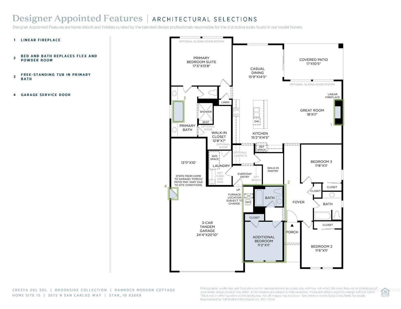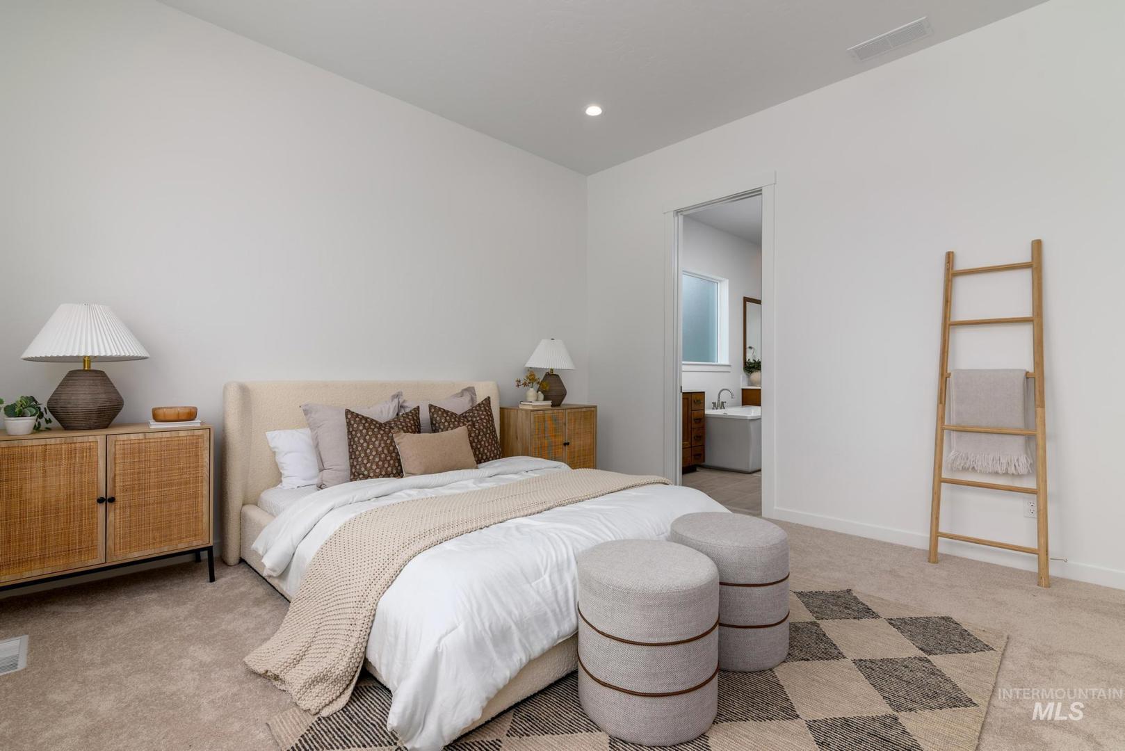 "The Bannock" exudes contemporary comfort and functionality, exemplified by its thoughtfully crafted single-story layout. A long foyer sets the stage, leading to a spacious great room seamlessly connected to the kitchen, casual dining area, and covered patio—an ideal setting for gatherings and relaxation. The kitchen is centered around a striking large center island and enhanced by its expansive walk-in pantry. The primary bedroom suite, nestled in the rear of the home, features a serene sanctuary complete with a luxurious walk-in closet and a primary bath with separate vanities, and a luxe shower. Off the foyer, three secondary bedrooms and two hall bathrooms offer privacy and comfort. 3 car garage. Front and rear landscape included. Home is under construction and photos are similar. BTVAI