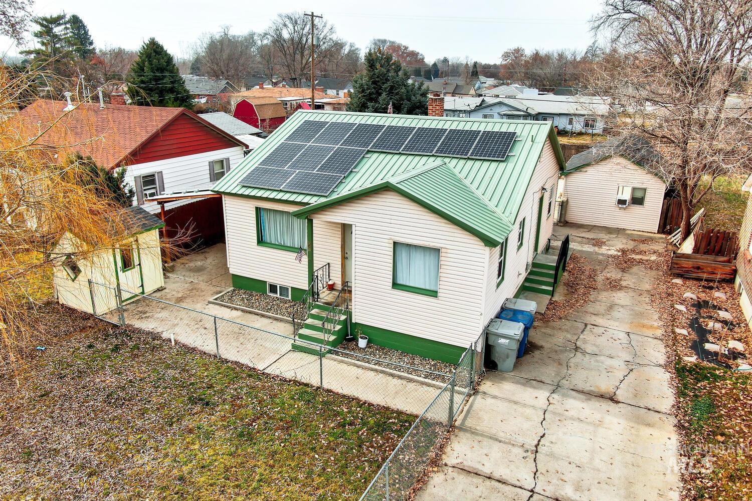 Turnkey Investment Triplex in the heart of Nampa! Close to Northwest Nazarene University, Schools, Parks, Dog Park, Walmart, shopping, Nampa Recreation Center and More! All units leased for 12 months. Well maintained and cared for, with many updates! Long life Metal Roof on main house with wholly owned solar panels installed in 2020 that offsets energy cost wonderfully. Double paned vinyl framed windows, 2 covered patios, Front and back yards fully fenced, and new paint on the exterior trim. Unit A has a newer stackable washer/dryer and the bathroom was remodeled in August 2024. Unit B in the last 4 years has gotten new LVP flooring, painted, remodeled kitchen & bathroom, new kitchen sink, new toilet, new refrigerator, new dishwasher. Unit C in the last 3 years has had the bathroom remodeled, complete with new cabinets, shower/tub insert, sink, toilet. New LVP flooring, Painted full unit, replaced back door, and in July 2024 installed new air conditioner. Main water line replaced in 2021.