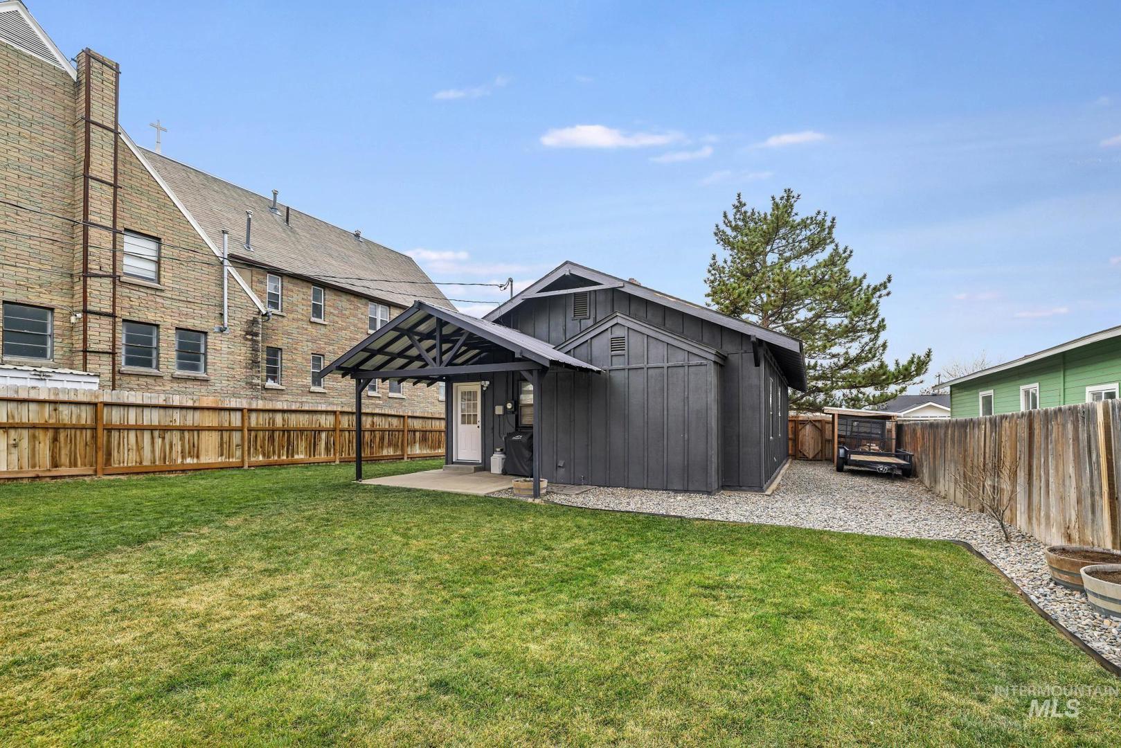 Too many upgrades to list in this cute and highly functional home! Enjoy fresh exterior paint in a modern color, full landscaping with sprinklers, and a large fully fenced yard that includes a dog run. Additional exterior features include alley access with potential RV parking, a garden area, storage shed with a concrete floor, extra covered storage, and a garage with power and excellent built-in shelving. Both the front and back patios offer covered spaces perfect for relaxing or entertaining. Inside, the home shines with fresh interior paint, new LVP flooring throughout, and classic built-in shelving. The spacious living and dining areas provide plenty of room for gatherings. The kitchen has been updated with a pantry and a new back door, while the laundry area features new tile flooring. The roomy bathroom includes a professional marble shower surround, updated vanity, new toilet, and new fixtures. Additional updates include new electrical fixtures, recessed can lighting, updated outlets, and added 240 power on the back patio. A whole-house fan has also been installed—an absolute game changer for air circulation and comfort. This charming home has been well loved and is truly move-in ready.