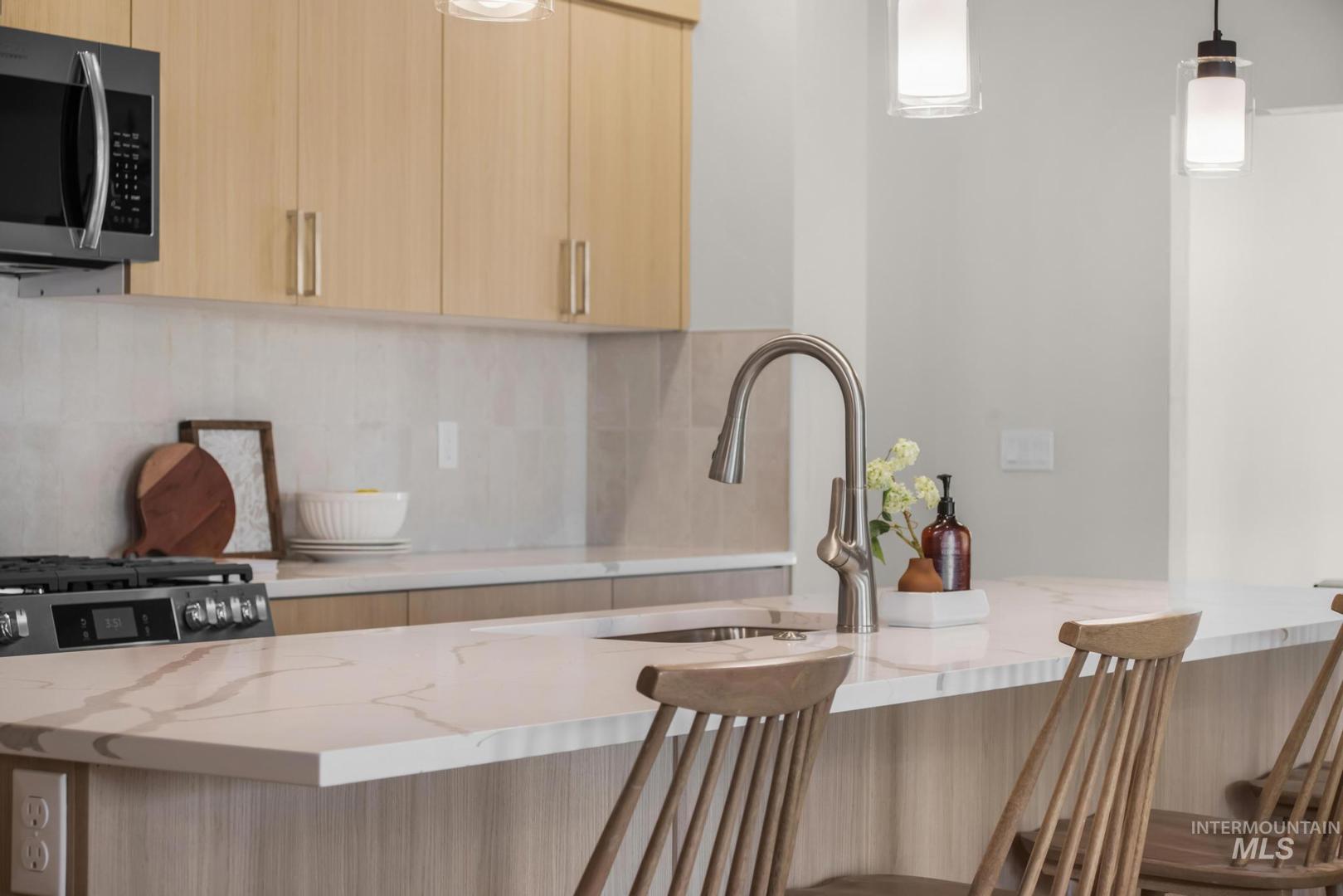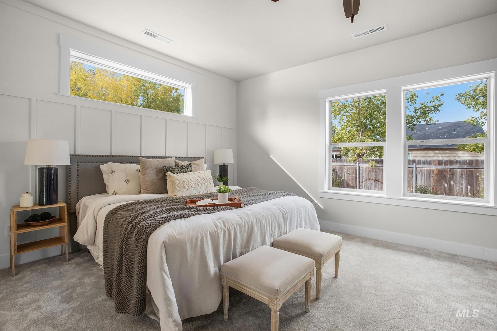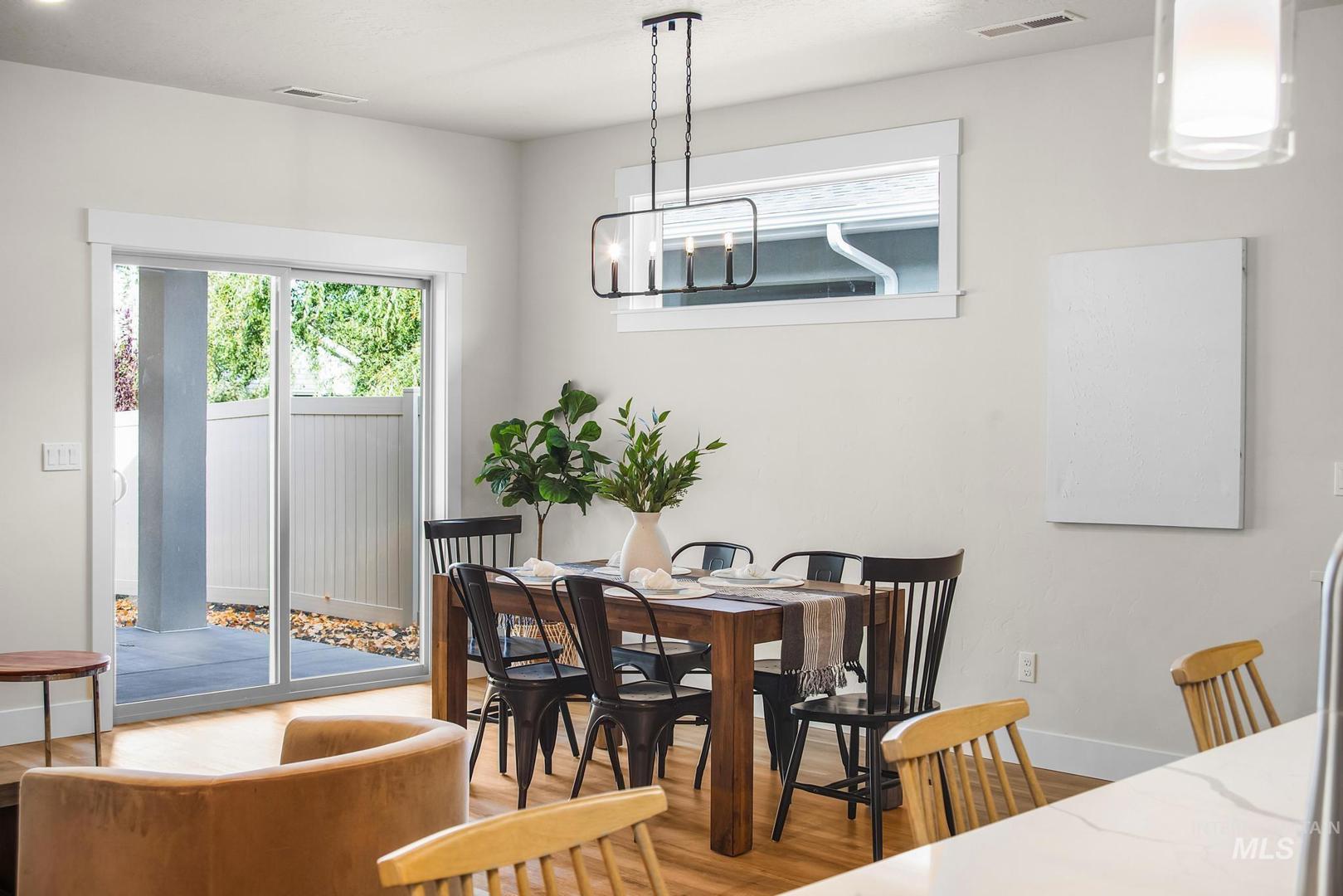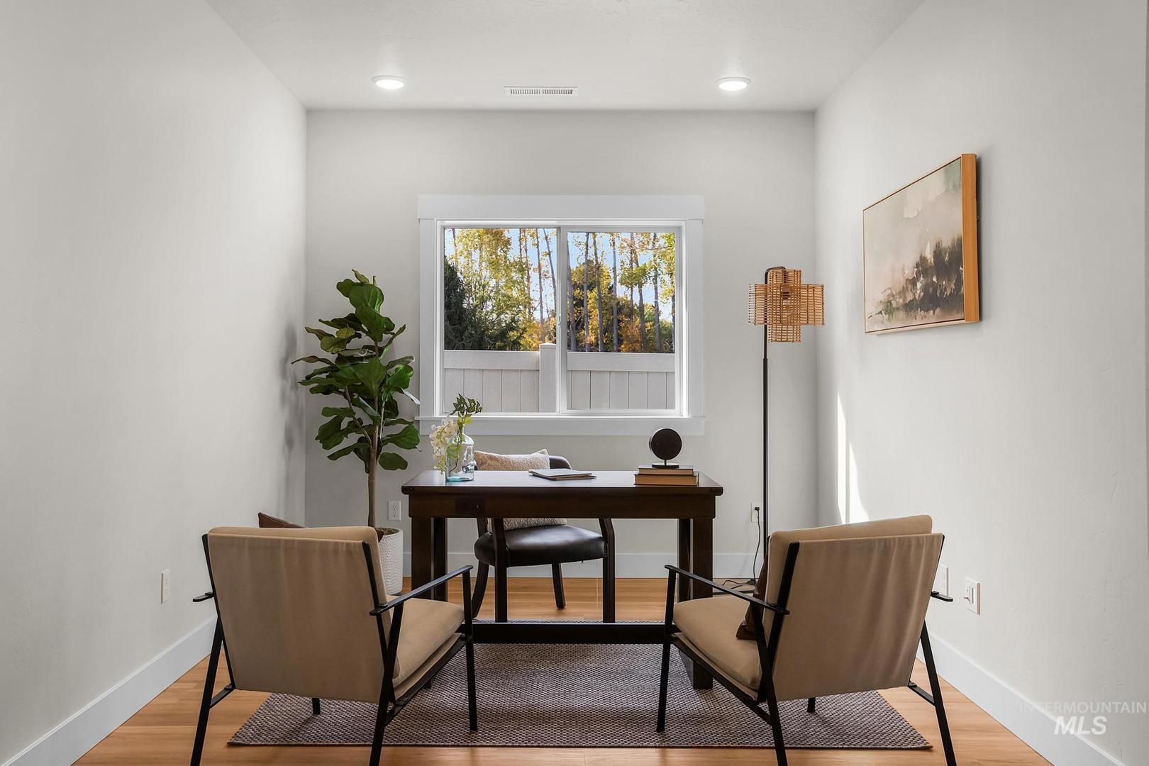 Biggest Lot in the community! Discover elevated living in this beautifully crafted 3 bedroom, 2 bath home with a dedicated office. The open concept kitchen features quartz countertops, a gas range, and luxury vinyl plank flooring, flowing into a bright living area with a cozy fireplace and custom built in cabinetry. Two spacious guest bedrooms share a stylish bathroom with quartz counters and a tiled shower bath combination, while the primary suite offers a private retreat with dual vanities, a fully tiled step in shower, and high end finishes throughout. Buyers may have the opportunity to personalize select paint, flooring, or finish options depending on construction stage, making now the perfect time to customize. Ideally located on a generous lot near freeway access, Albertsons Marketplace, the YMCA, and Meridian shopping and dining. HOA covers front and back lawn care, offering true maintenance free living in this turn key home.