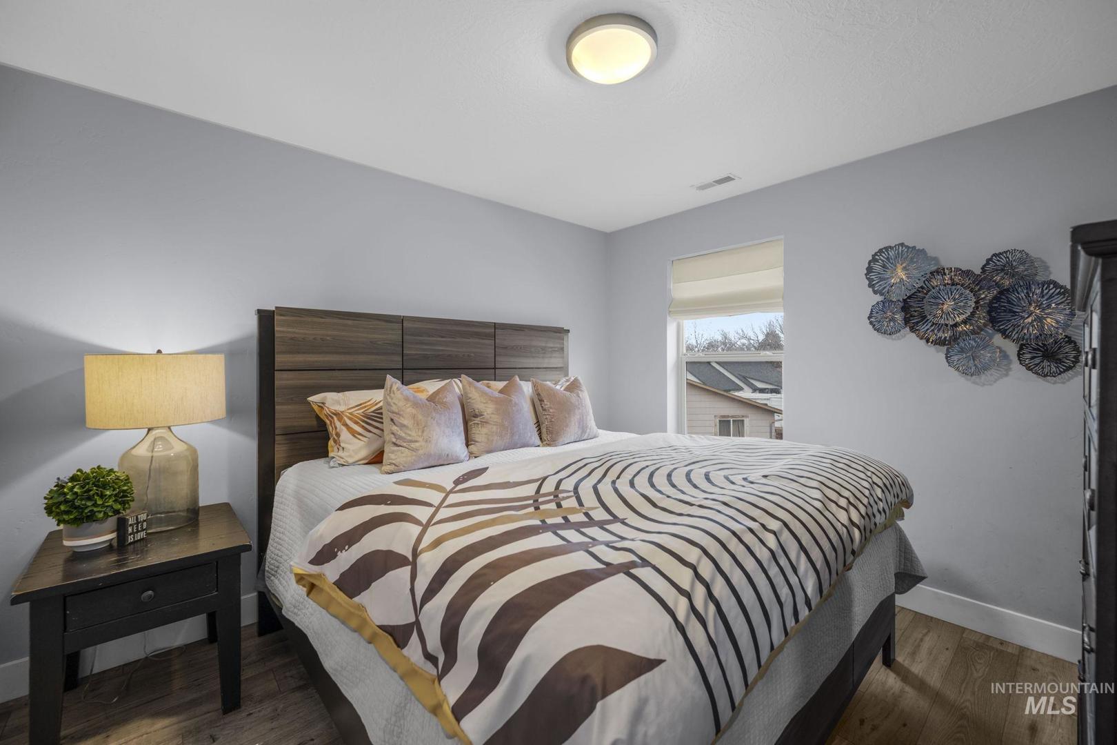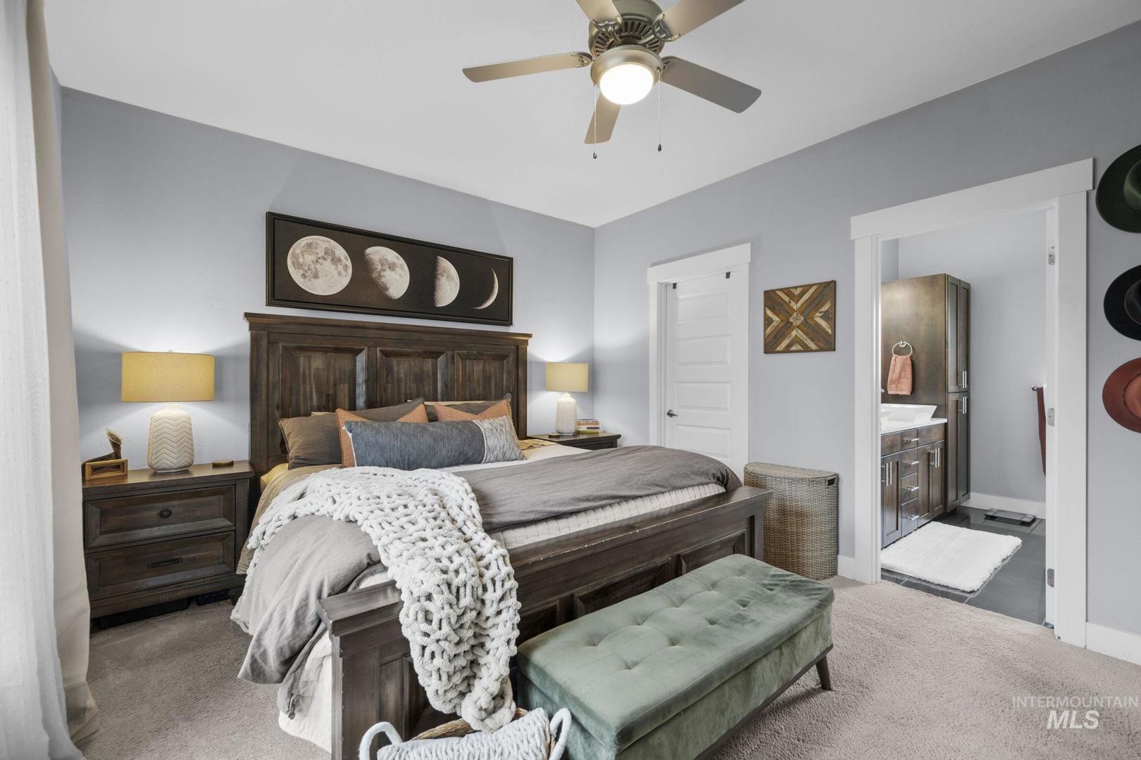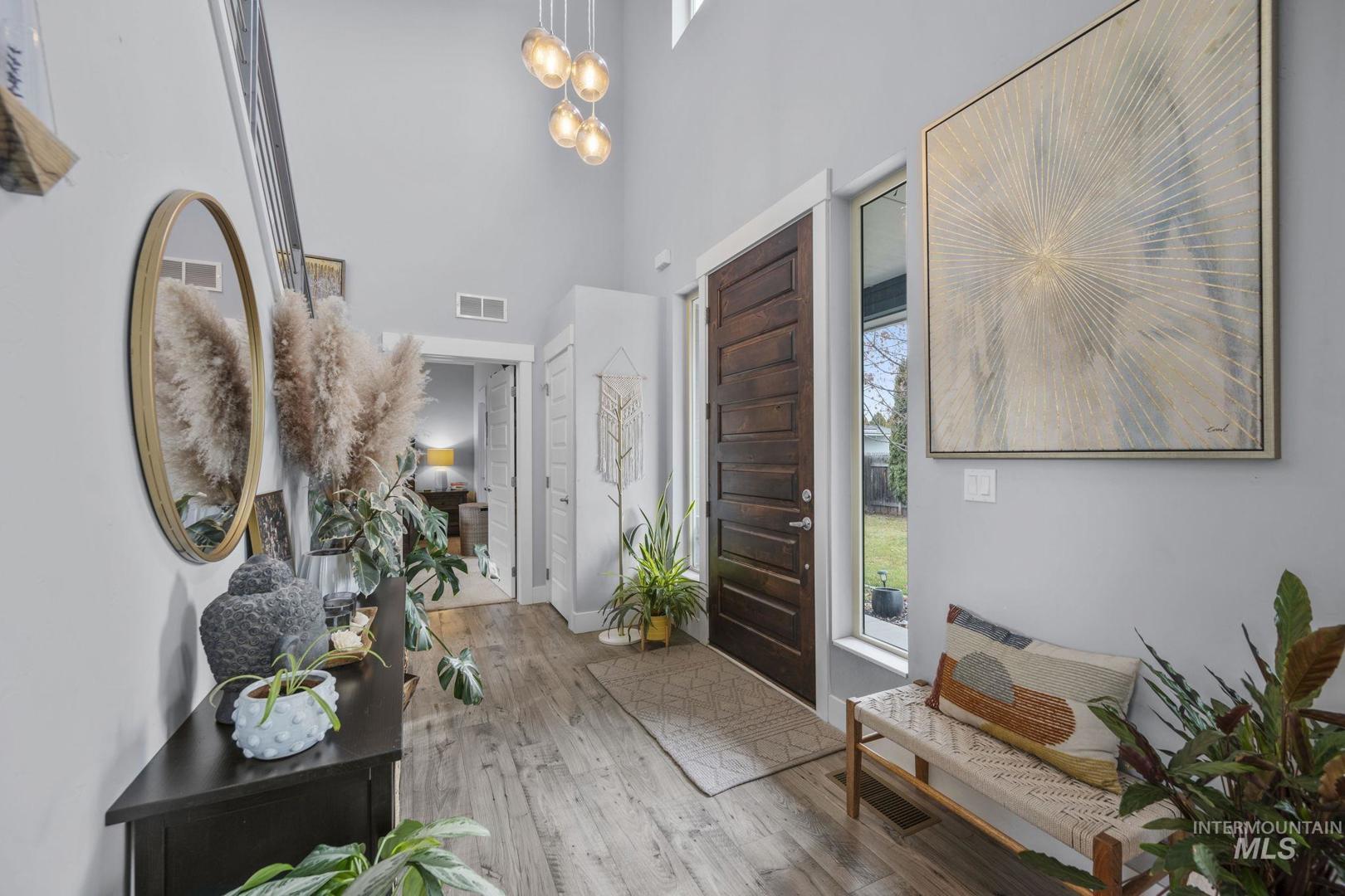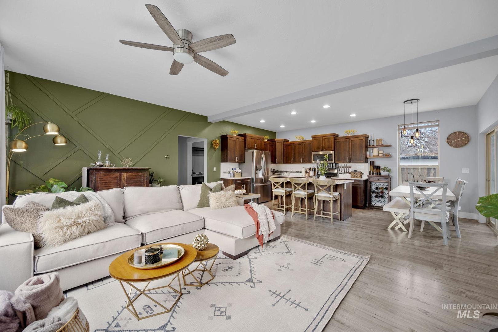 Excellent location, modern design, and a rare, private ¼ acre lot. No CCRs or HOA dues. This well-maintained home truly has it all. Spacious primary suite is conveniently located on the main level, while two additional bedrooms and a large loft upstairs provide flexible living space for guests, work, or play. Open concept layout flows seamlessly to a fully fenced backyard featuring a generous covered patio and firepit, making it ideal for both indoor and outdoor entertaining. The property is fully landscaped with automatic sprinklers. Backyard storage shed helps keep the two-car garage free for vehicles and gear. The 130-foot private, concrete driveway offers abundant extra parking perfect for RVs, trailers, or guests. Enjoy quick access to everything Boise has to offer- just 6 minutes to downtown and the airport, 10 minutes to Micron, and close to I-84, shopping, dining, parks, the Greenbelt, BSU, and Lucky Peak.