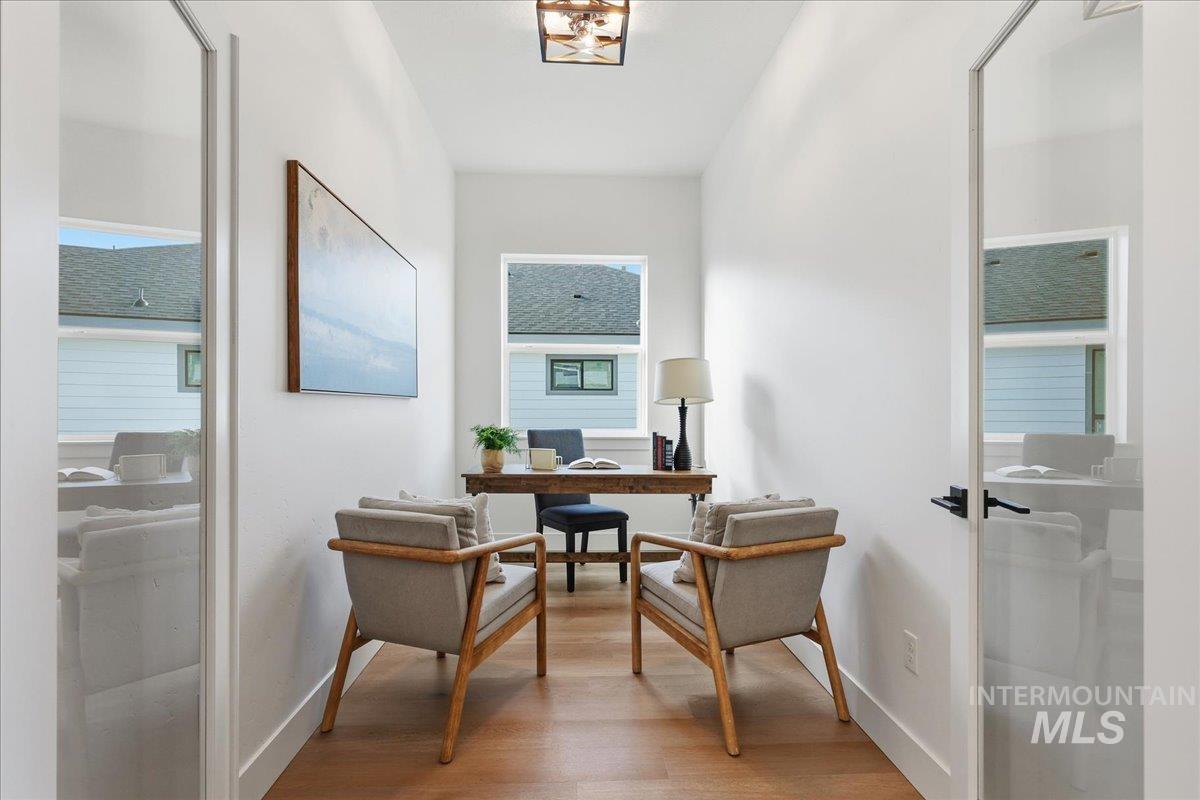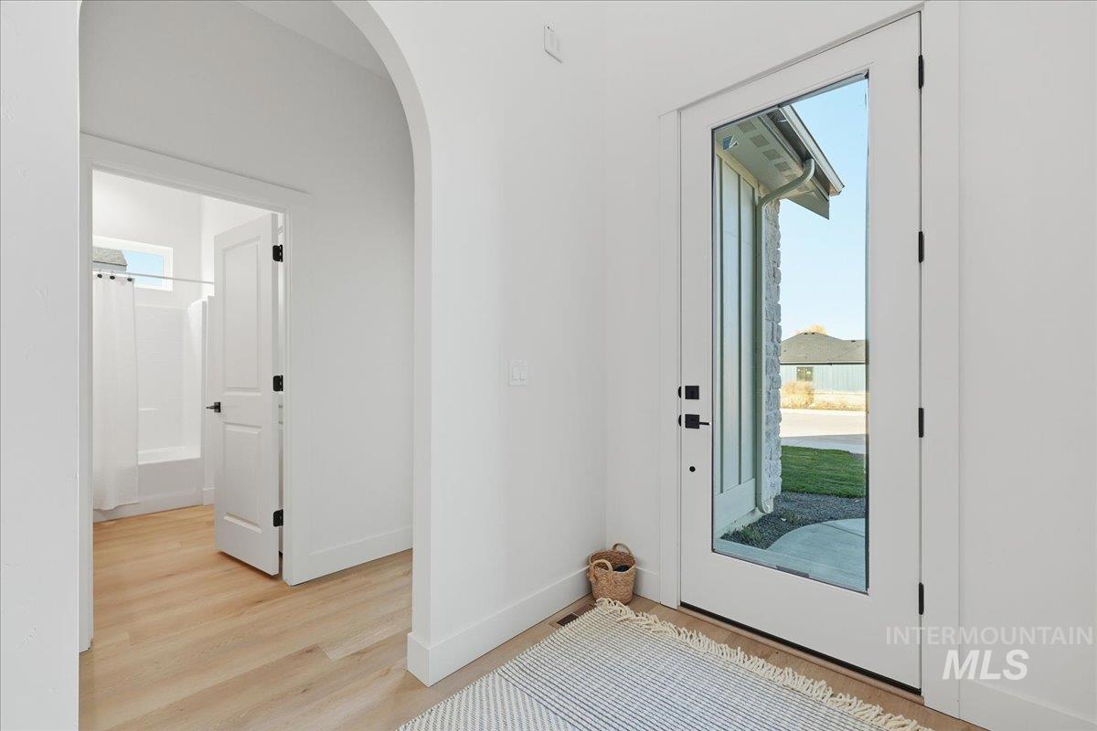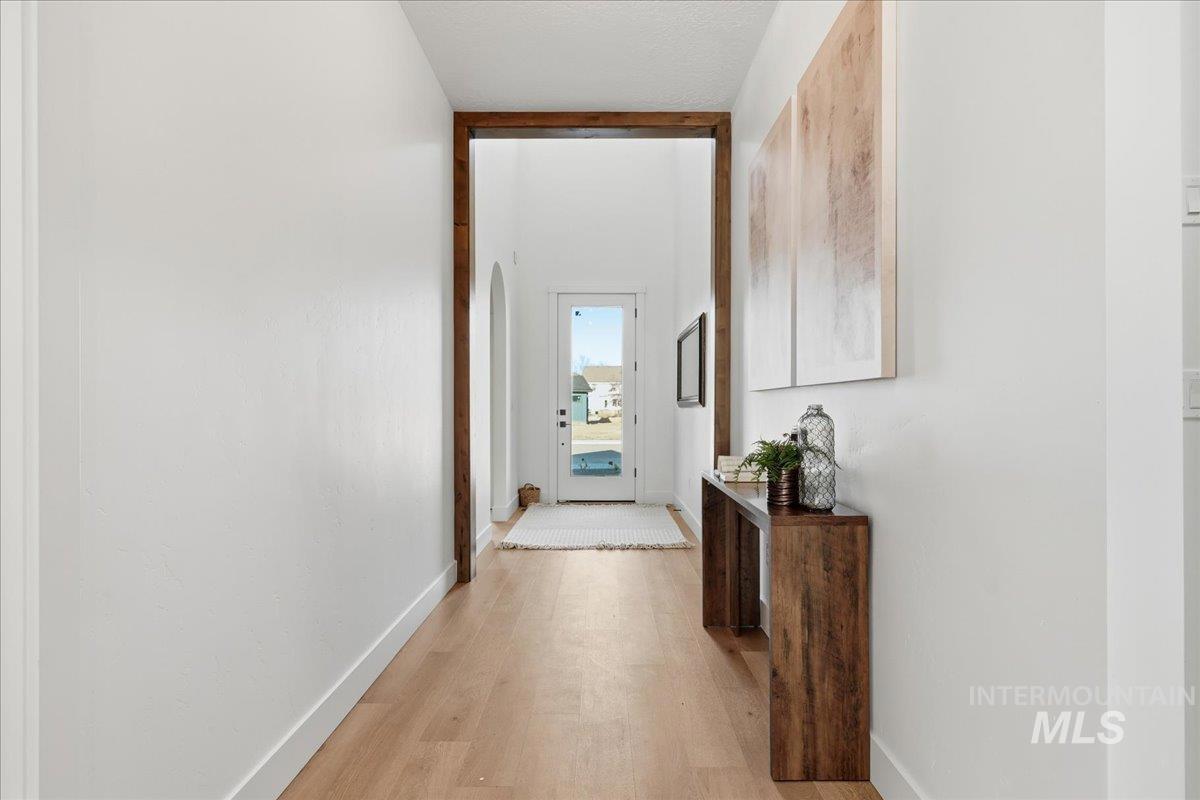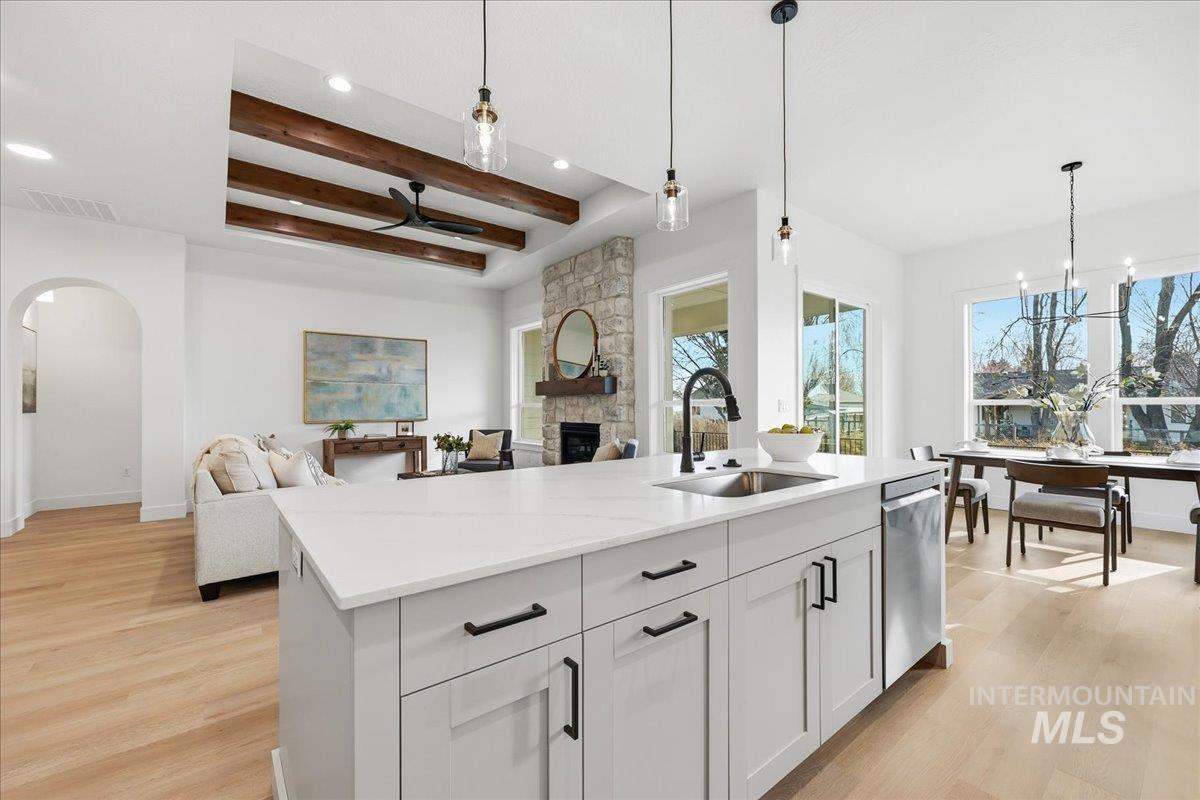 Beautifully crafted single-level home showcasing the quality and attention to detail behind the Greystone Home`s name. This thoughtfully designed floor plan offers 3 bedrooms, 2 bathrooms, plus a dedicated office, perfect for today’s lifestyle. Step inside to tall ceilings in the entry hallway and an abundance of natural light throughout. The great room is warm and inviting with beautiful wood beams accenting the ceiling, and has a cozy fireplace for the cooler days. The kitchen is both functional and stylish, featuring granite countertops, a built-in oven, and carefully selected finishes that elevate the space. The primary suite is a true retreat with private patio access, a recessed ceiling with accent lighting, a luxurious soaker tub, walk-in shower, and generous his-and-hers walk-in closets with convenient access to the laundry room. The oversized laundry room offers ample cabinetry, storage space, and a sink for added convenience. The fully insulated garage is finished with epoxy flooring and includes an impressive 27` boat bay—ideal for toys, storage, or extra workspace. Located in The Mill at Middleton, a brand-new subdivision featuring upgraded homes, this property offers small-town charm in the welcoming community of Middleton, Idaho. A must-see home combining quality, comfort, and thoughtful design.