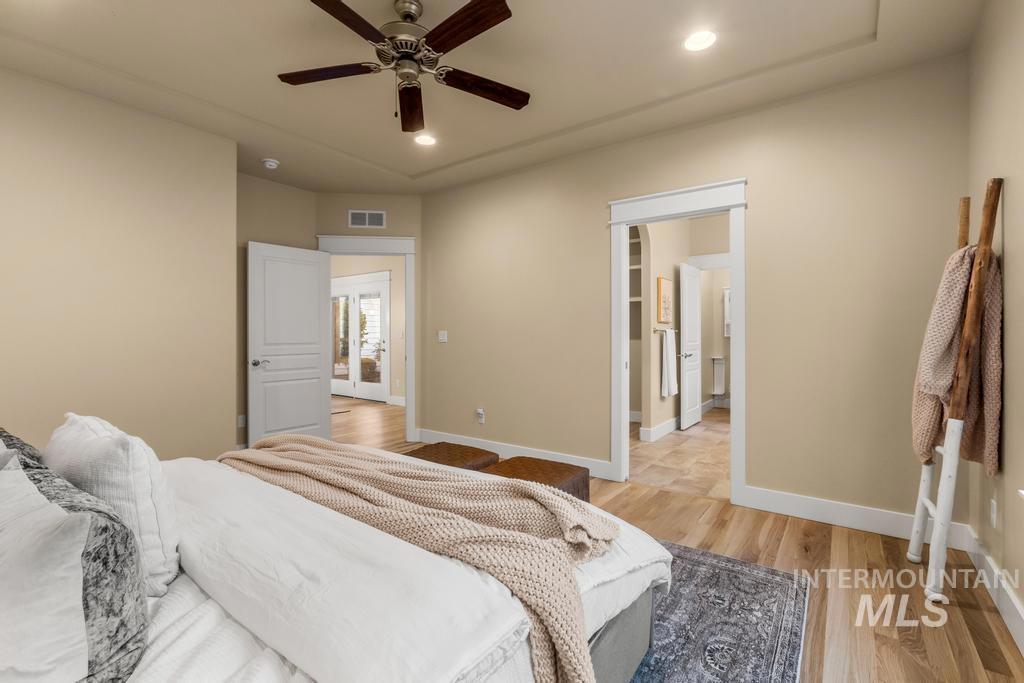 Welcome to 1243 E Prairiefire St in NE Meridian’s sought-after 55+ community, Heritage Grove! This beautifully maintained, energy efficient, single-level home offers 1,565 square feet of comfortable living, thoughtfully designed for ease & enjoyment. With three spacious bedrooms, two bathrooms & oversized two-car garage, this home blends everyday functionality w/timeless charm. Step inside to find freshly refinished hardwood floors & elegant window treatments throughout. The kitchen is equipped w/high-end Thermador appliances, granite countertops, instant hot water dispenser & abundant cabinetry, perfect for both everyday cooking & entertaining. The spacious primary suite features a luxurious roll-in, zero-threshold shower, providing both comfort & accessibility. Two additional bedrooms offer generous space for guests, hobbies, or home office. The home’s HVAC system includes a built-in humidifier. Outside, enjoy your private patio surrounded by low-maintenance landscaping, cared for by the HOA so you can relax without the yard work. The community offers a clubhouse for social gatherings, two parks, scenic walking paths & snow removal, promoting a relaxed & connected lifestyle. Nestled in the heart of NE Meridian, you’ll love the peaceful atmosphere w/easy access to shopping, dining & medical services.