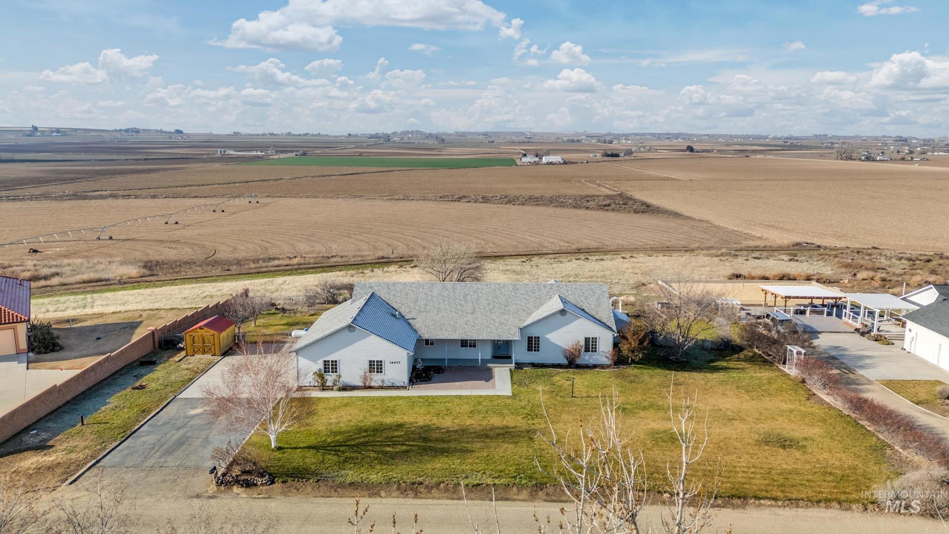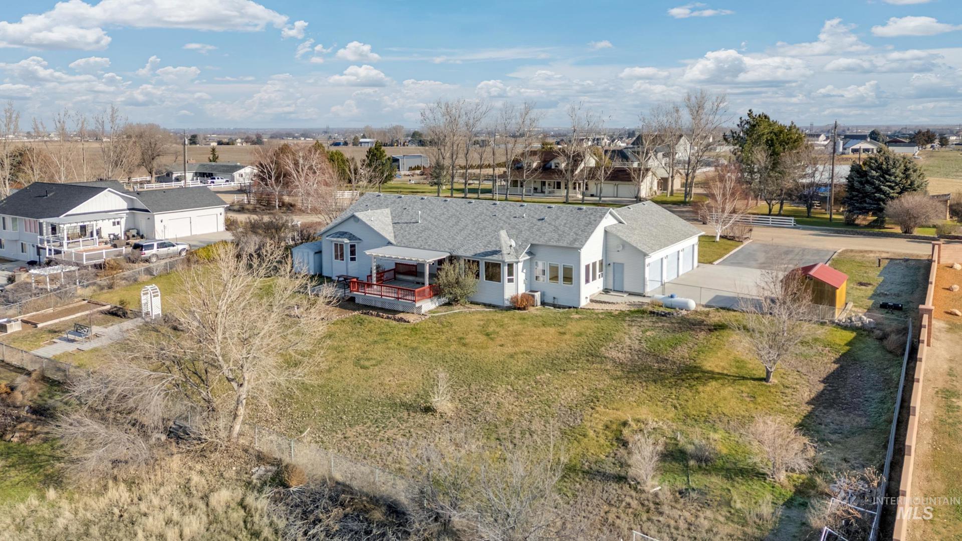 Gorgeous, raised views of the Owyhee Mountains and the rolling valley farms. Watch the storms roll in and see a beautiful unobstructed sunset every night from nearly every room or from your huge, covered deck. This 3-bedroom, 2.5-bathroom home also has a great sunroom/office, large hobby room, fireplaces and a huge gourmet kitchen with the perfect appliances along with awesome views. LTV floors along with brand new carpet throughout. The 3-car garage with a sink, along with RV parking on a 1.8-acre lot, you`ll never run out of parking and storage. With vaulted ceilings, ceiling fans, extra-large baths and a wide hall, this 2361 sq ft home feels huge! There is storage galore throughout the home. There is a full system water softener along with reverse osmosis in the kitchen and a brand-new water heater, all with easy access. Includes the fridge and washer. Outside there are 2 storage sheds along with a covered morning porch in the front to have coffee while watching the sun rise. Large fully fenced back yard with 2 gardens and room for expansion, if needed. This is a one-of-a-kind, custom home on a quiet cul-de-sac in the country, and don`t forget the view. Don`t miss out, see this home today. If your GPS leads you to the wrong address, just follow the listing directions. More photos to come.